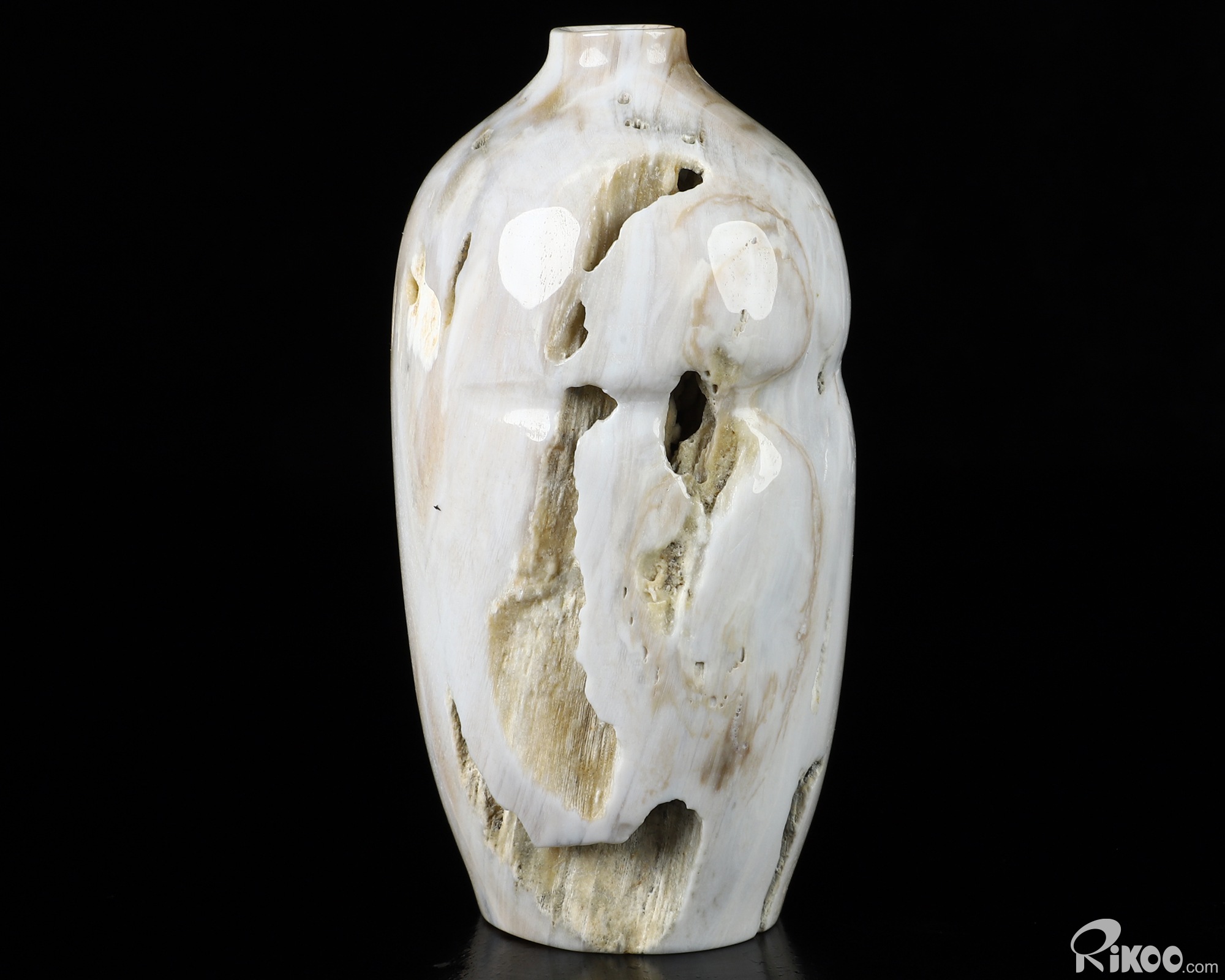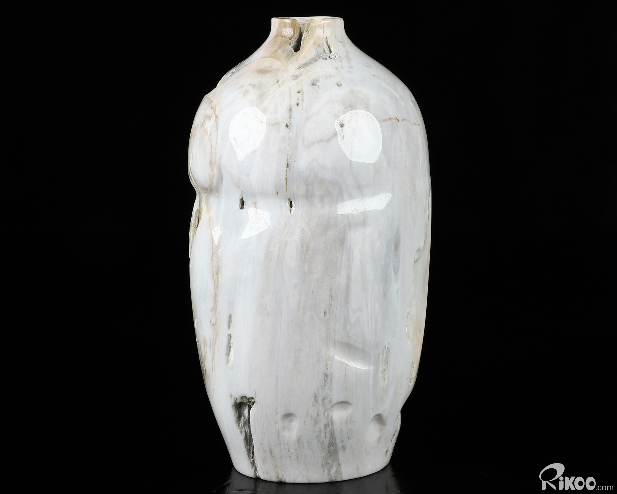This vase with limited functionality is mainly for display.This "stone" is most noted in helping us to investigate past-life experiences. Makes the user more aware of nature. It is a warm earthy stone, which is used at the Root Chakra, encouraging ones survival instincts and is grounding. Petrified Wood is also believed to energize the Heart Chakra. In mythological times, petrified wood was believed to possess divine power and to this day, stands as a symbol of man's true connection to the natural world. This stone helps with mental longevity, helping to sooth emotions, generating calm and relieves stress.