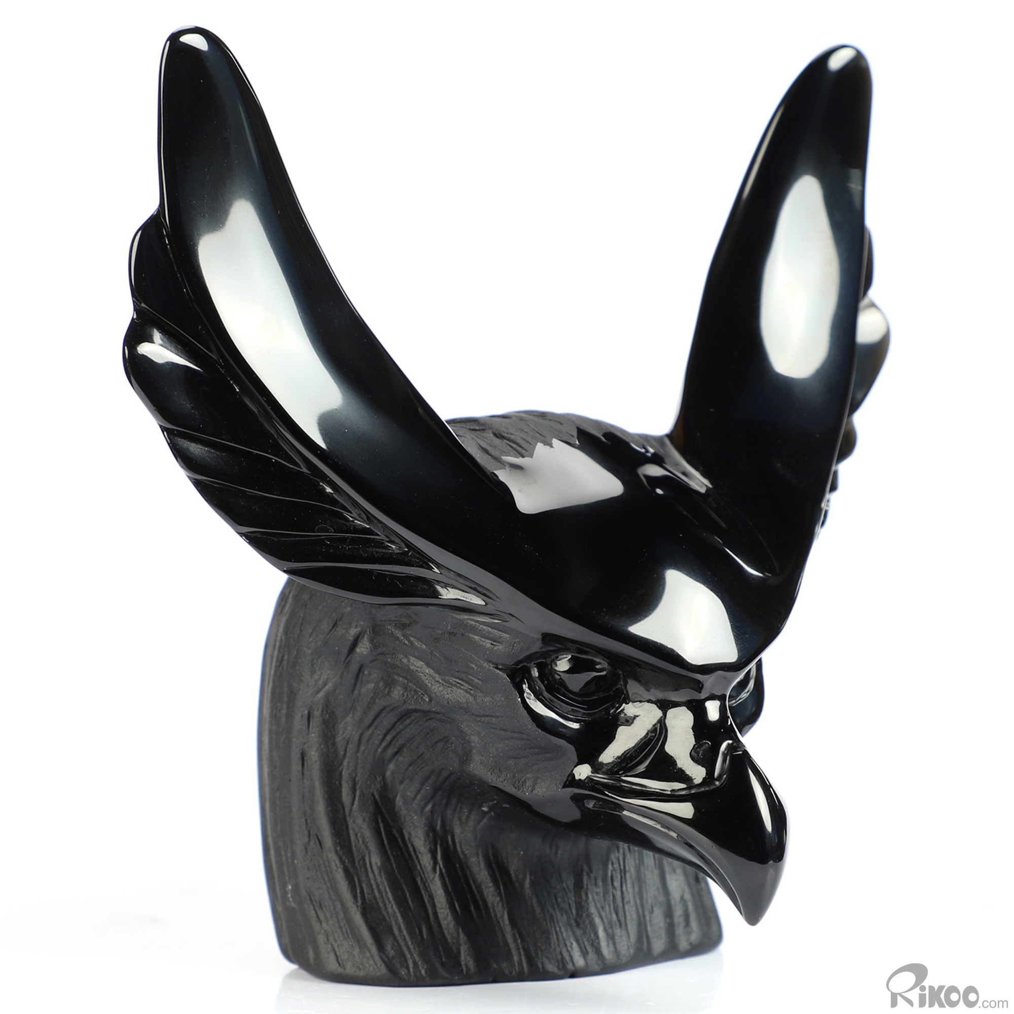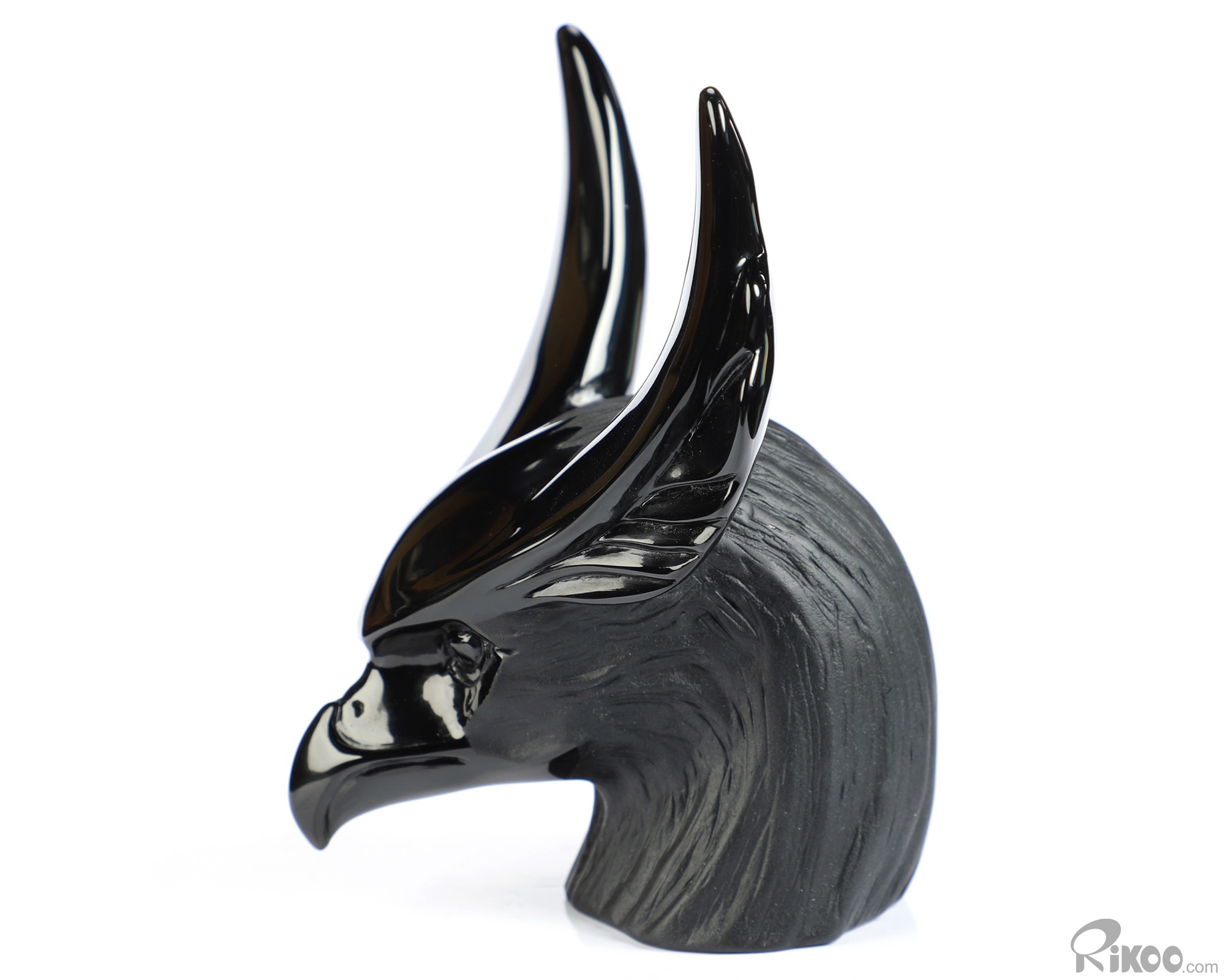 5.0" Black Obsidian Hand Carved Crystal Horus Sculpture, Crystal Healing