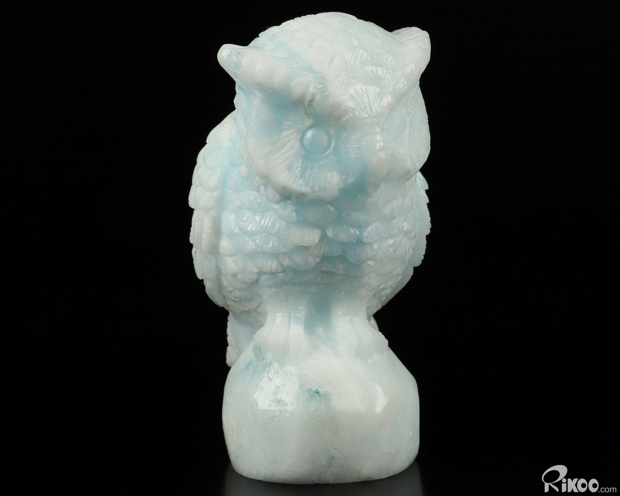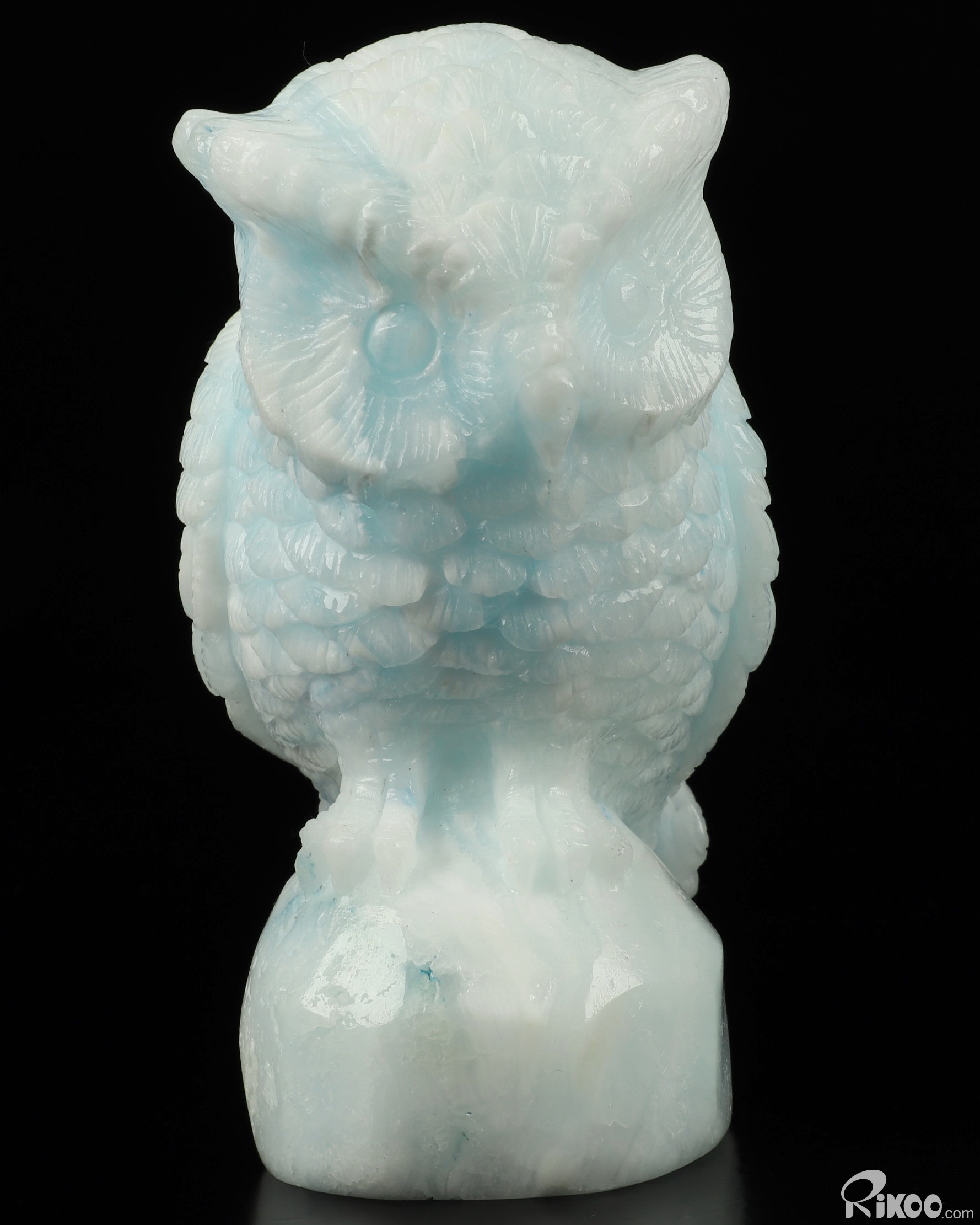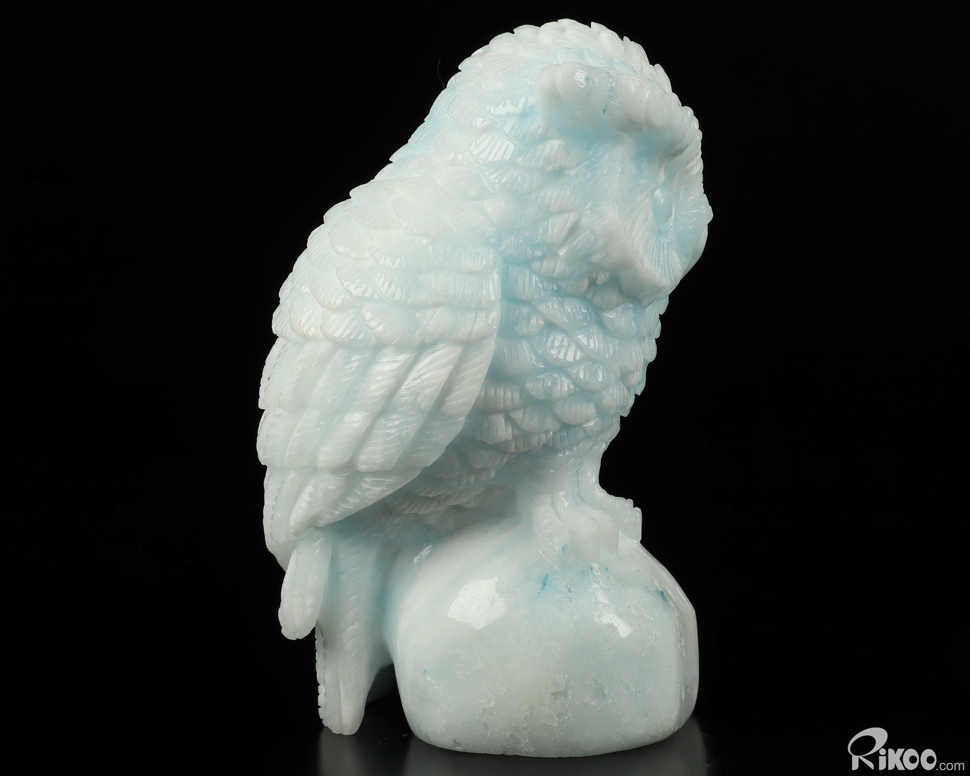 5.0" Blue Aragonite Carved Crystal Owl, Realistic