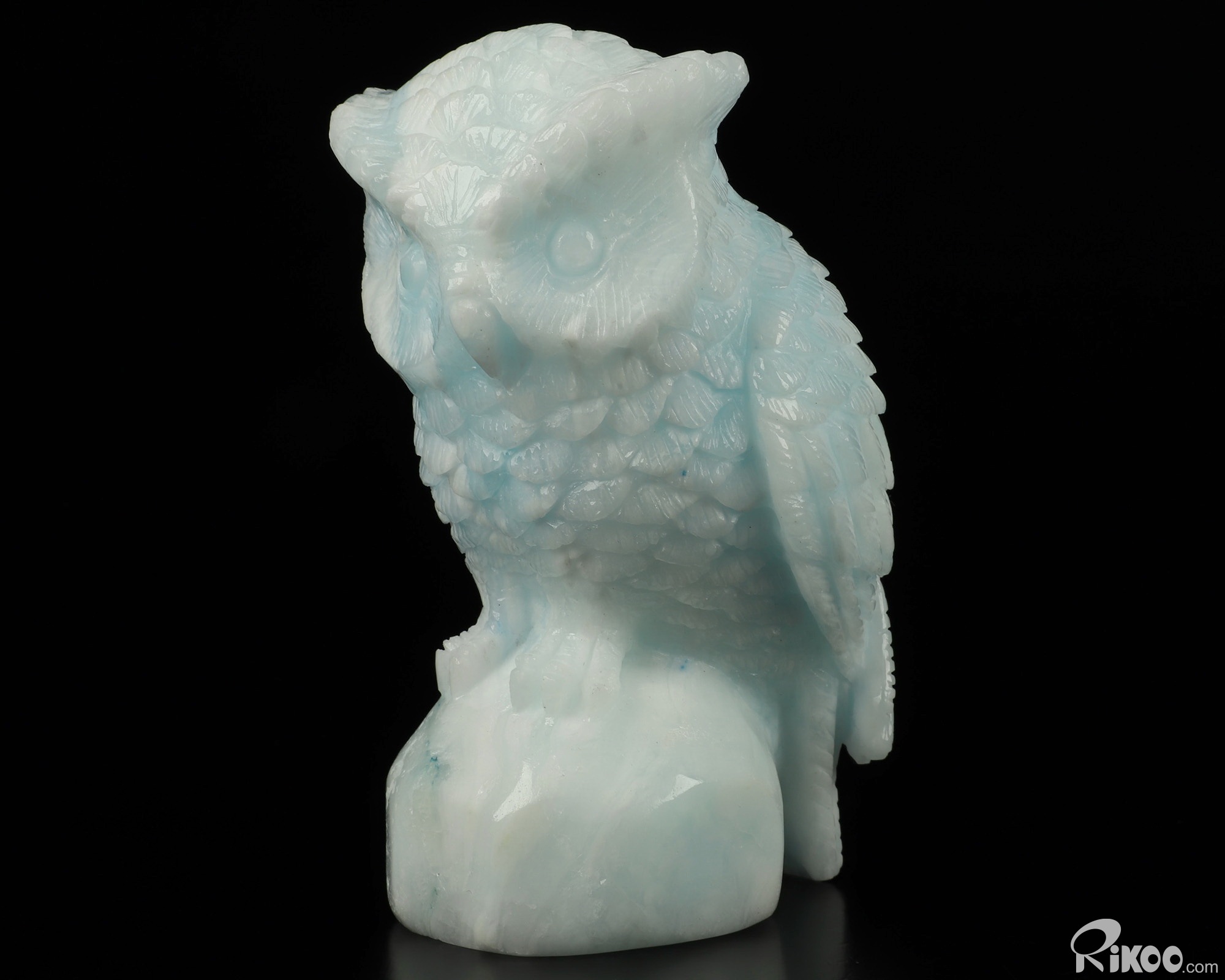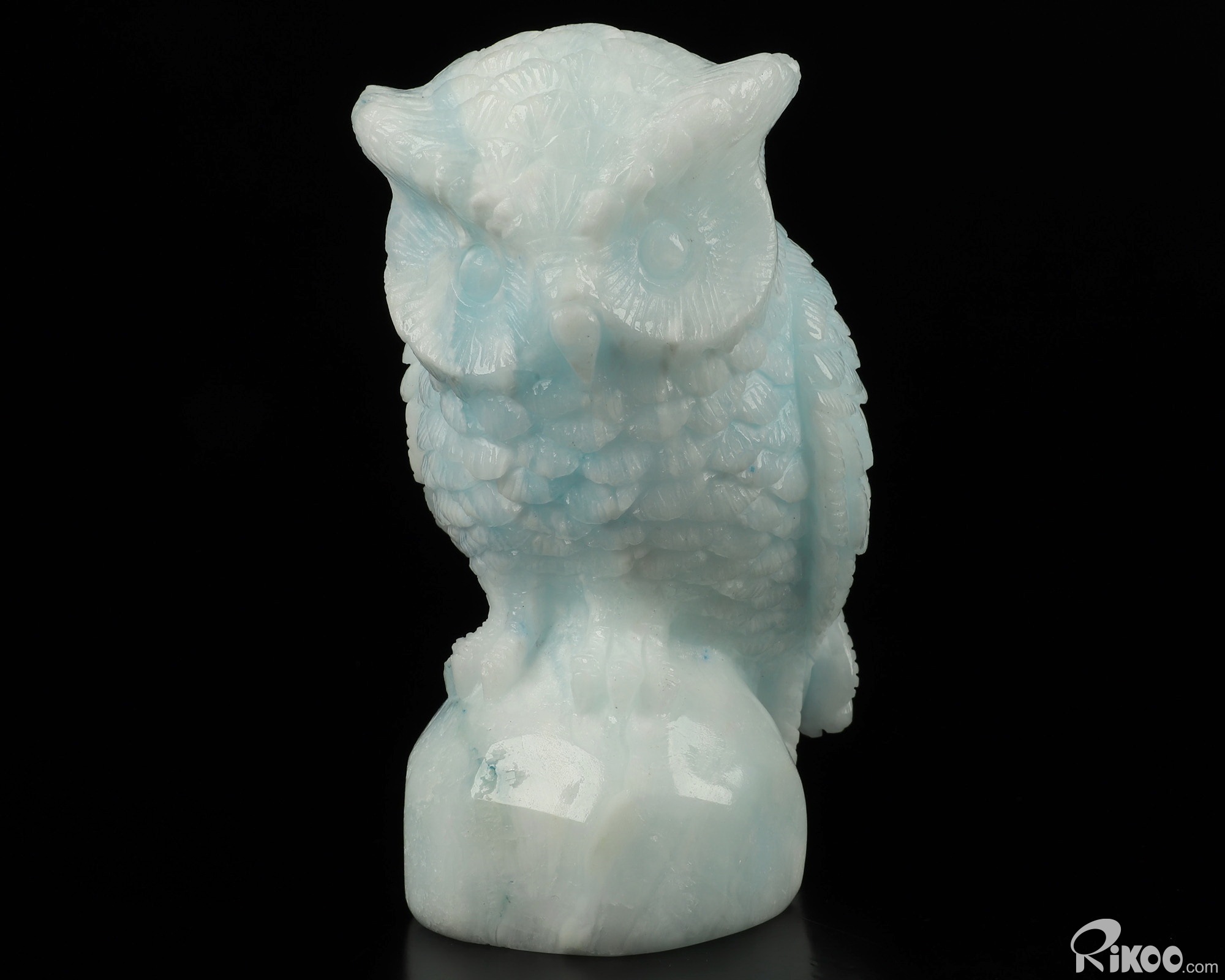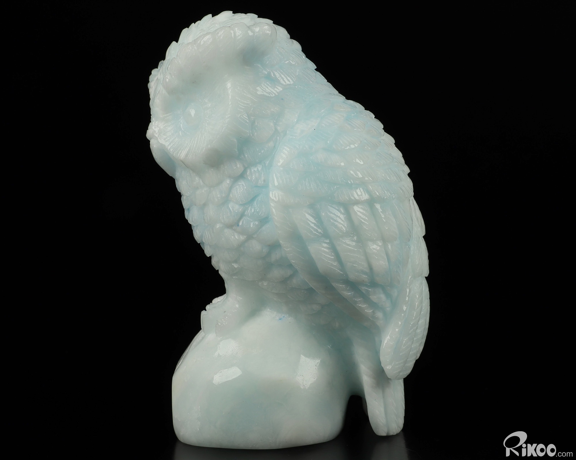 5.0" Blue Aragonite Carved Crystal Owl, Realistic