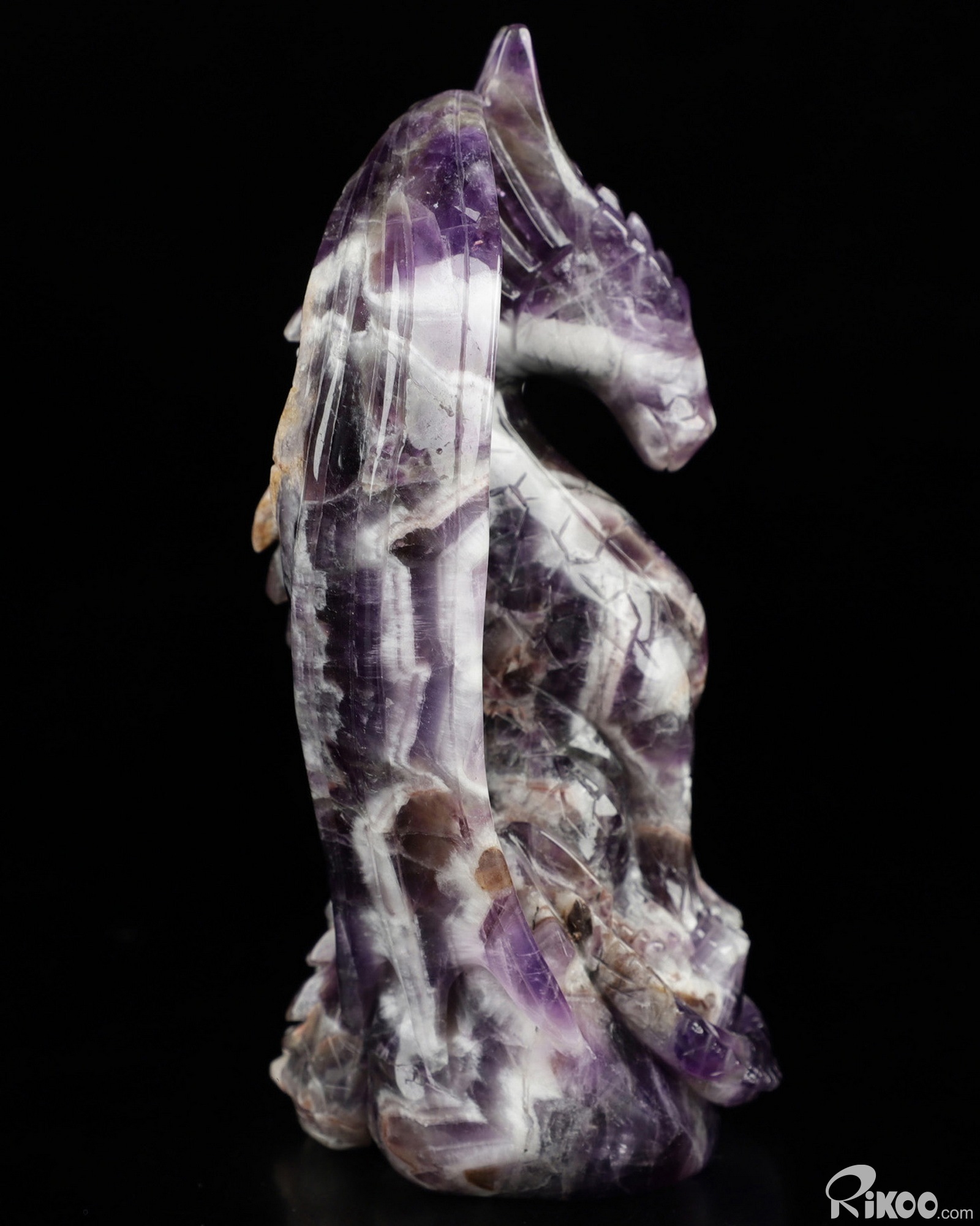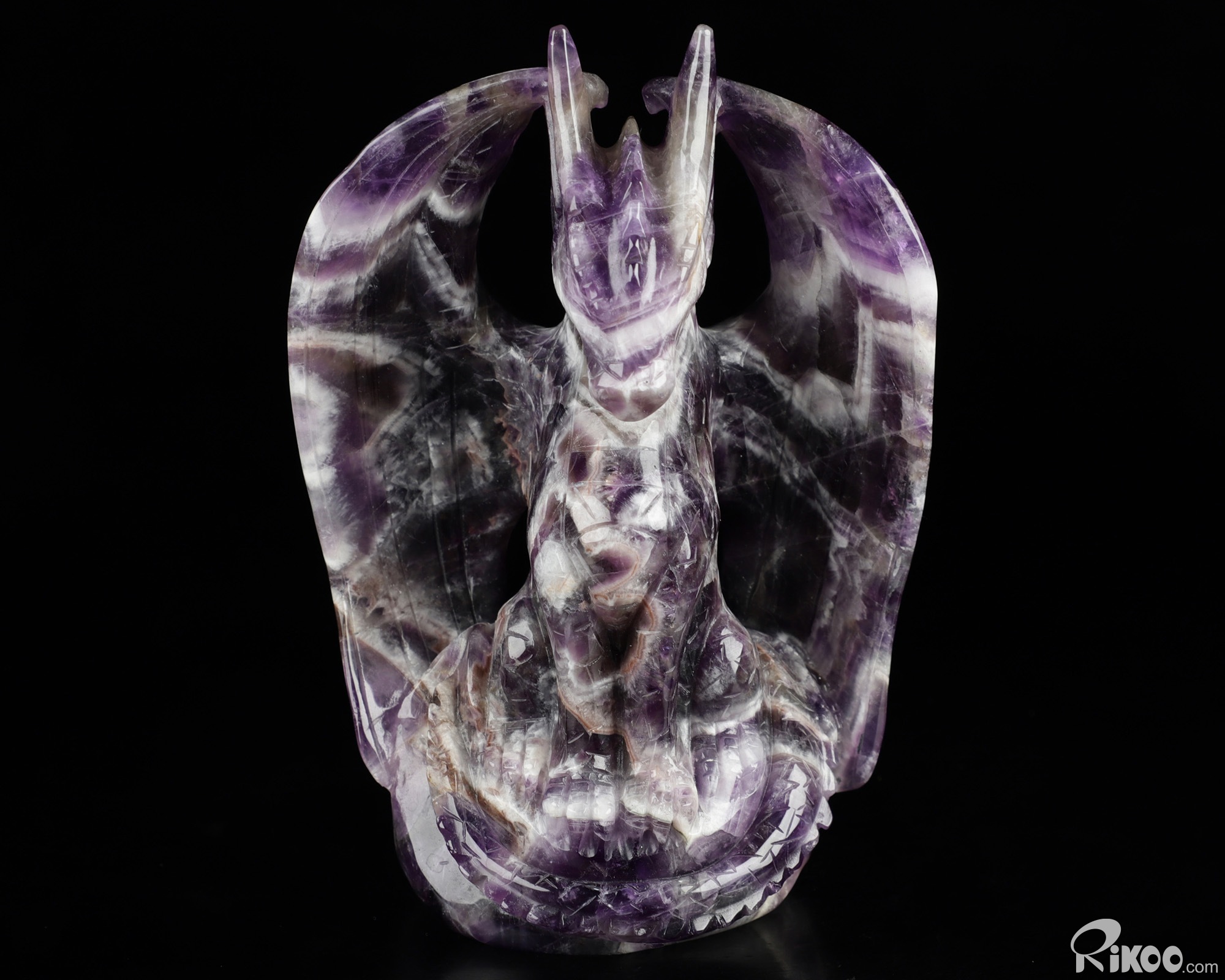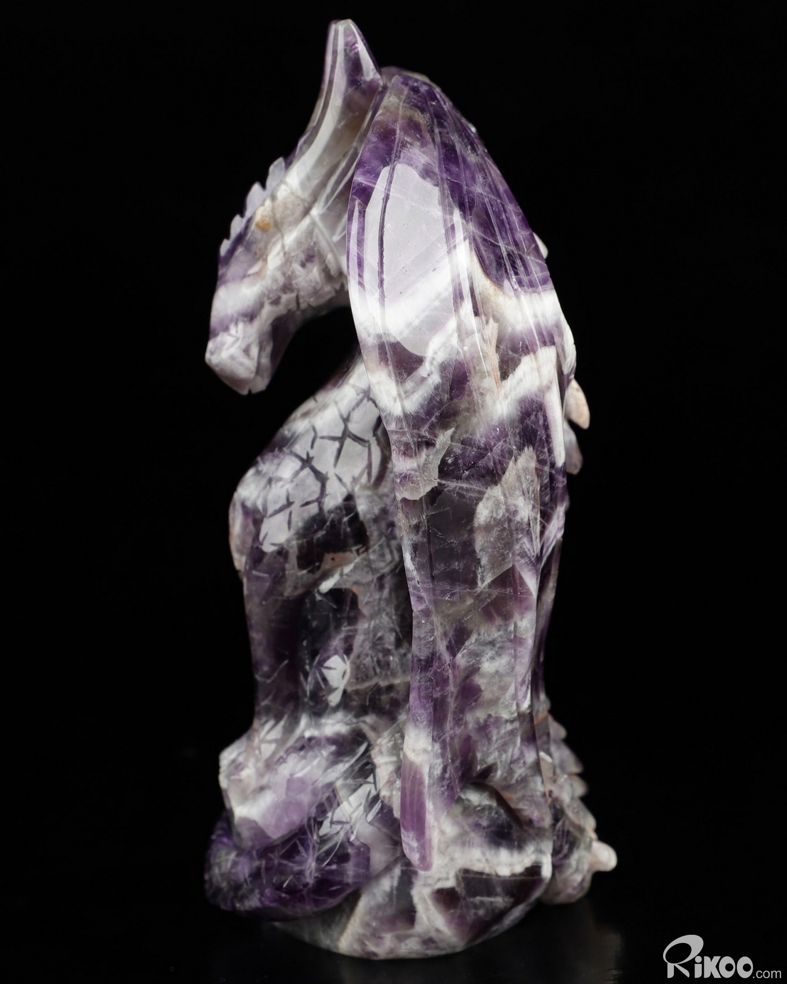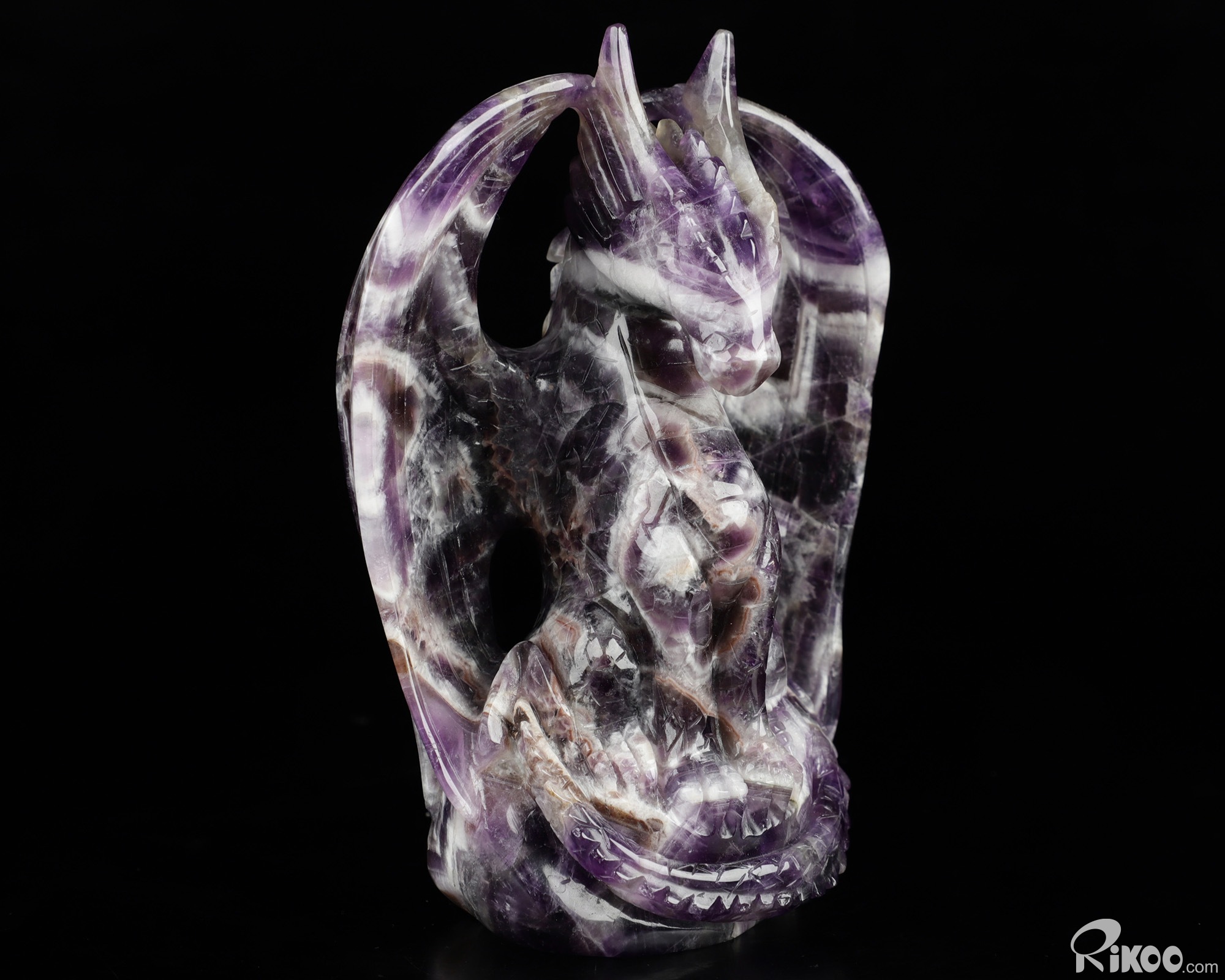 5.0" Dream Chevron Amethyst Hand Carved Crystal Dragon Sculpture, Crystal Healing