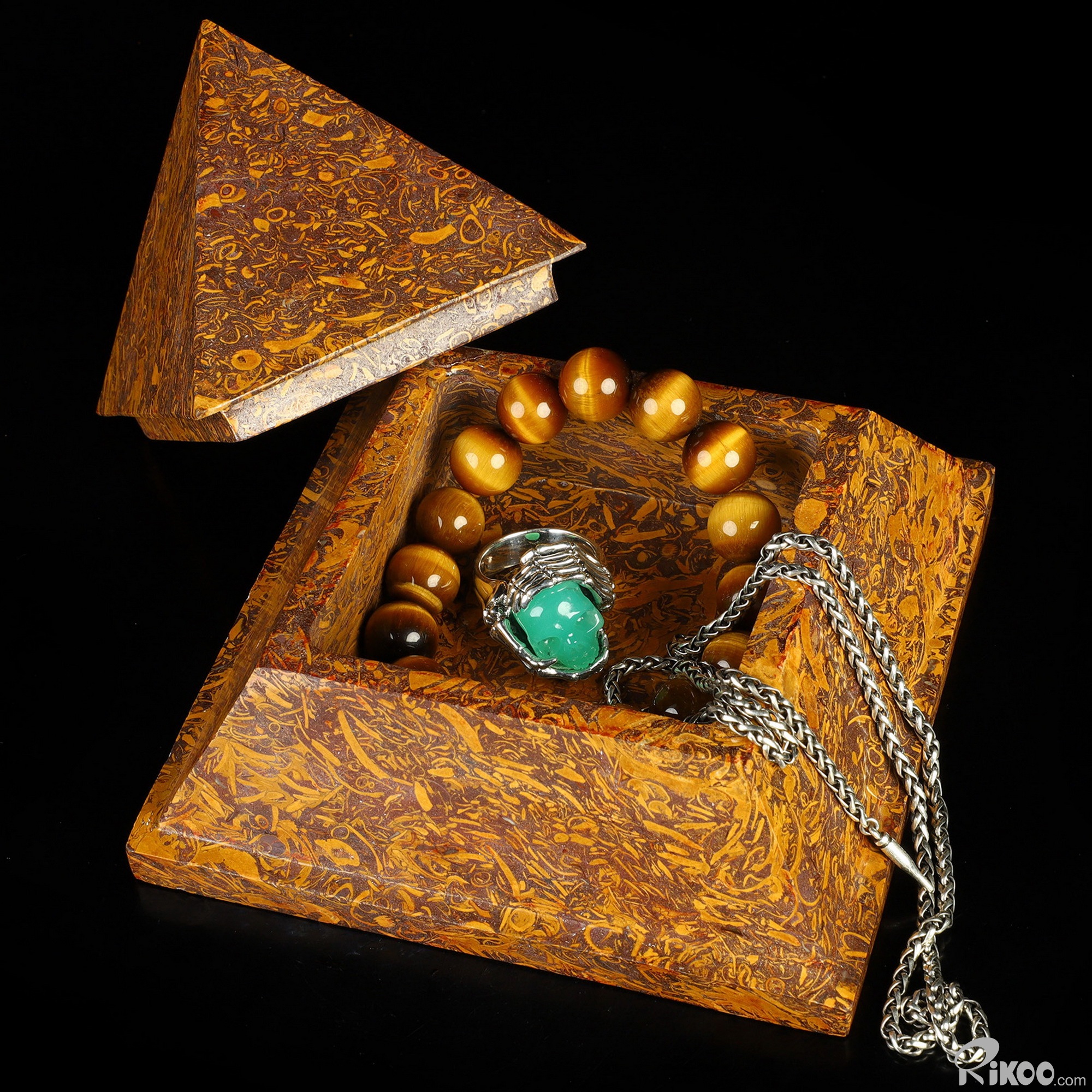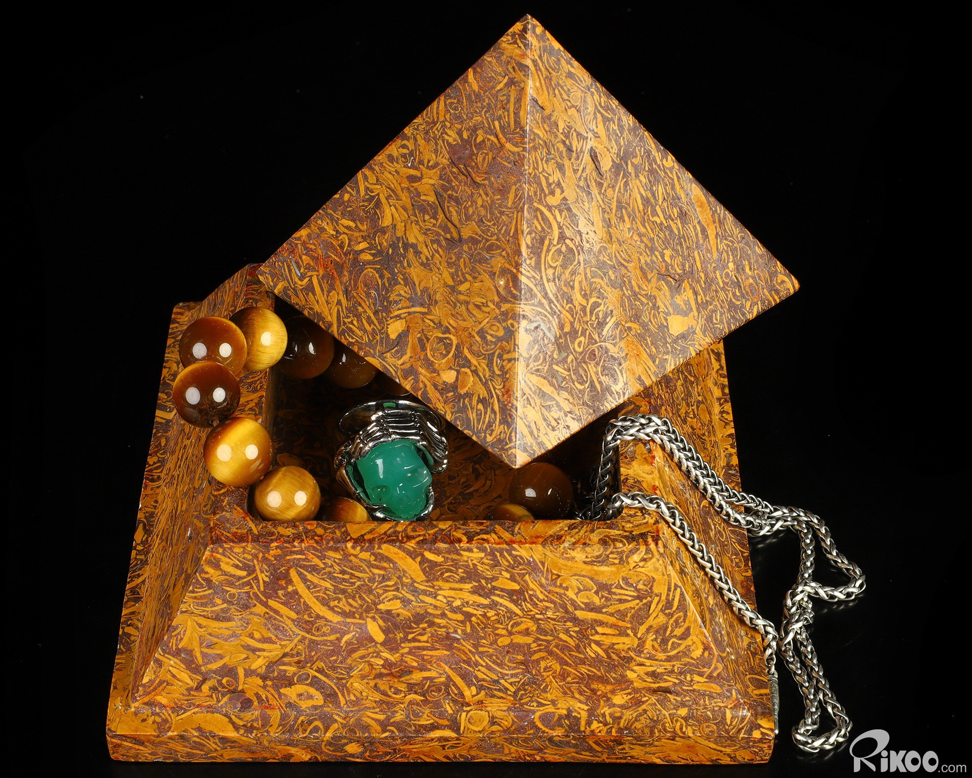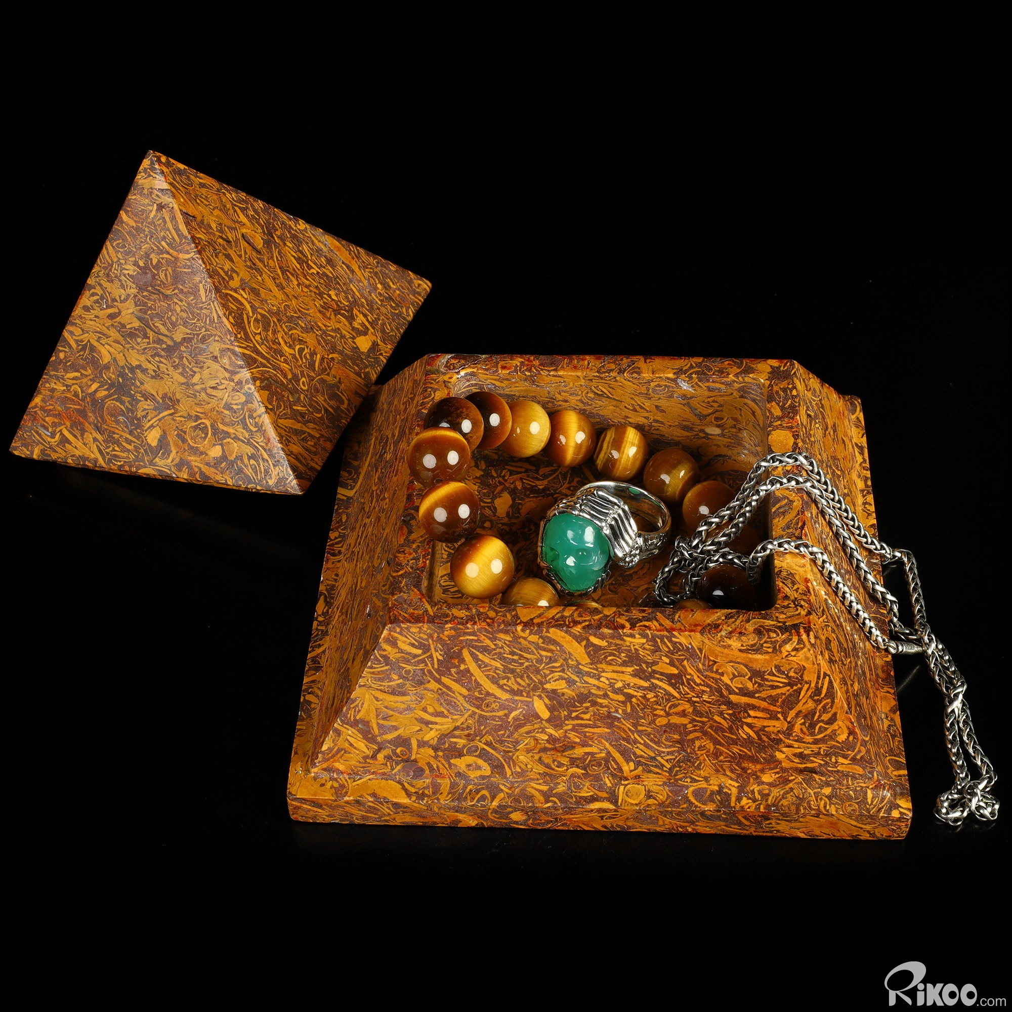 5.0" Elephant Skin Jasper Hand Carved Crystal Storage Box, Crystal Healing