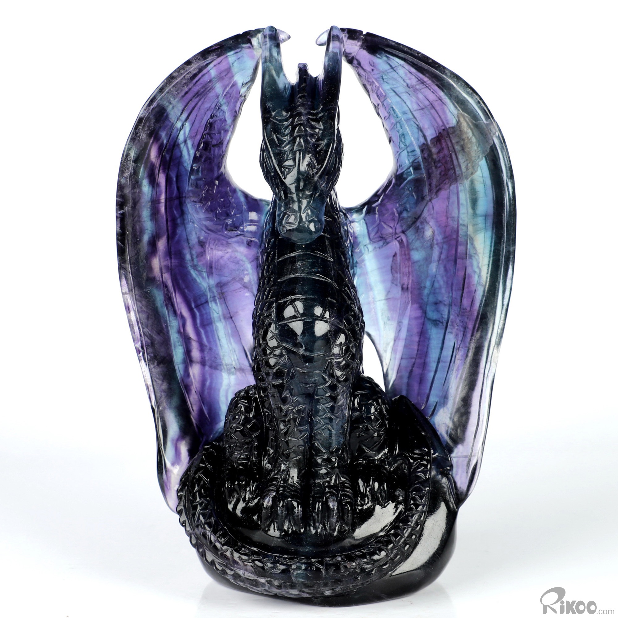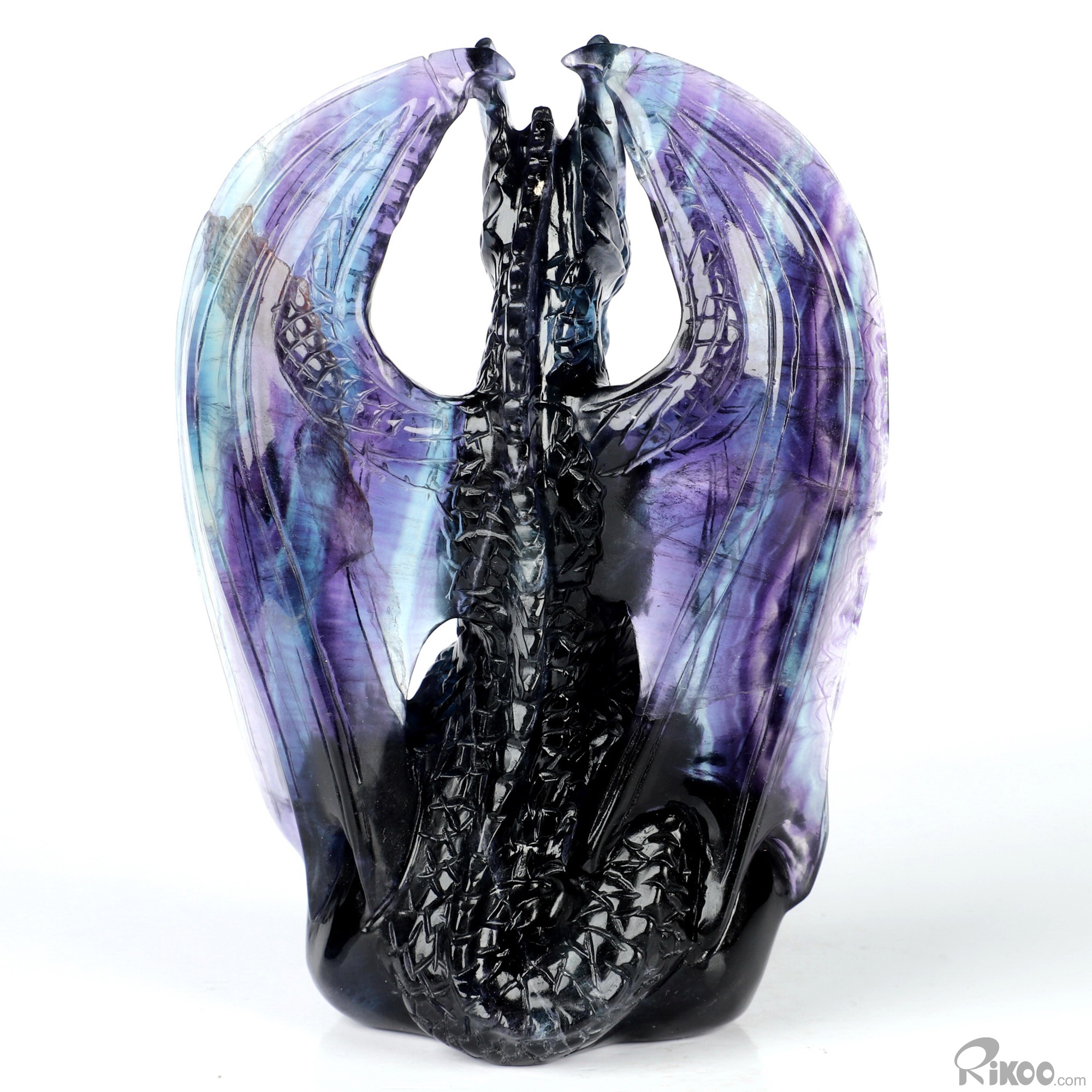 5.0" Fluorite Hand Carved Crystal Dragon Sculpture, Crystal Healing