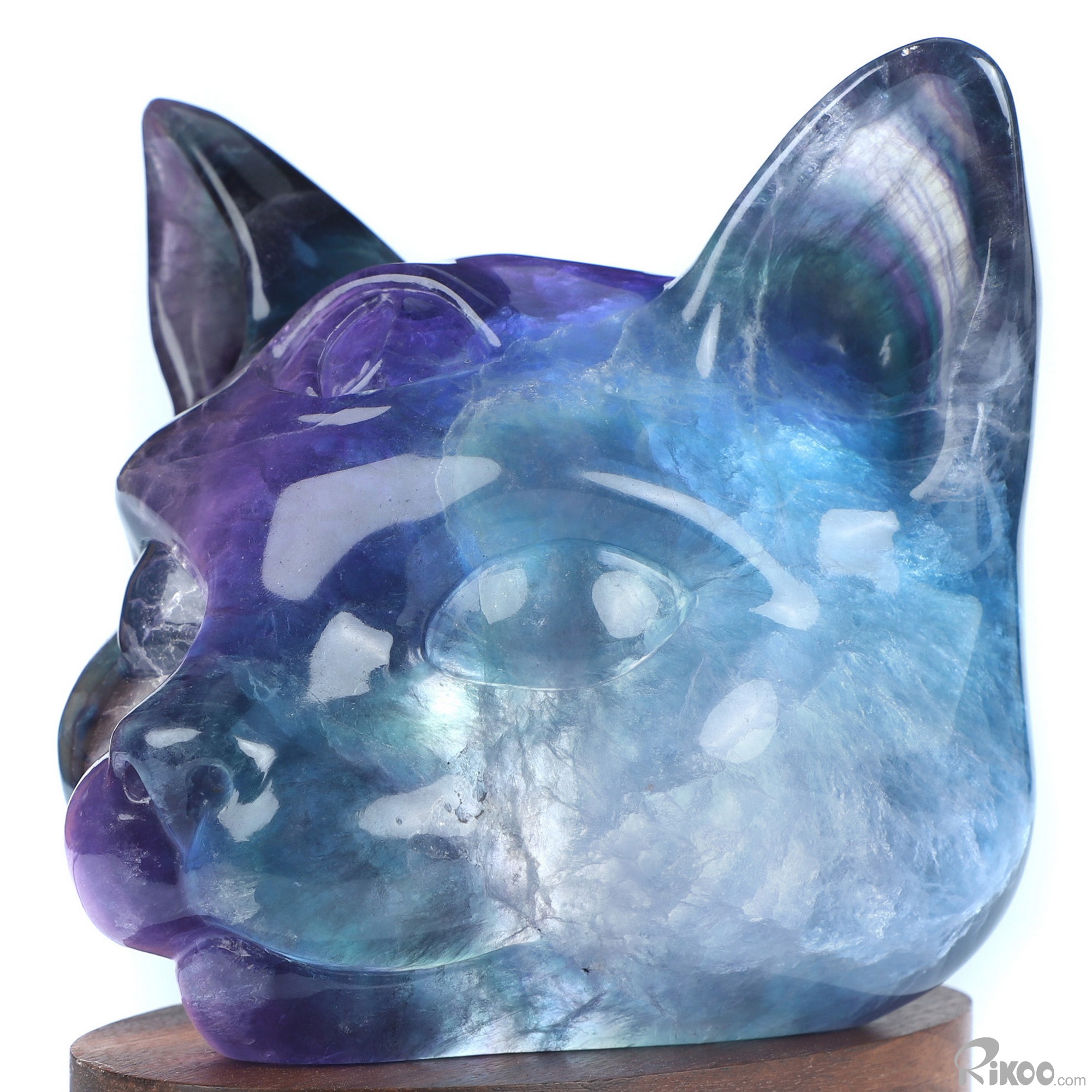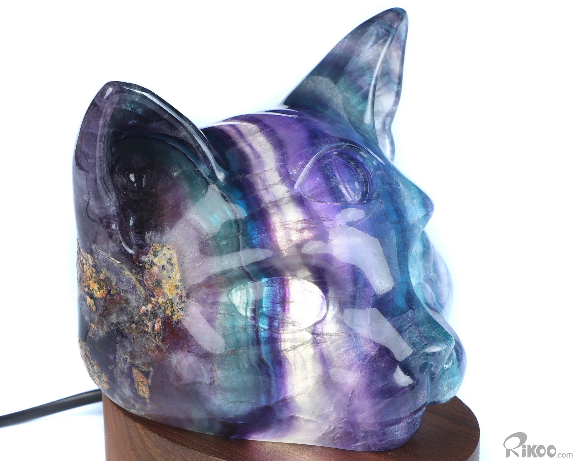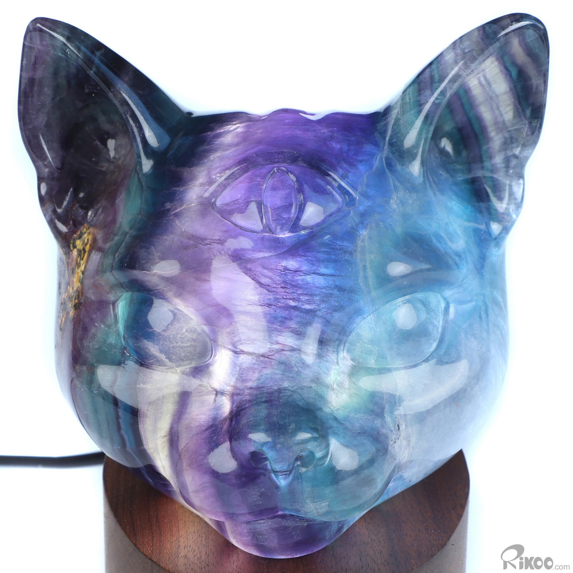 5.0" Fluorite Hand Carved Hollow Crystal Cat Sculpture Lamp/Light, Crystal Healing
