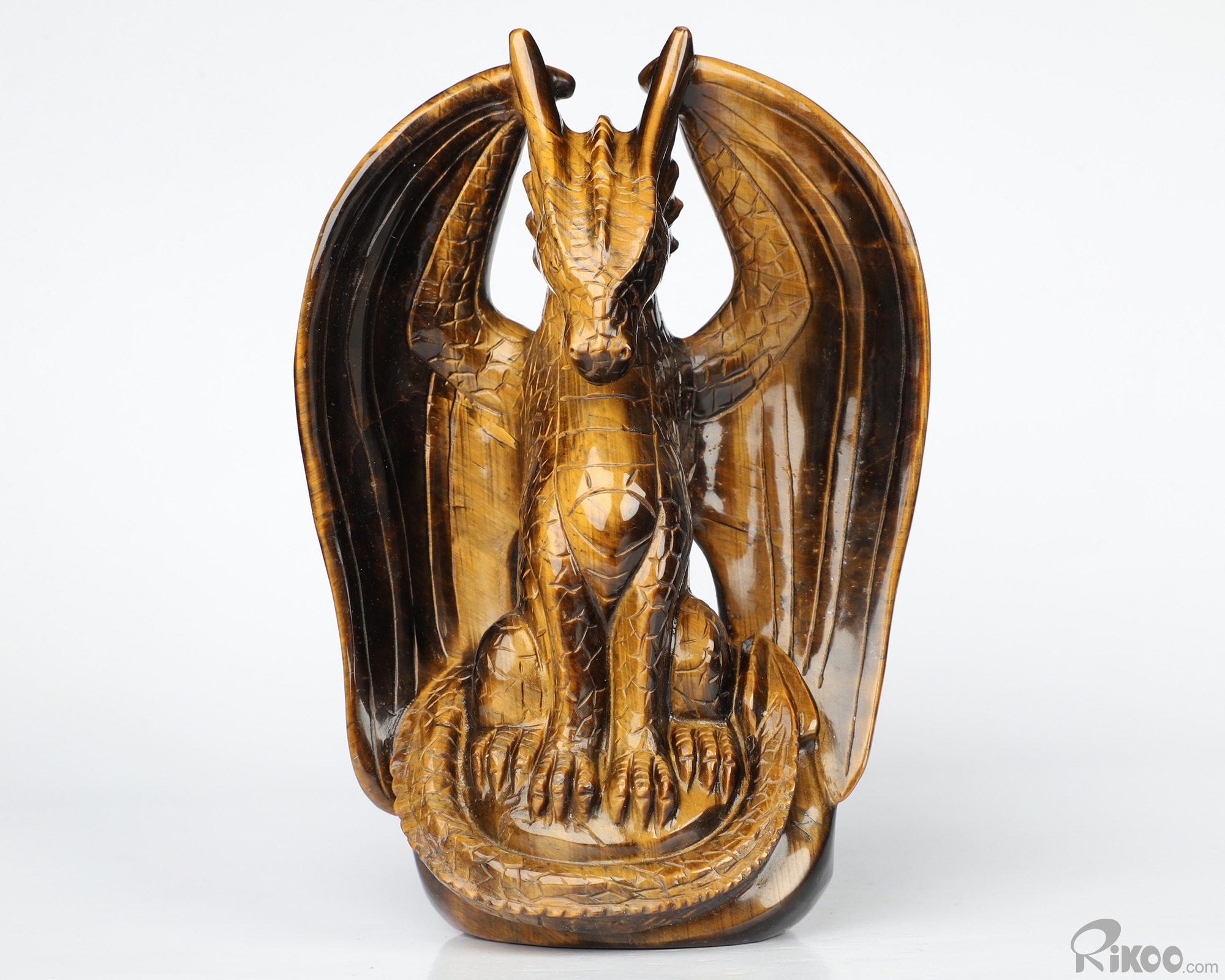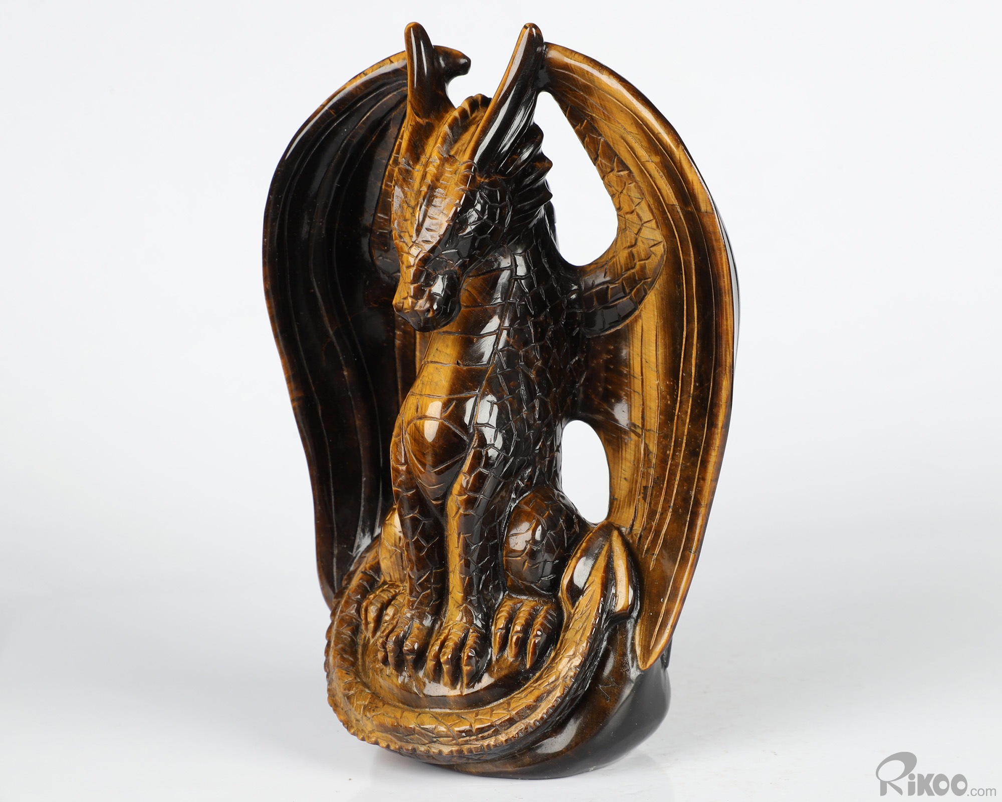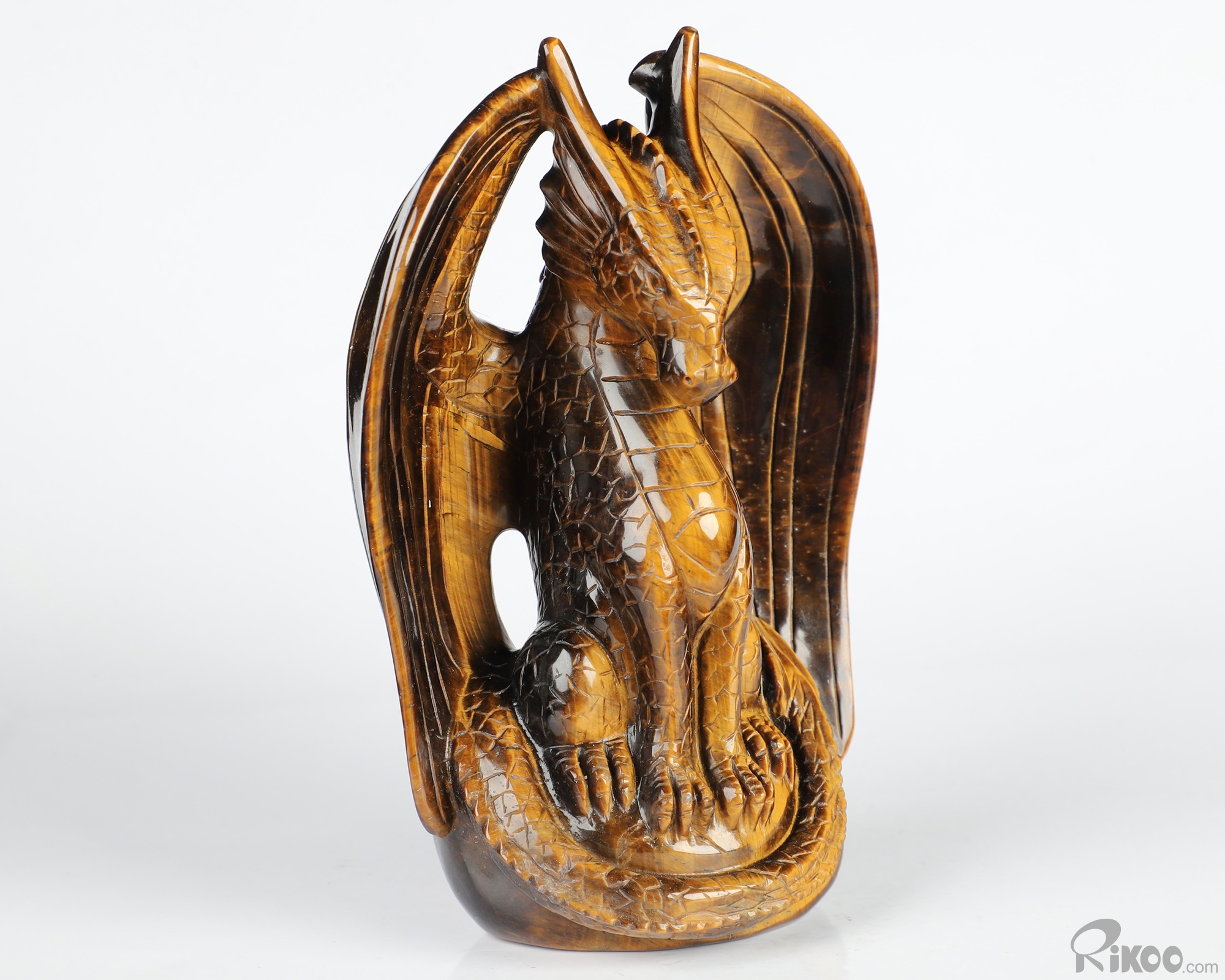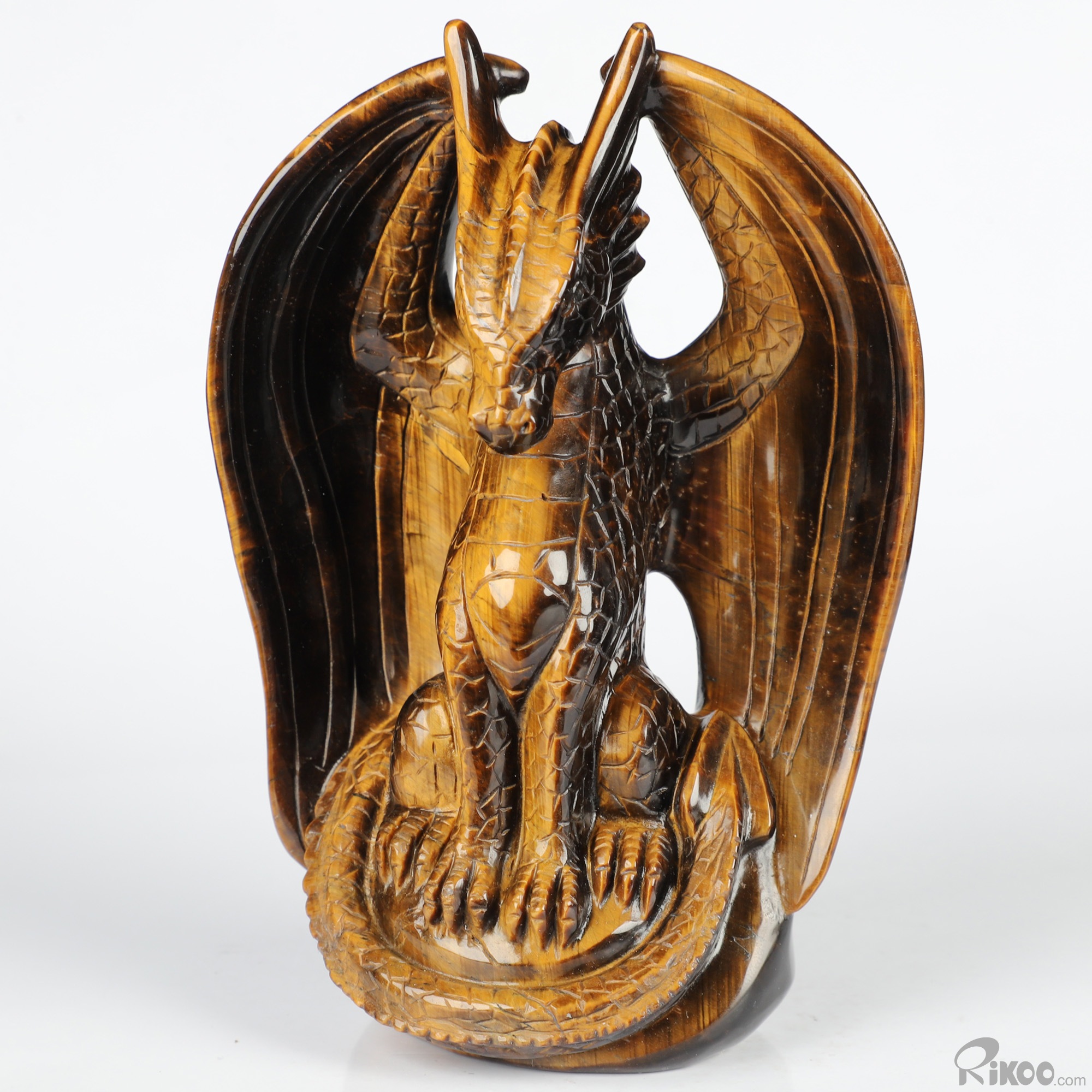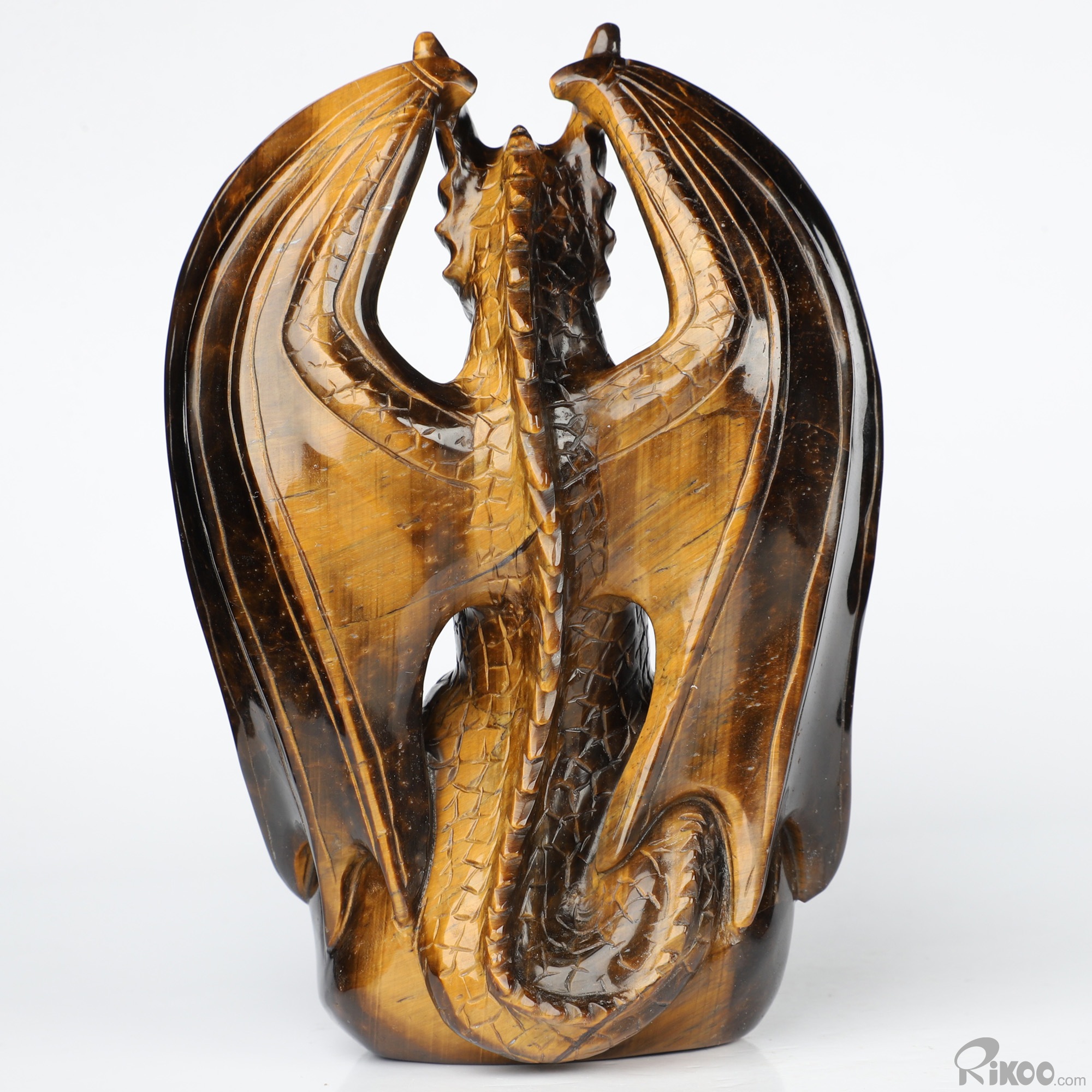 5.0" Gold Tiger's Eye Hand Carved Crystal Dragon Sculpture, Crystal Healing