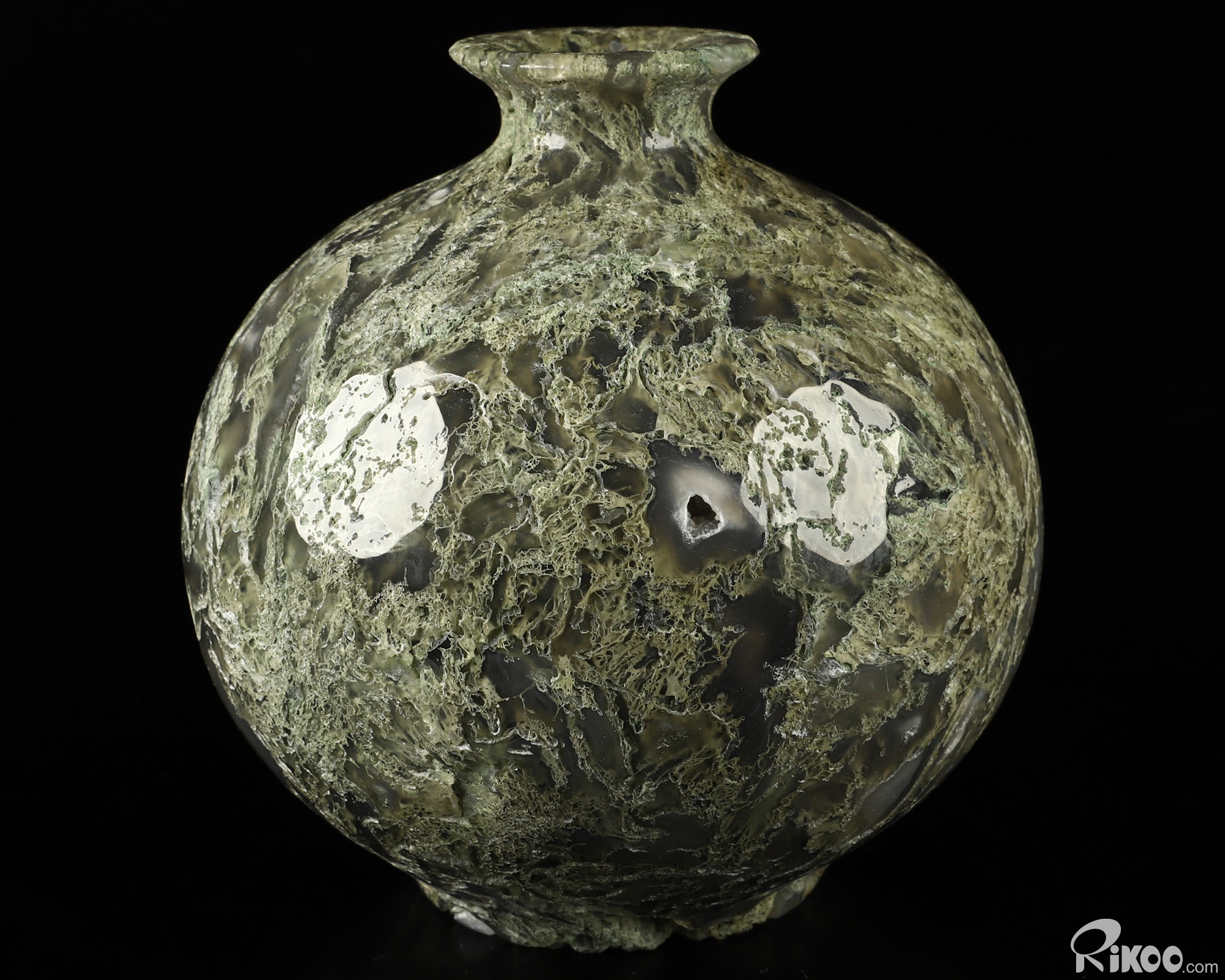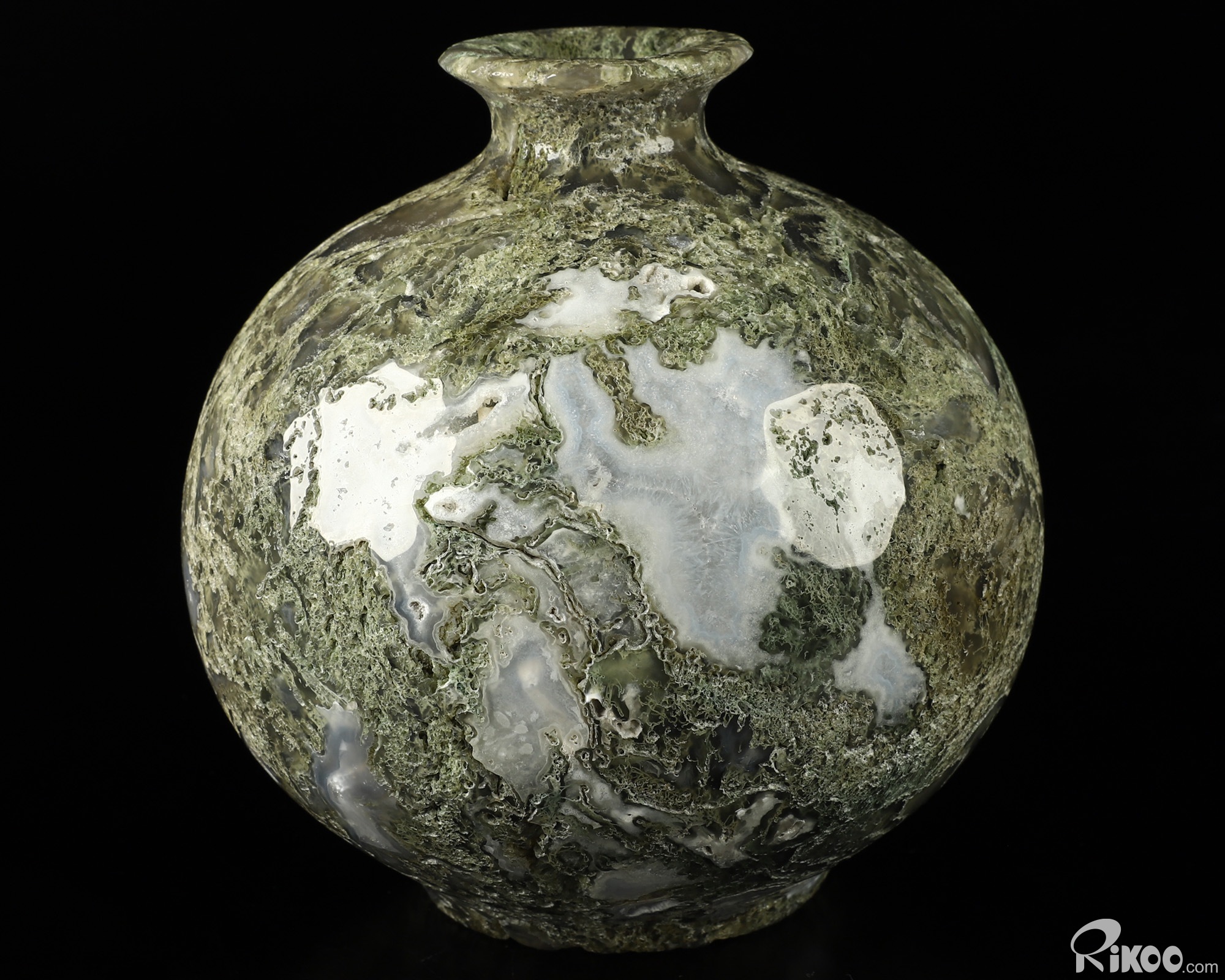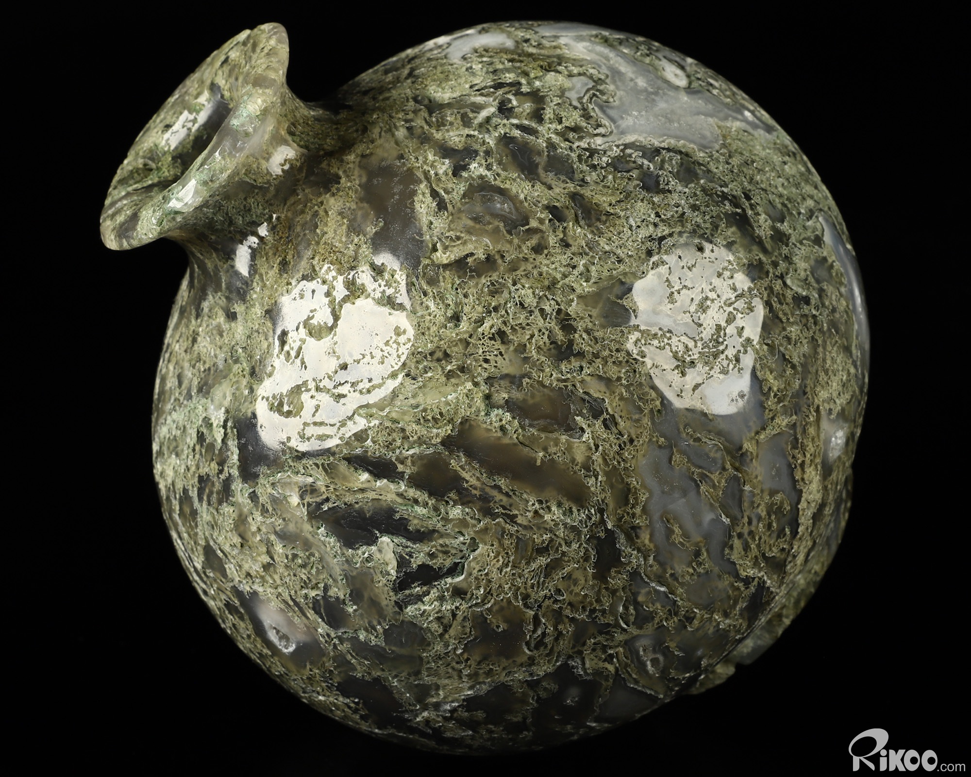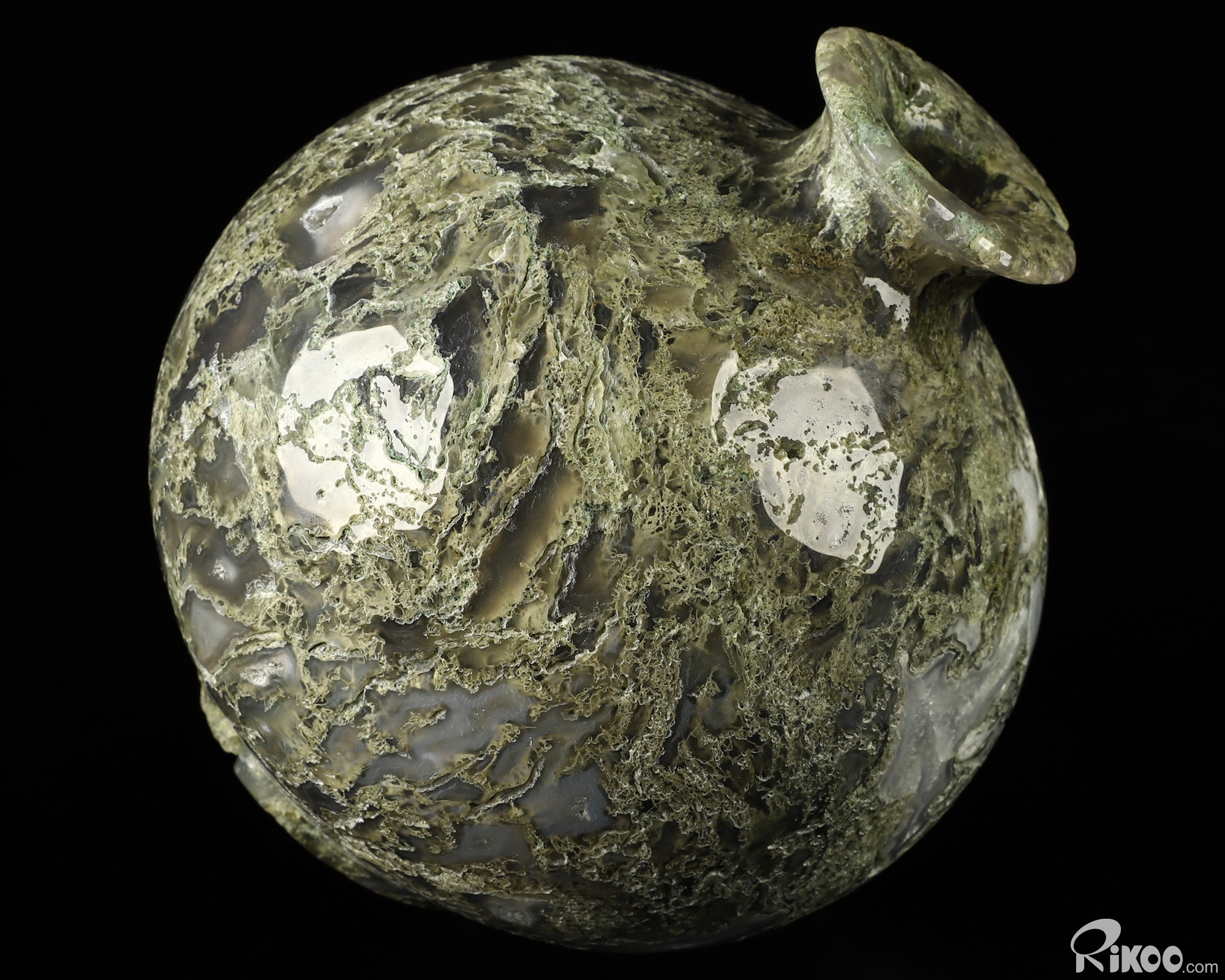 This vase with limited functionality is mainly for display.Connects one to Nature. Translucent, transparent agate containing inclusions of minerals that look like moss or foliage. Improves ego and self-esteem, emotional balance and strengthens positive personality traits. Allows one to see all the beauty one's eyes touch.