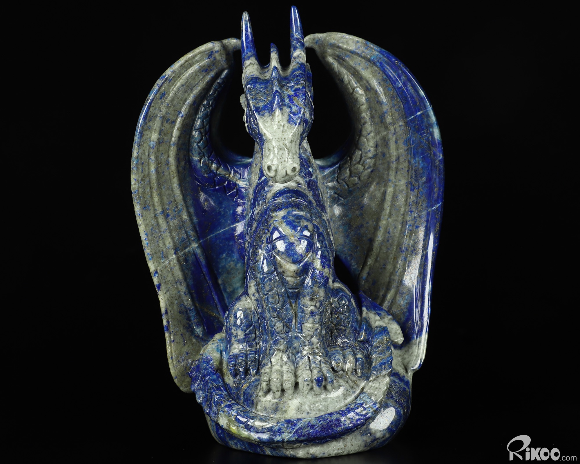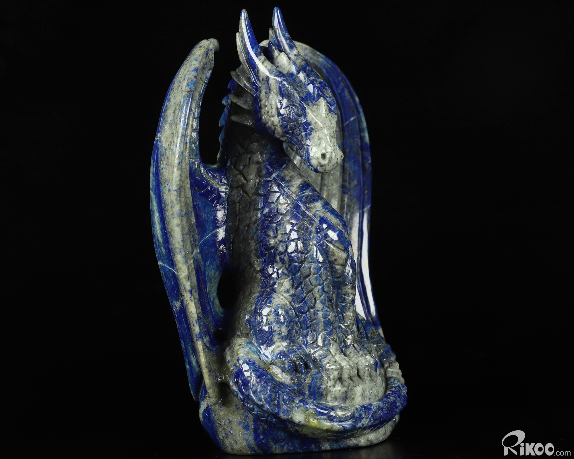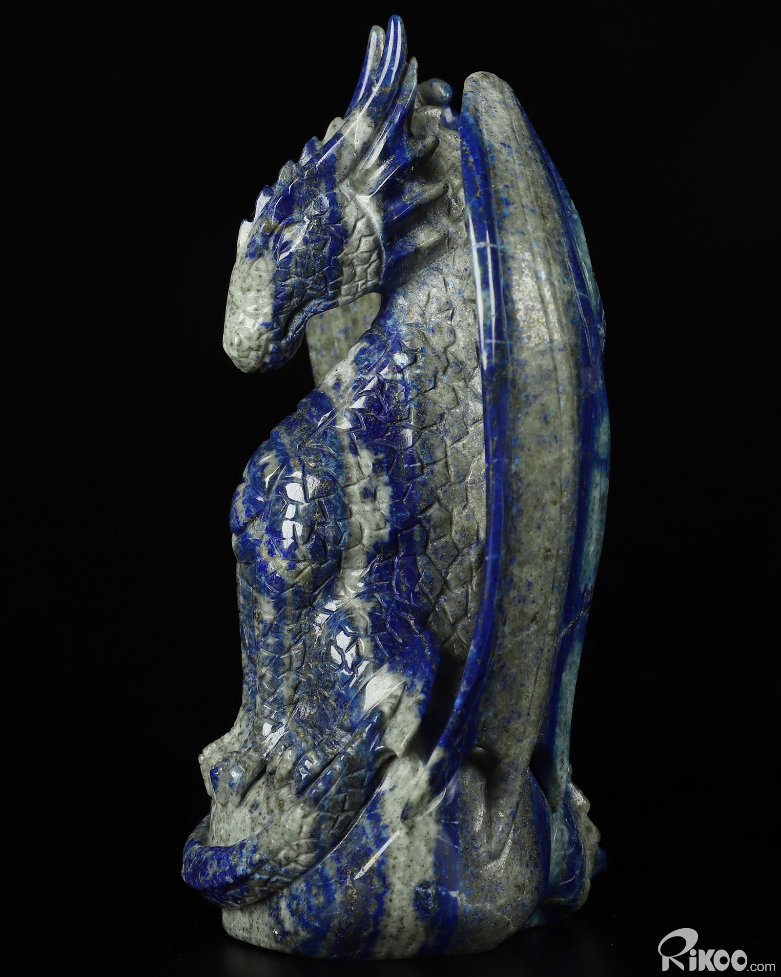 5.0" Lapis Lazuli Carved Crystal Dragon Sculpture, Crystal Healing