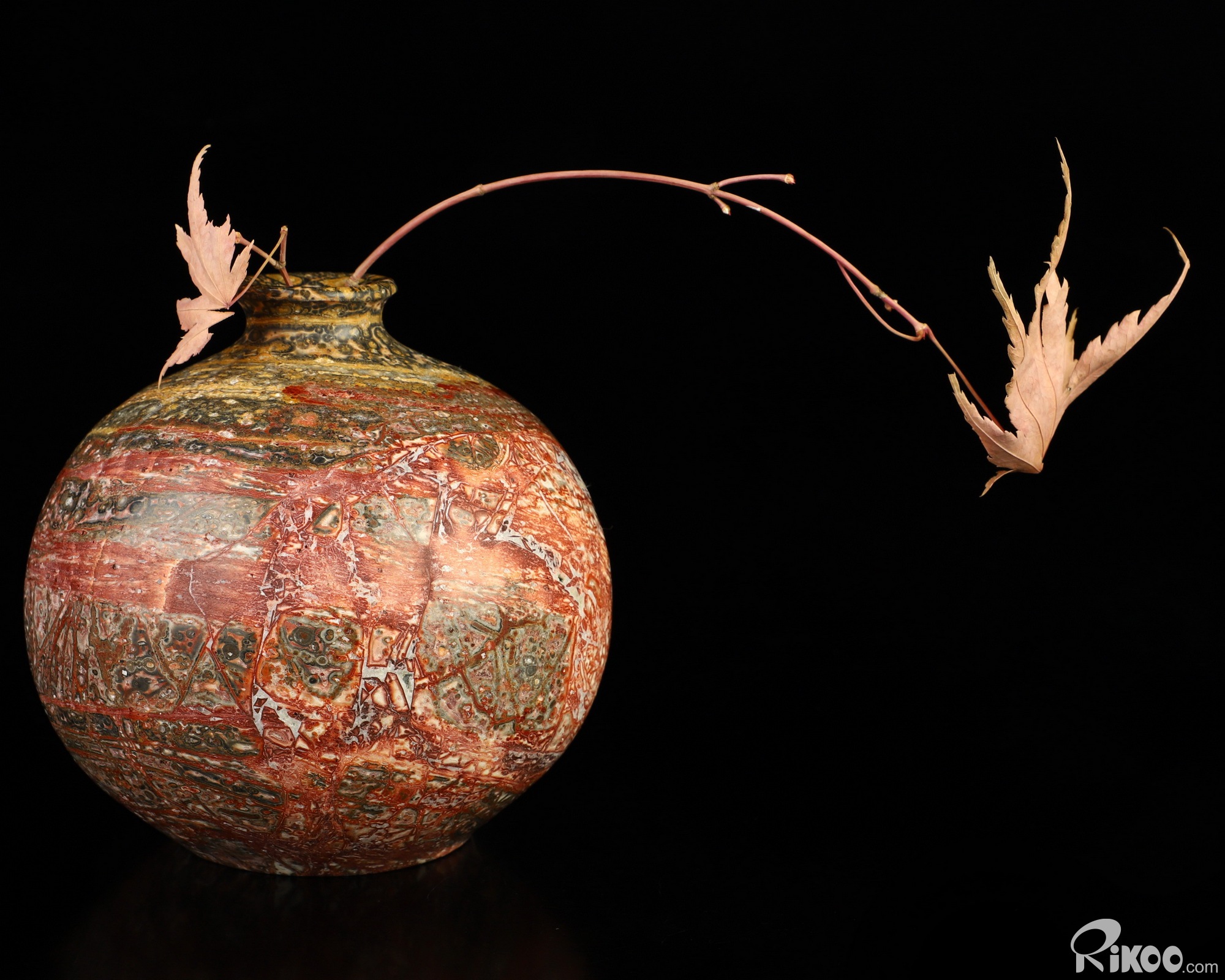 5.0" Leopard Skin Jasper Hand Carved Crystal Vase Sculpture, Crystal Healing