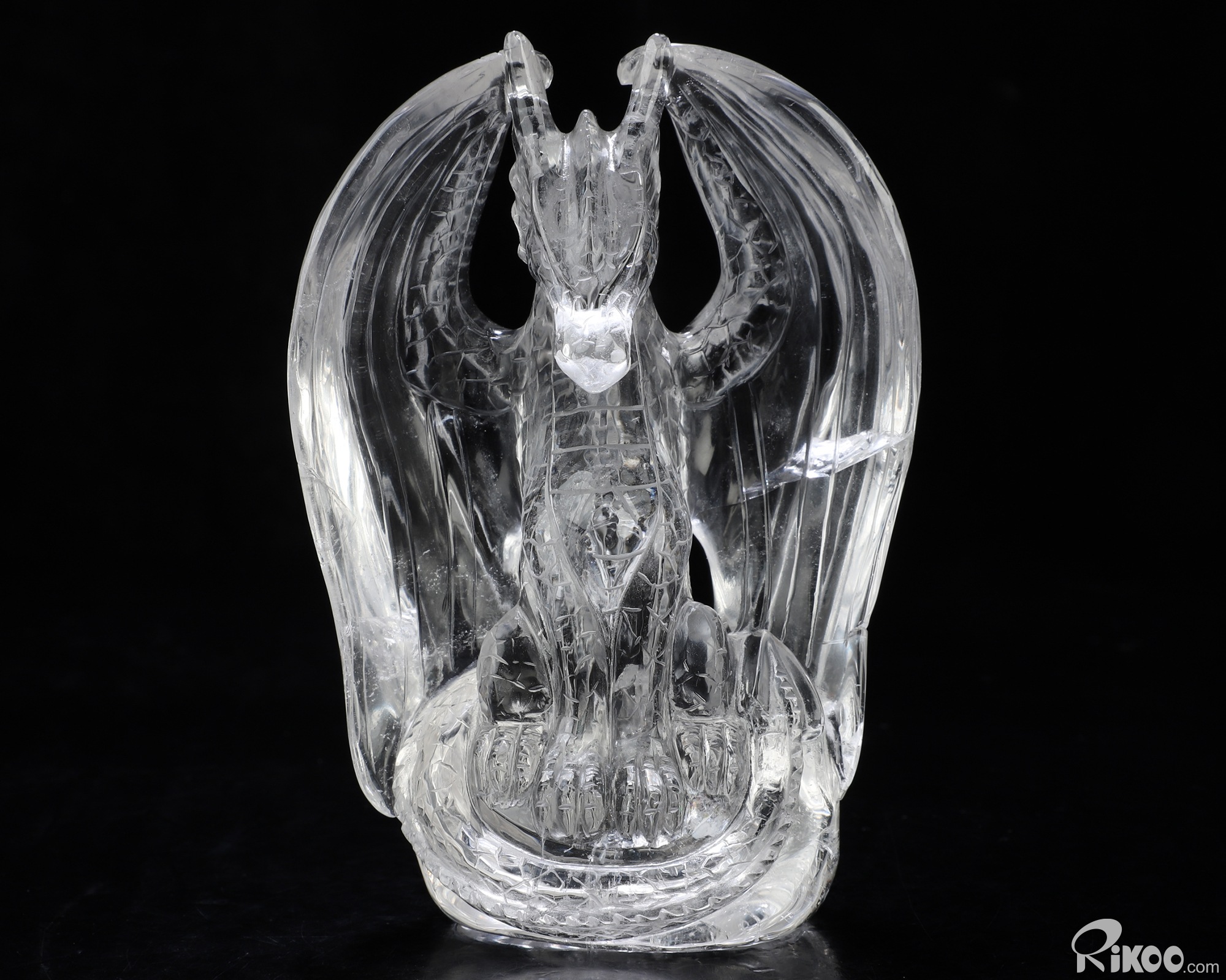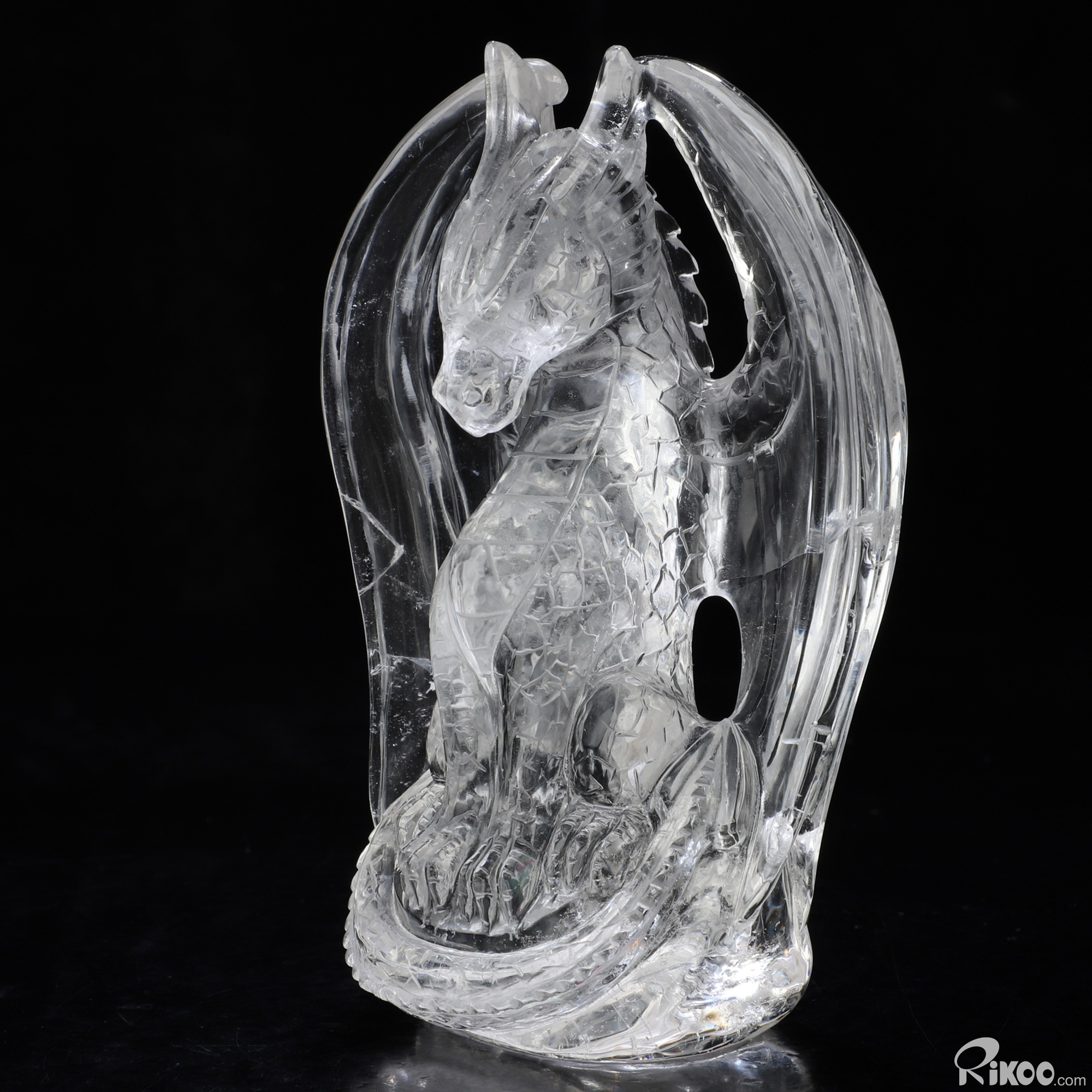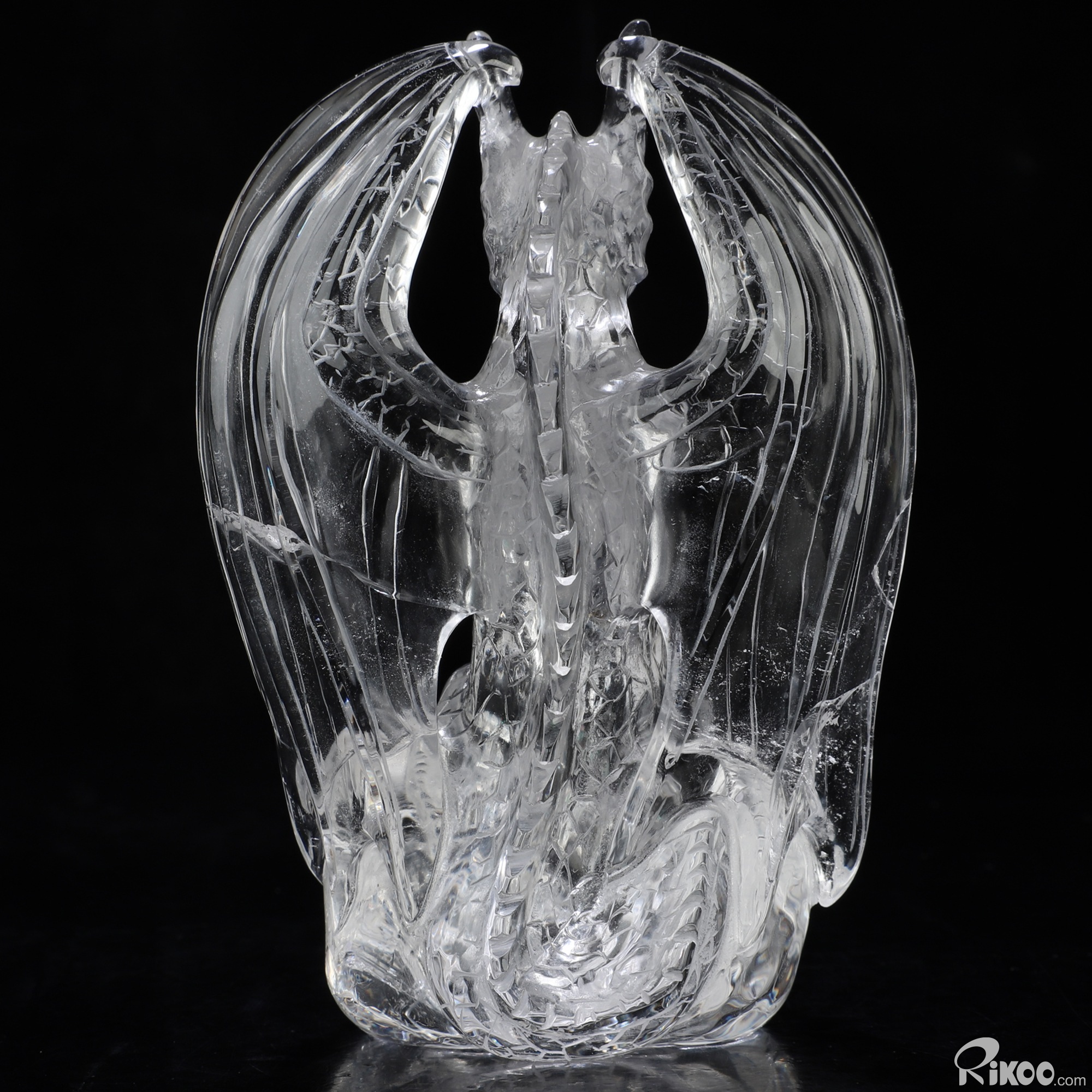 5.0" Quartz Rock Crystal Hand Carved Crystal Dragon Sculpture, Crystal Healing