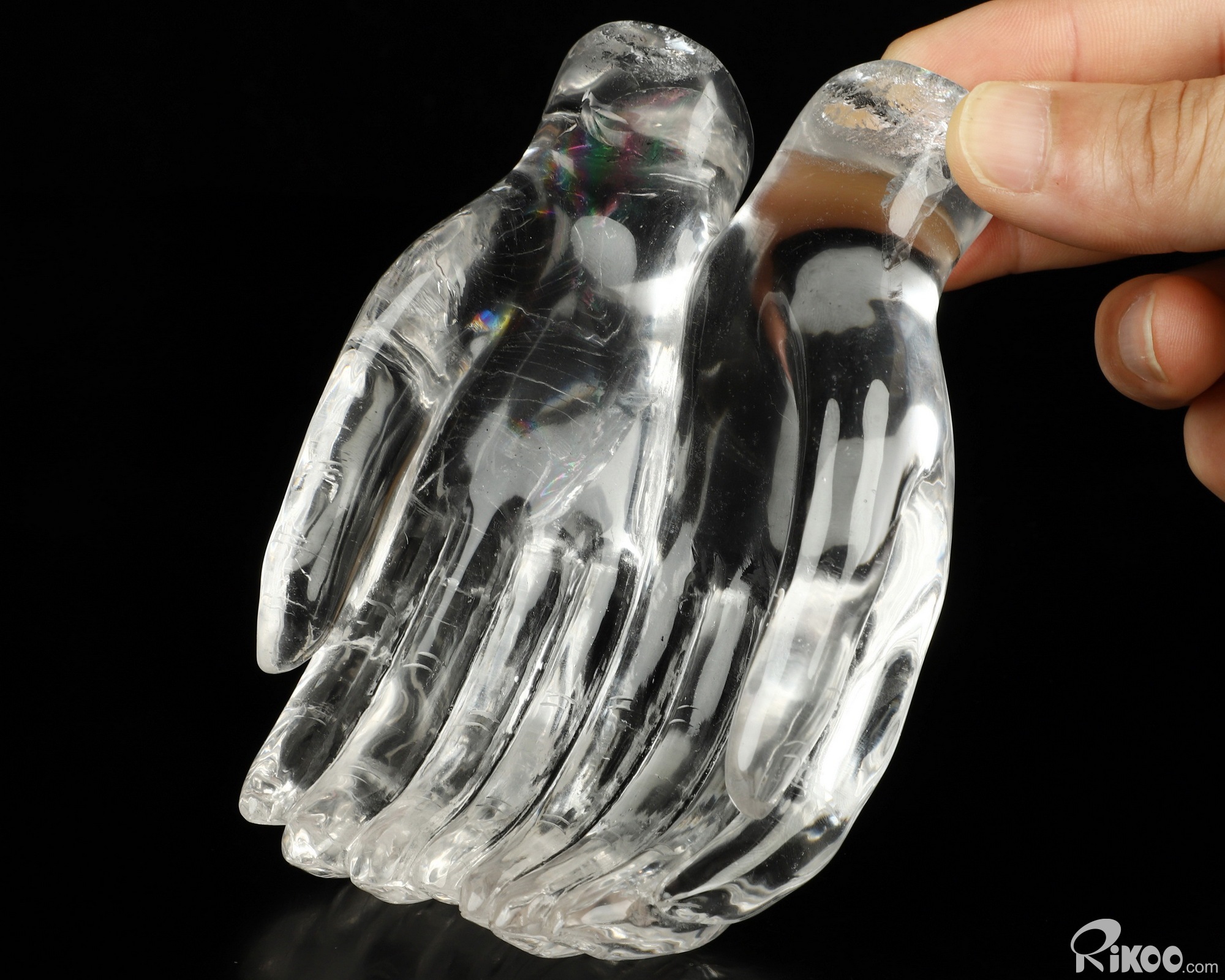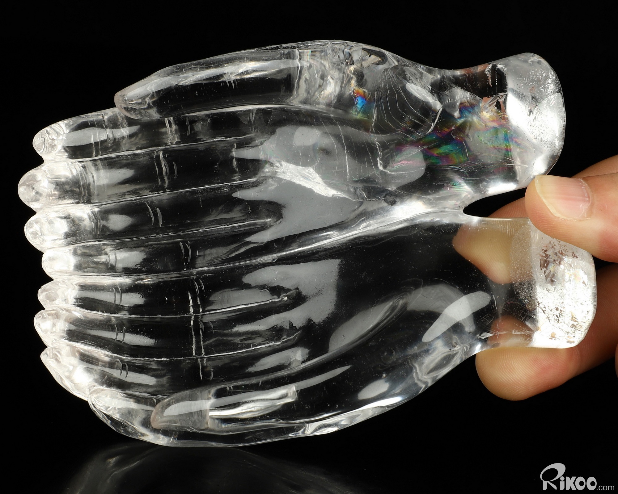 5.0" Quartz Rock Crystal Hand Carved Crystal Hands Sculpture, Crystal Healing