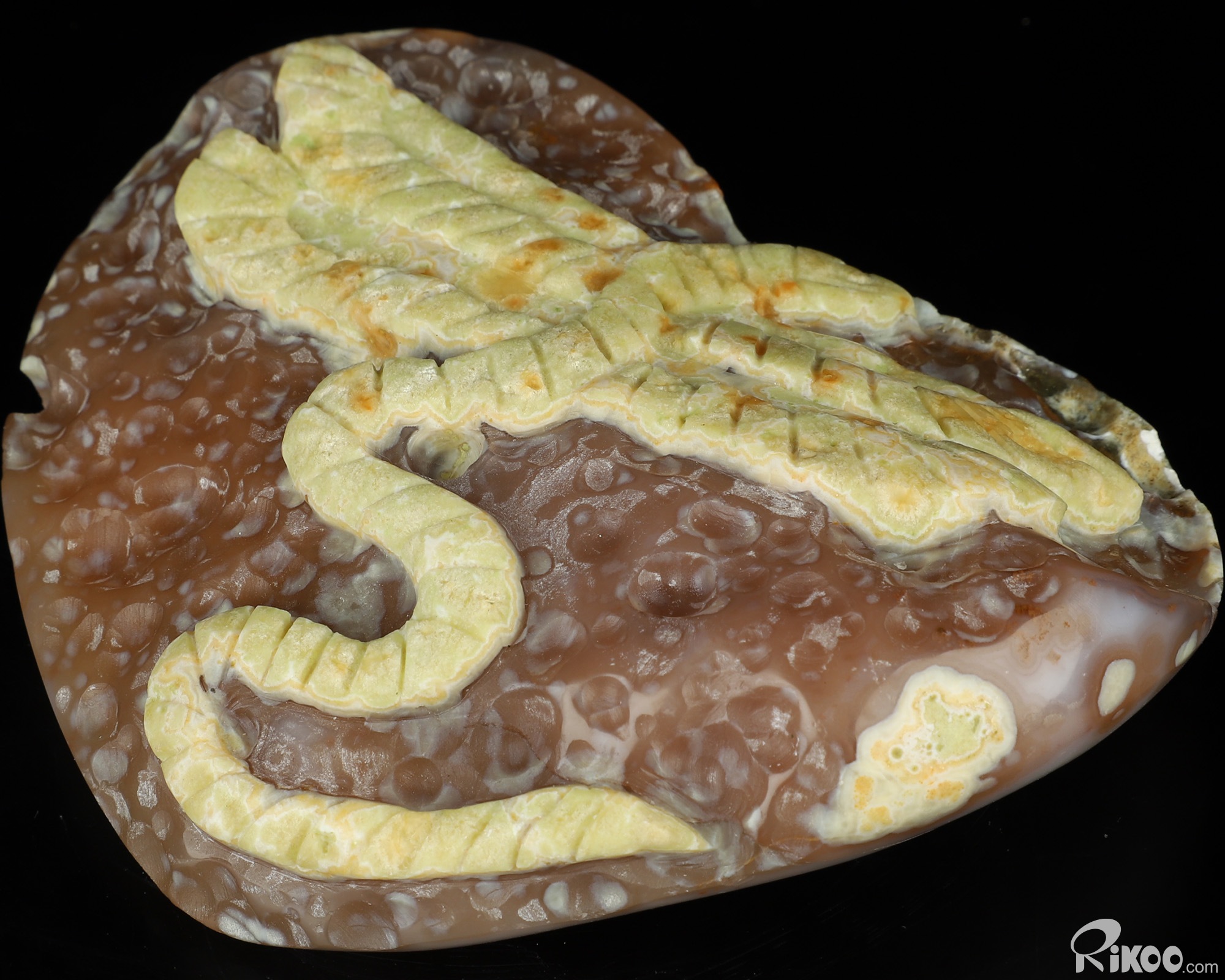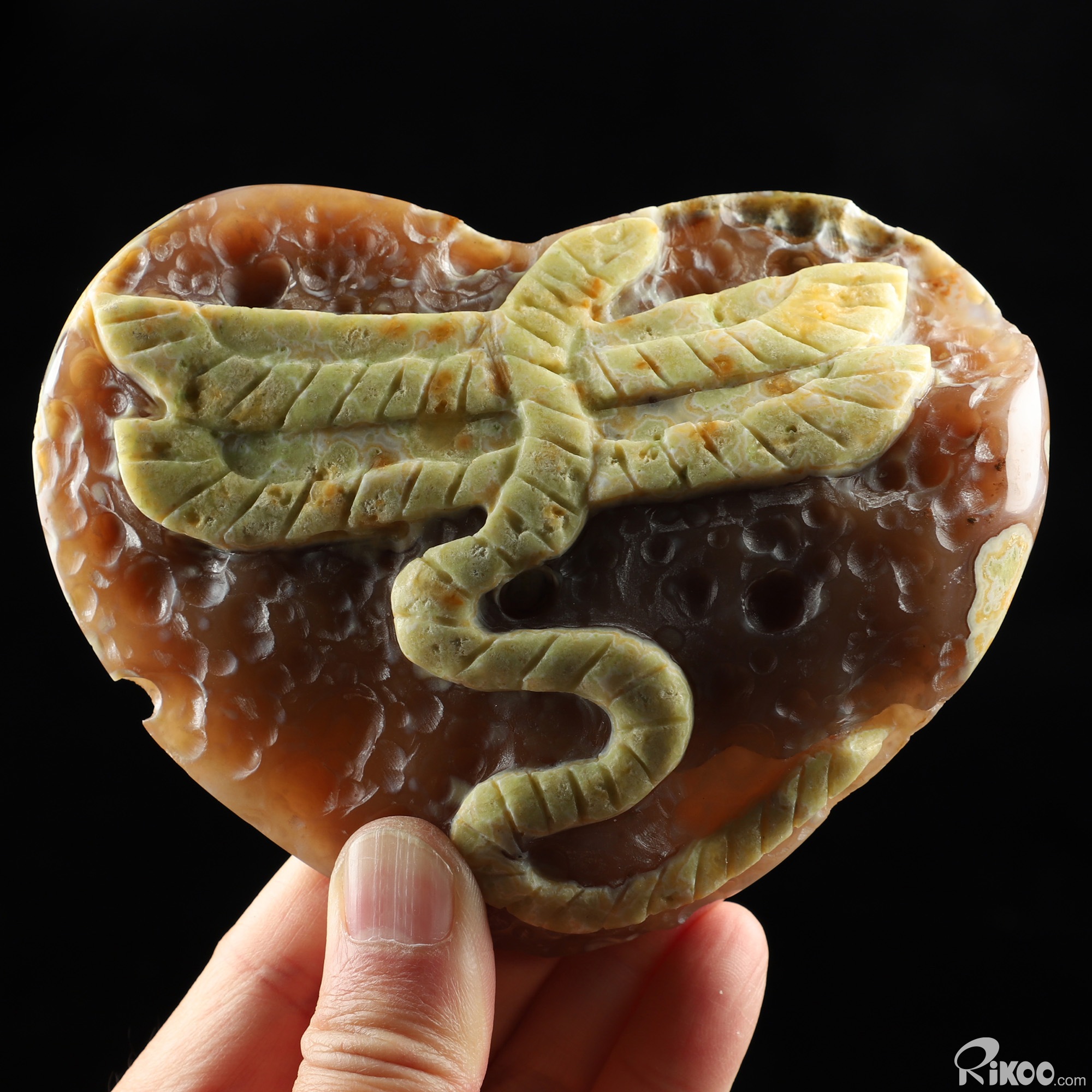 5.1" Agate Geode Hand Carved Crystal Heart Feathered Serpent Sculpture, Crystal Healing