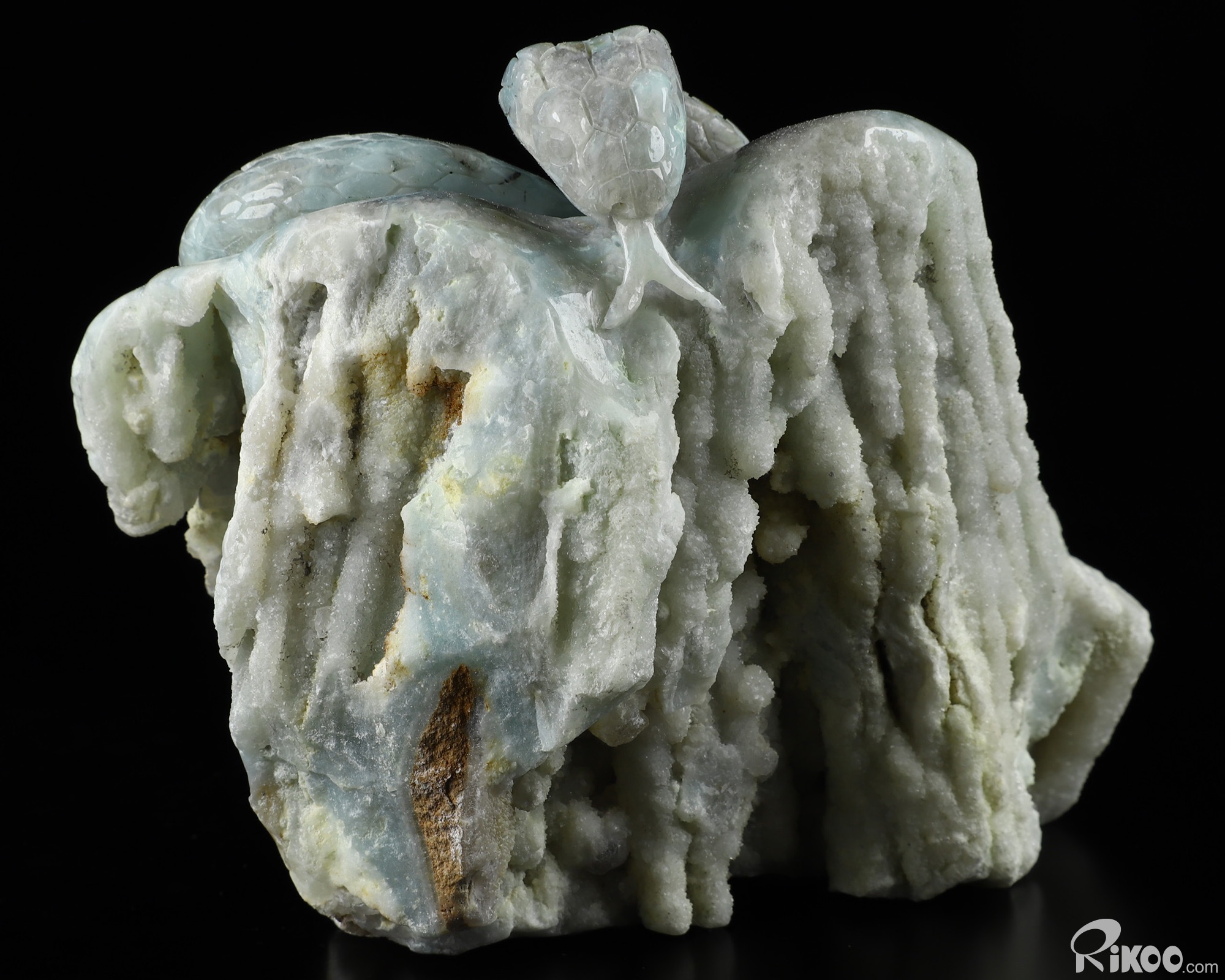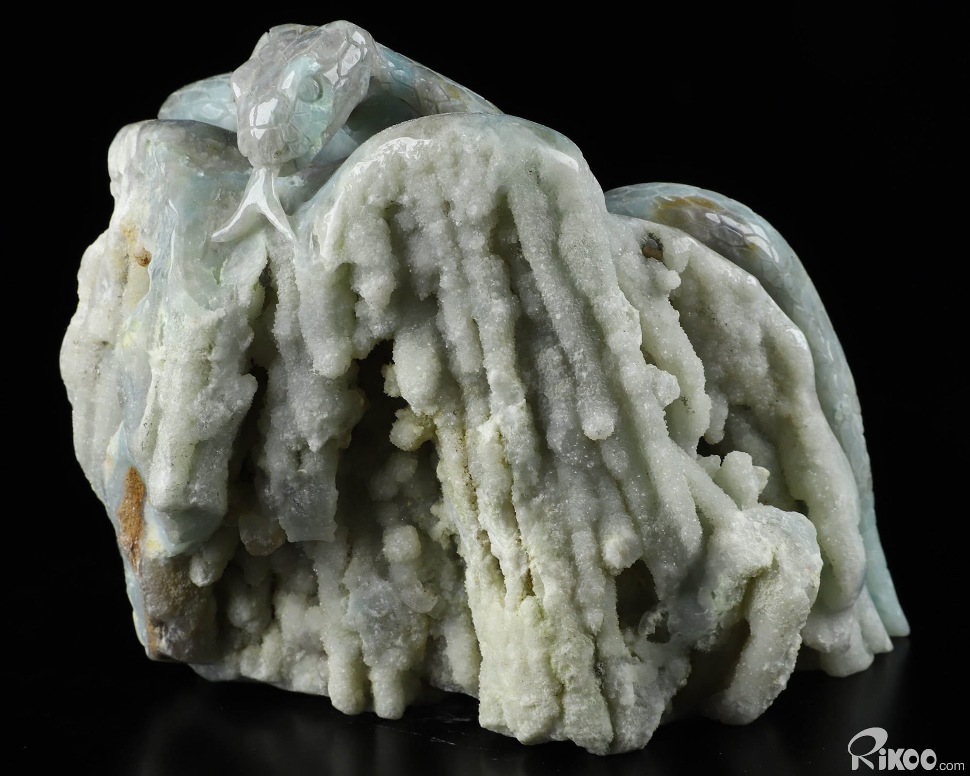5.1" Blue Aragonite Carved Crystal Snake, Realistic, Crystal Healing