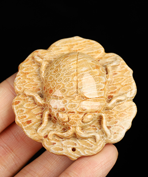 You are looking at a Coral Fossil sculpture. The sculpture is 5.1 inches long.
