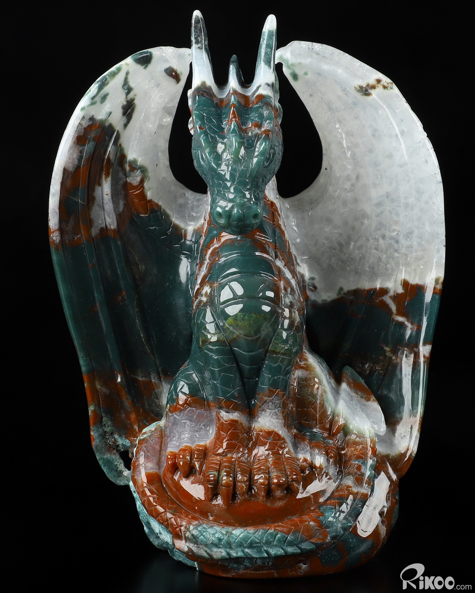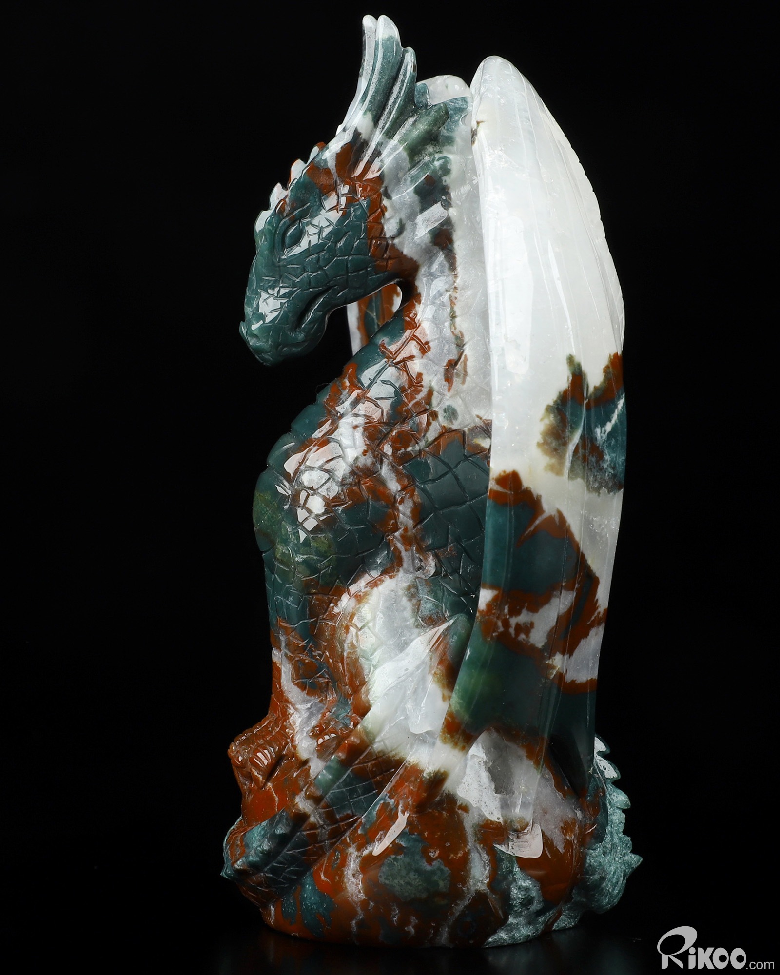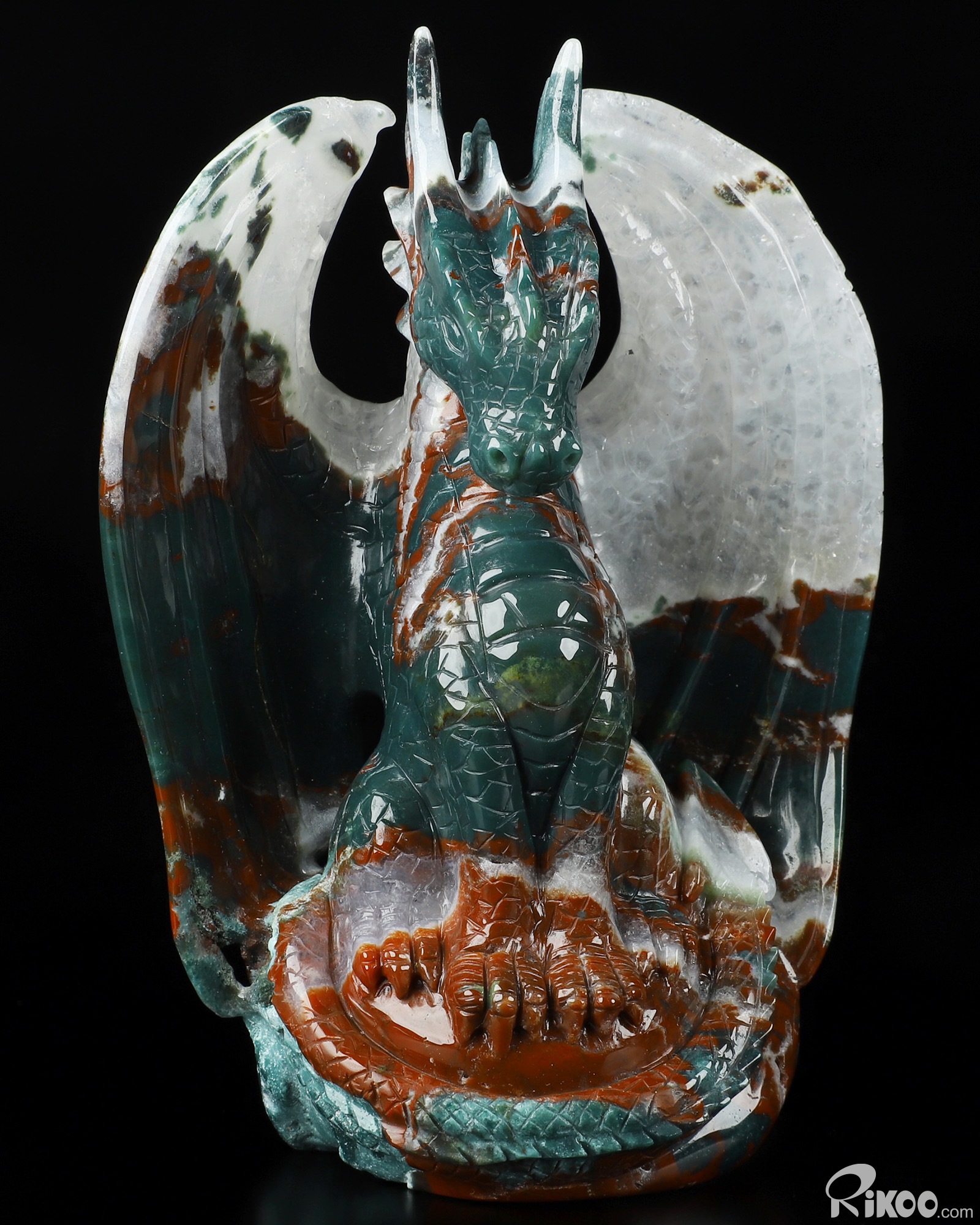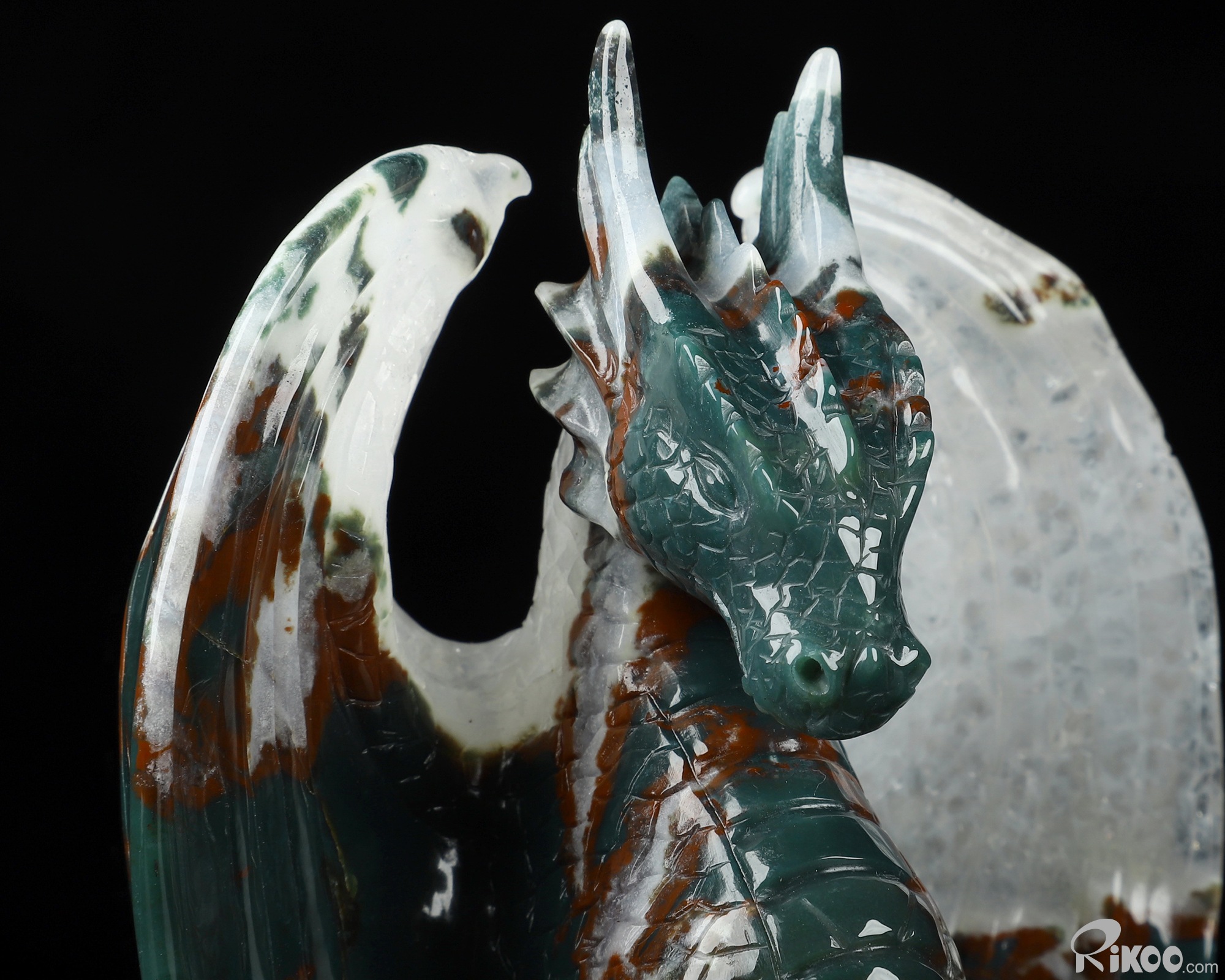 5.1" Indian Agate Carved Crystal Dragon Sculpture, Crystal Healing