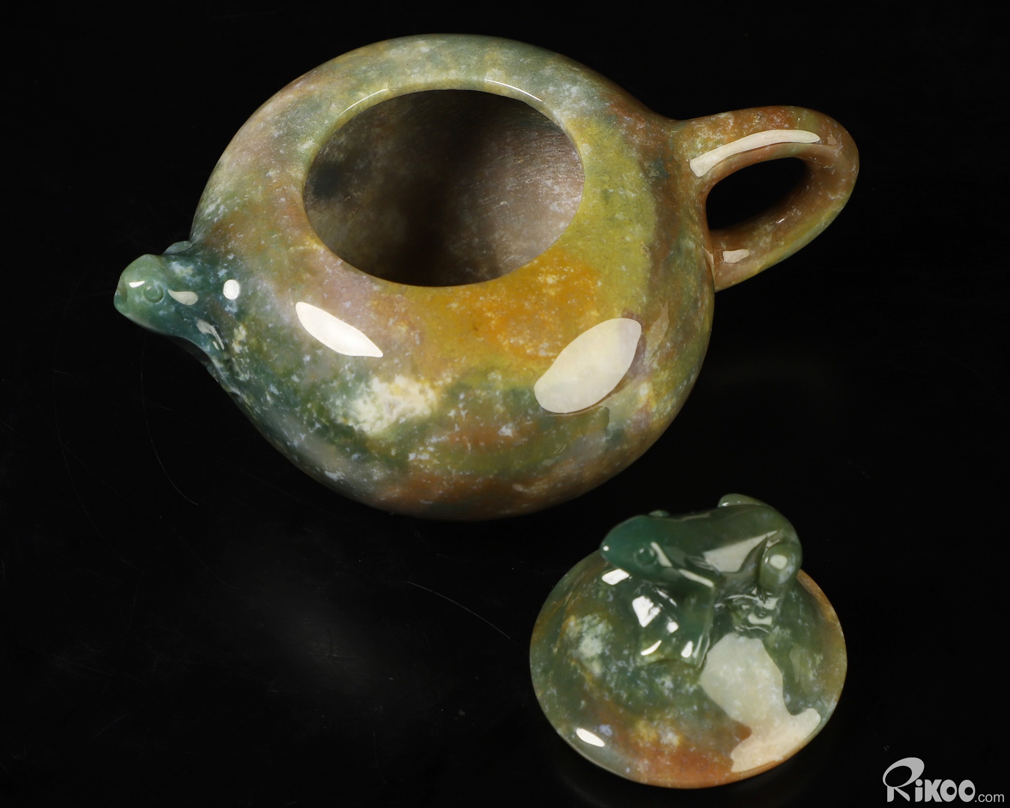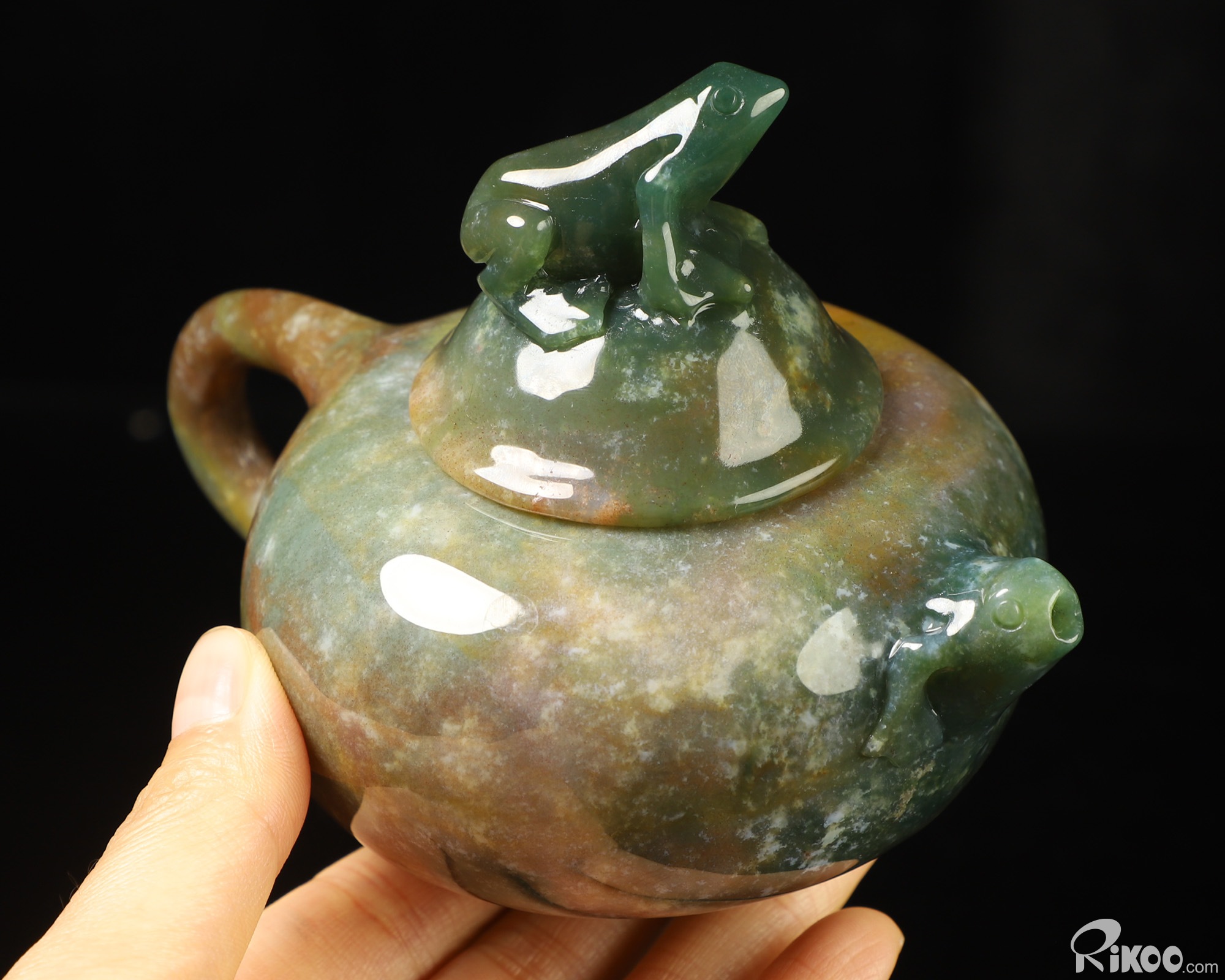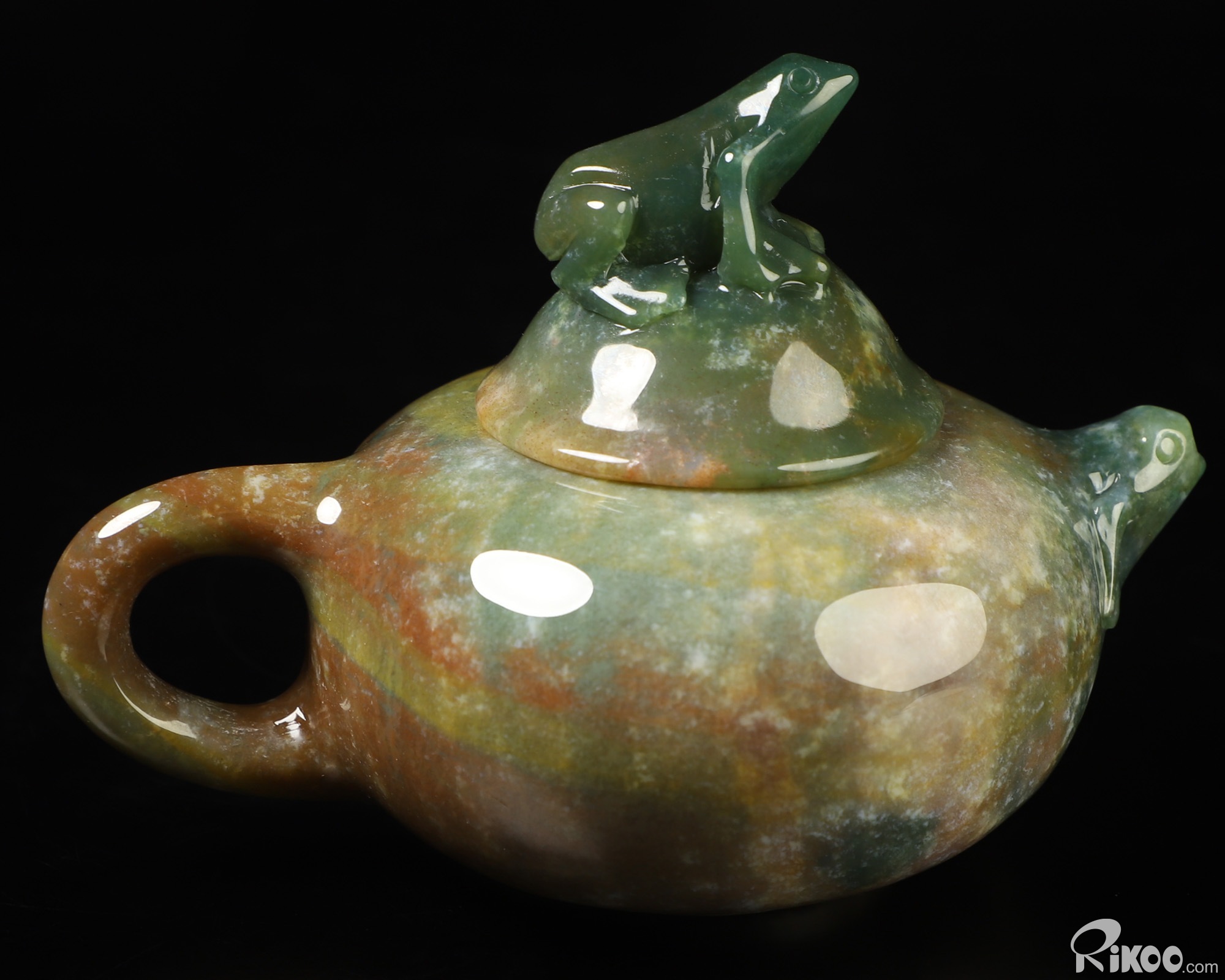 5.1" Indian Agate Hand Carved Crystal Pot and Frog, Crystal Healing