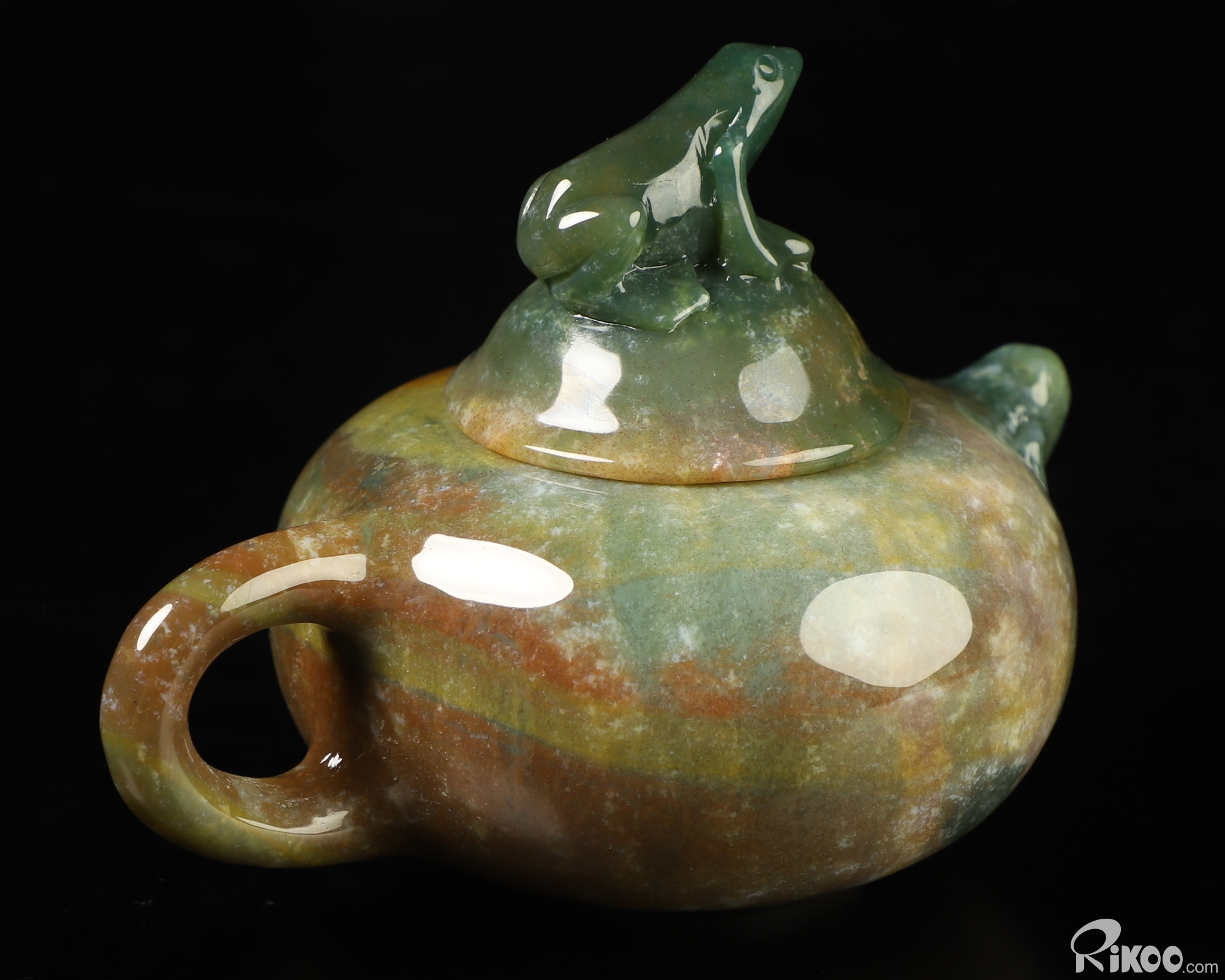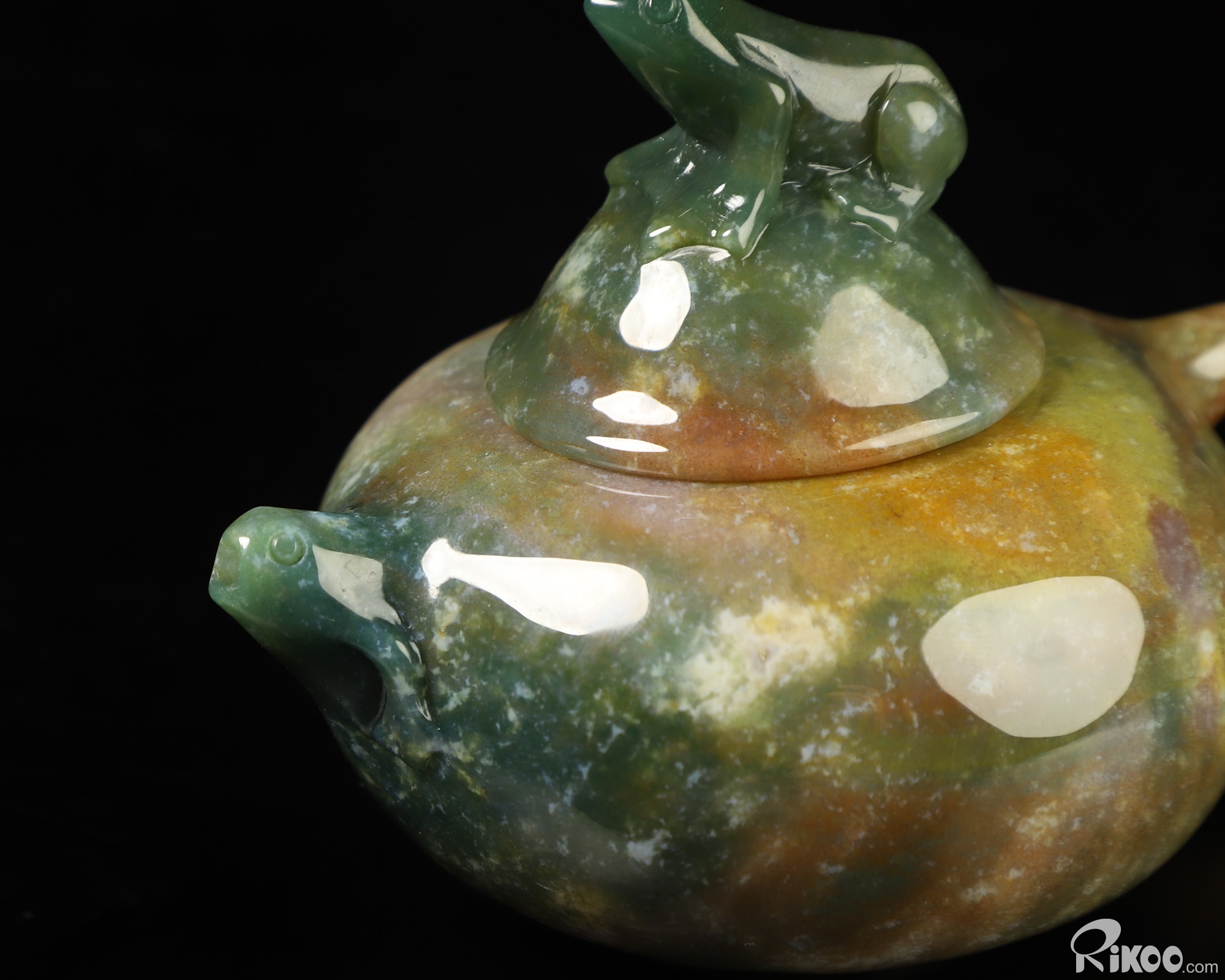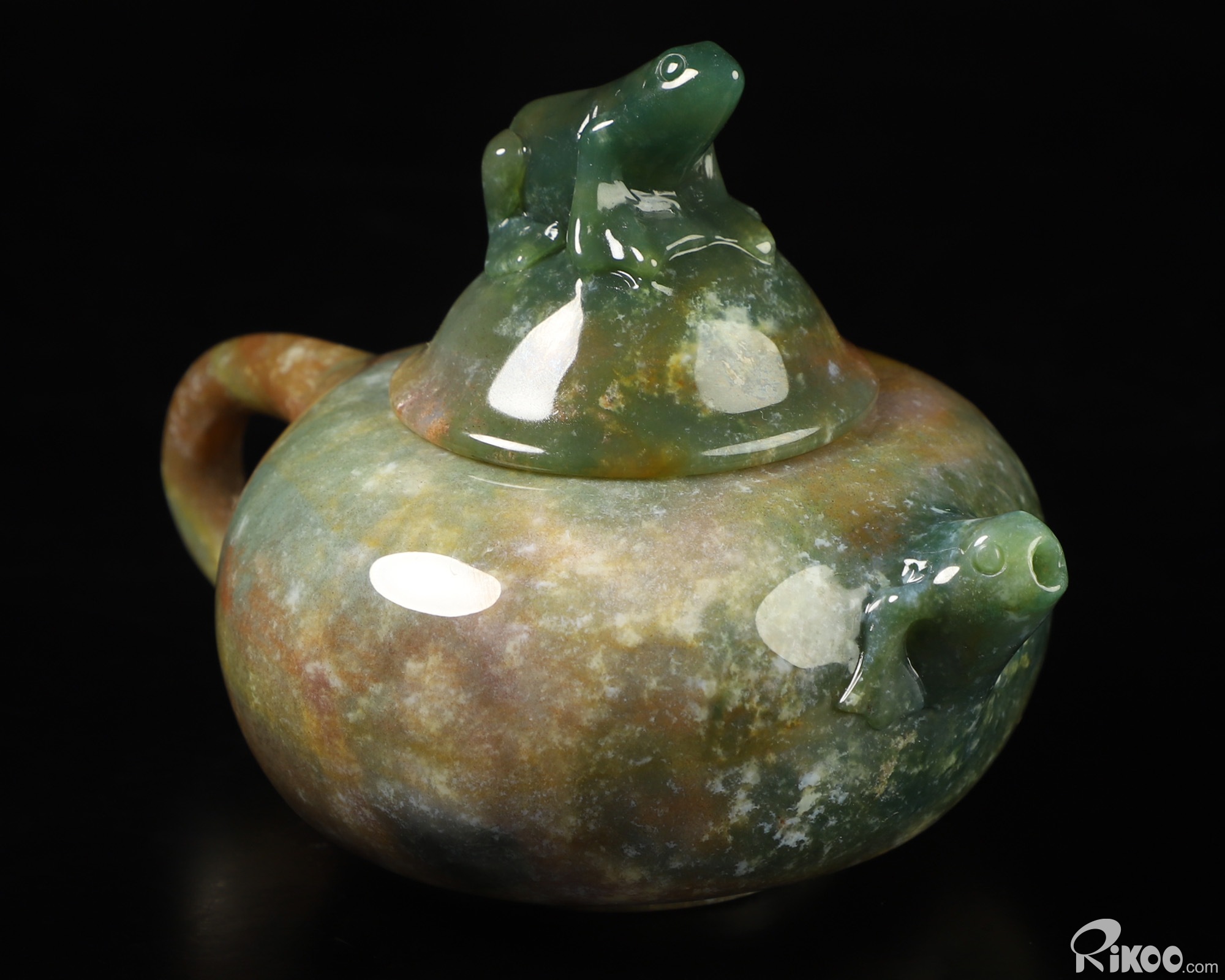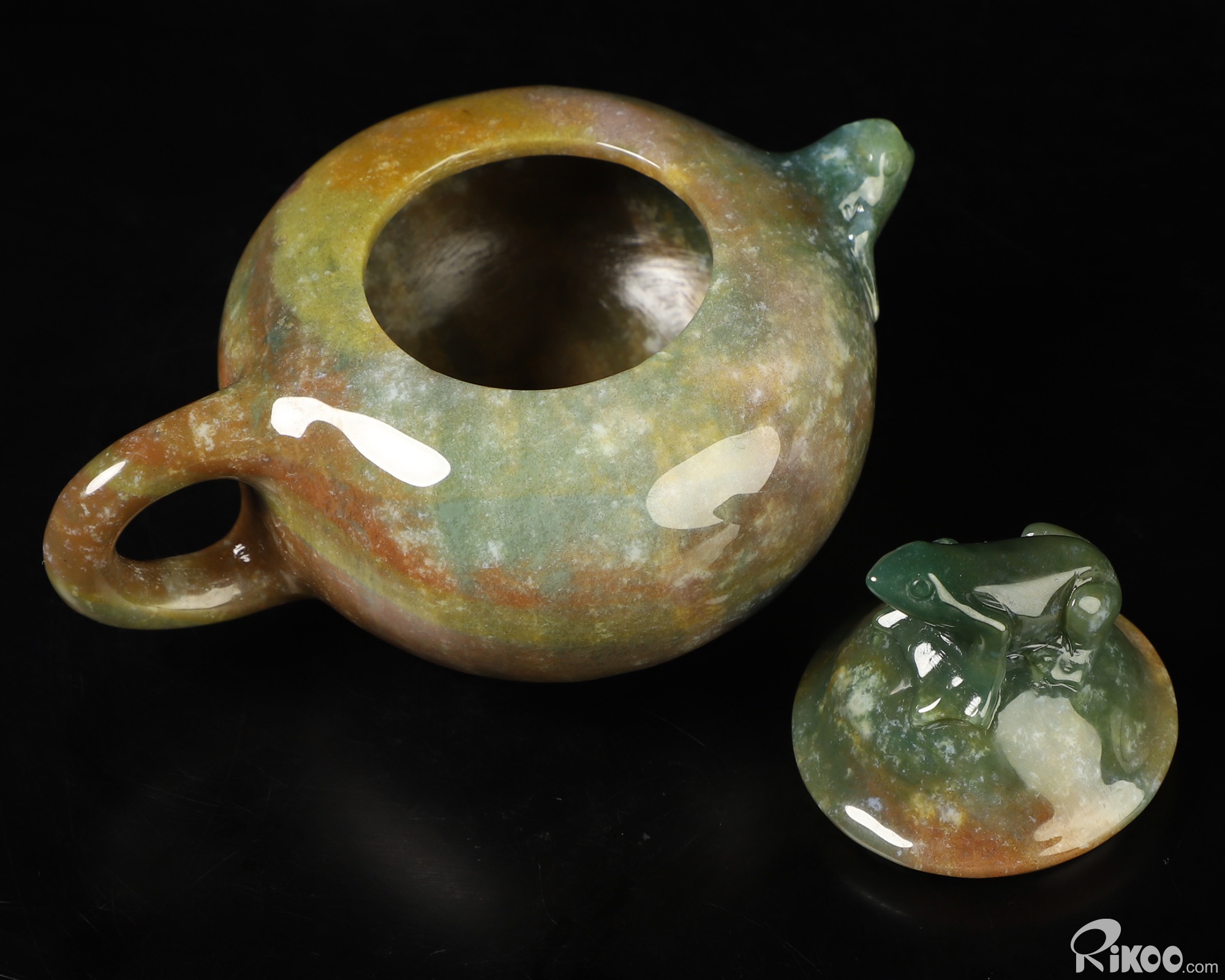 5.1" Indian Agate Hand Carved Crystal Pot and Frog, Crystal Healing