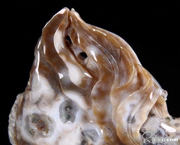 Another exceptional quality of Ocean Jasper is translucency. Many specimens are opaque and still very beautiful while others, when held in front of a strong light source, display what can only be described as another world! When viewed in front of a bright light the translucent, clear, or just foggy background illuminates and displays the contrasting solid perfect circles –the orbs- which then reveal exactly why Ocean Jasper is sometimes called "Fish Eye Jasper". These solid, soft looking spheres appear suspended in the illuminated quartz, and they can make one tempted to reach in and try to touch them!
