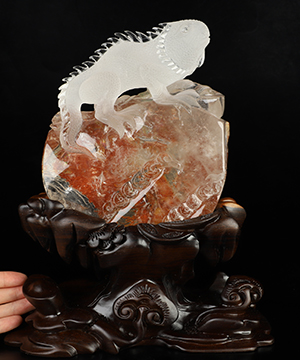 5.1" Quartz Rock Crystal Hand Carved Crystal Toothless Dragon Sculpture, Crystal Healing