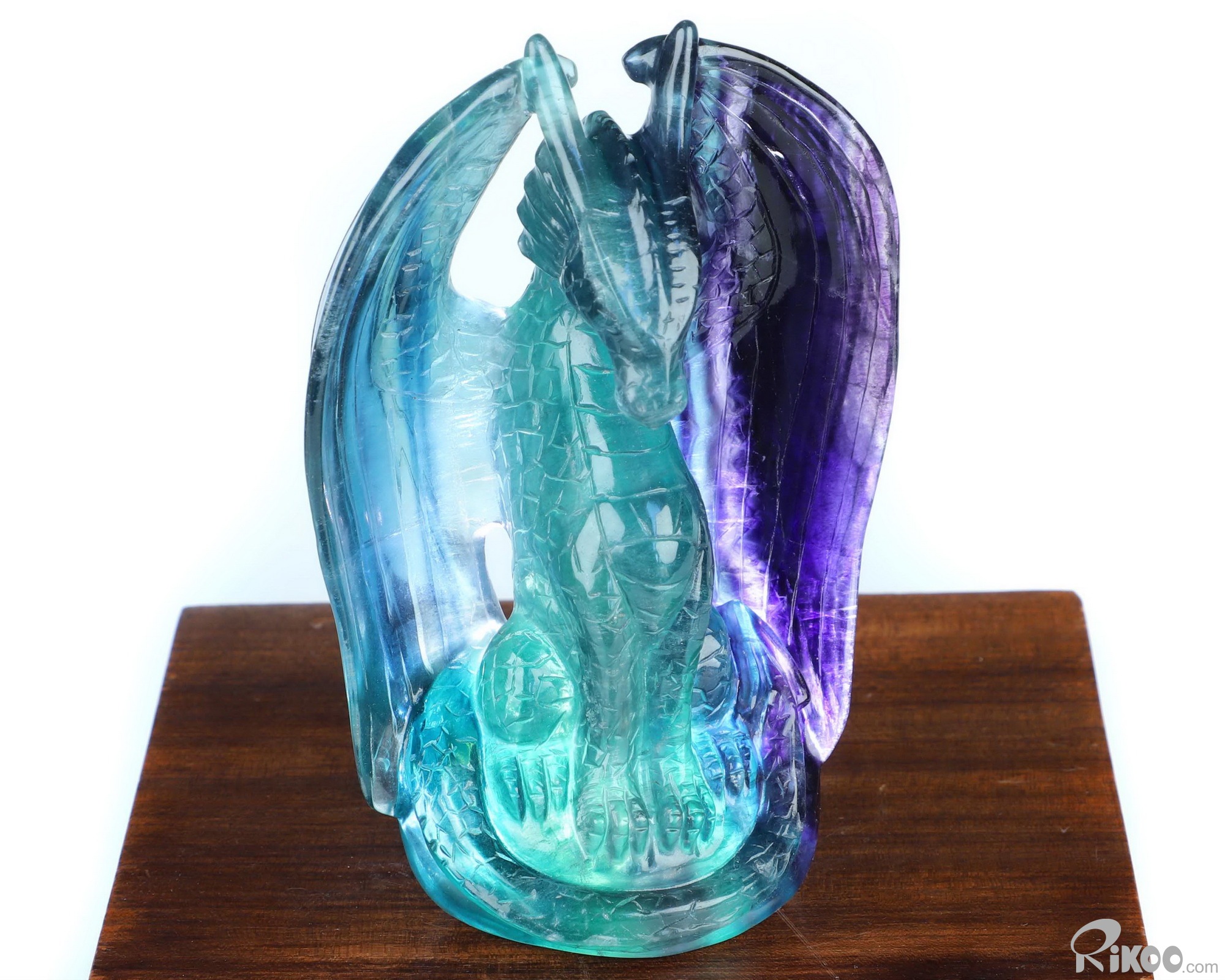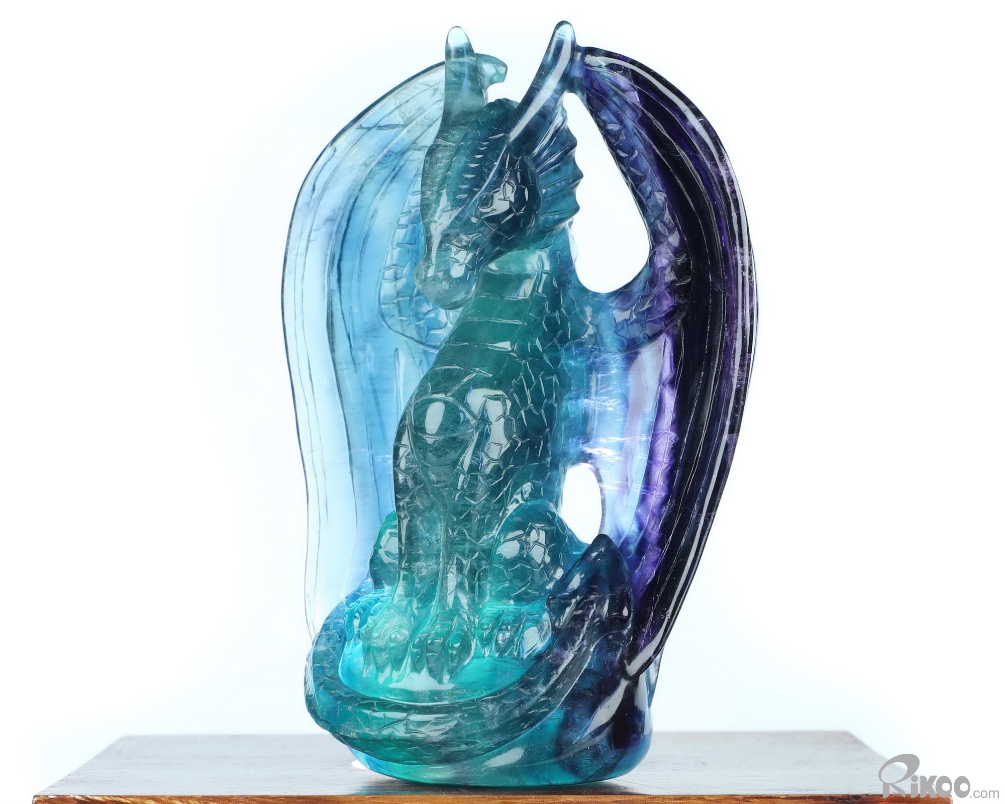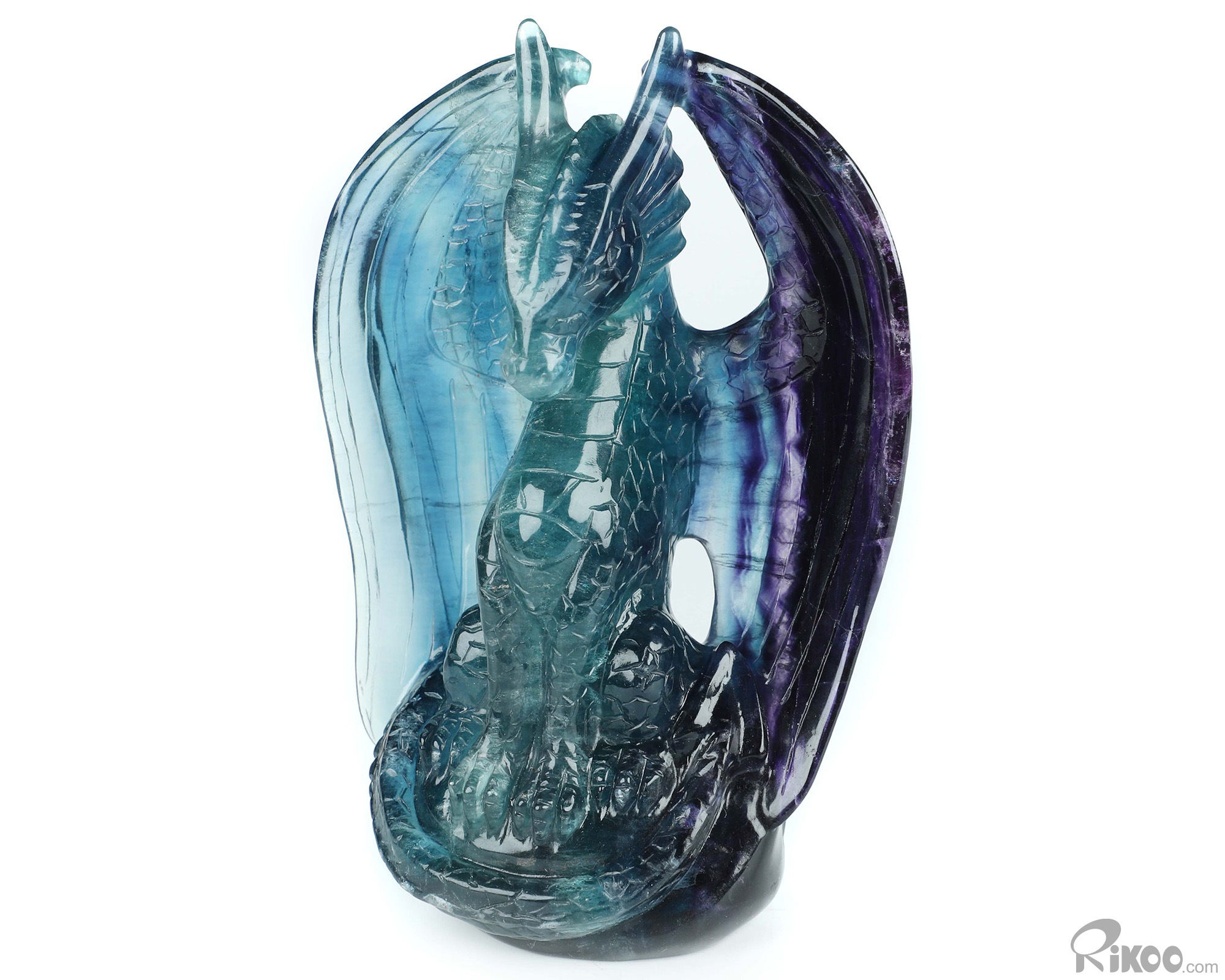 5.1" Top Quality Fluorite Hand Carved Crystal Dragon Sculpture, Crystal Healing