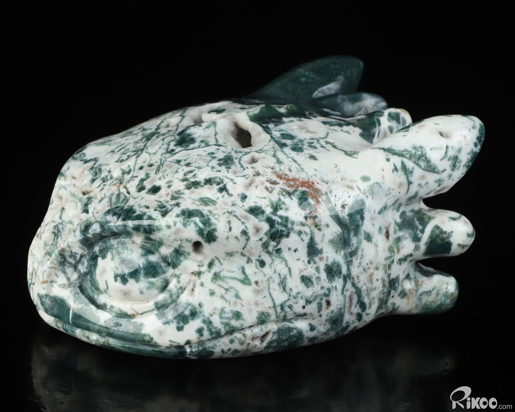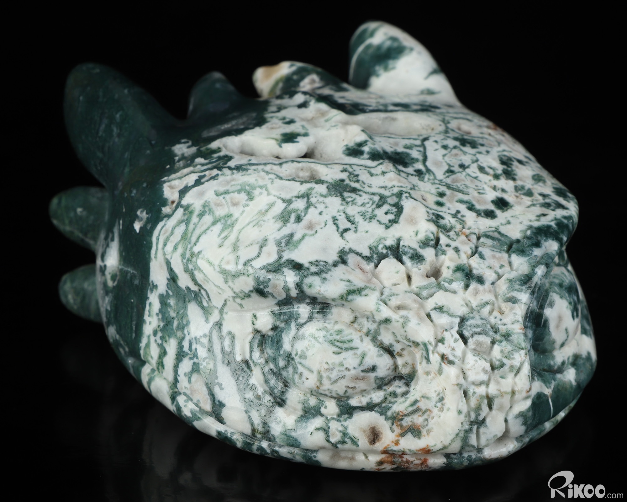 You are looking at a Tree Agate sculpture. The sculpture is 5.1 inches long.