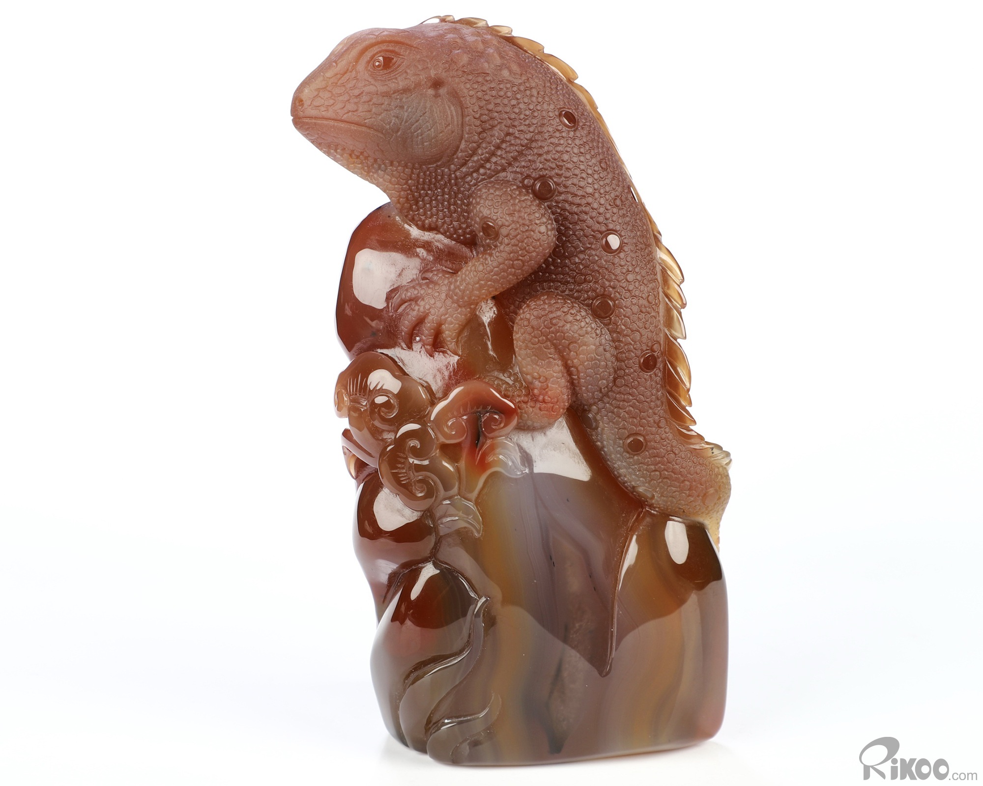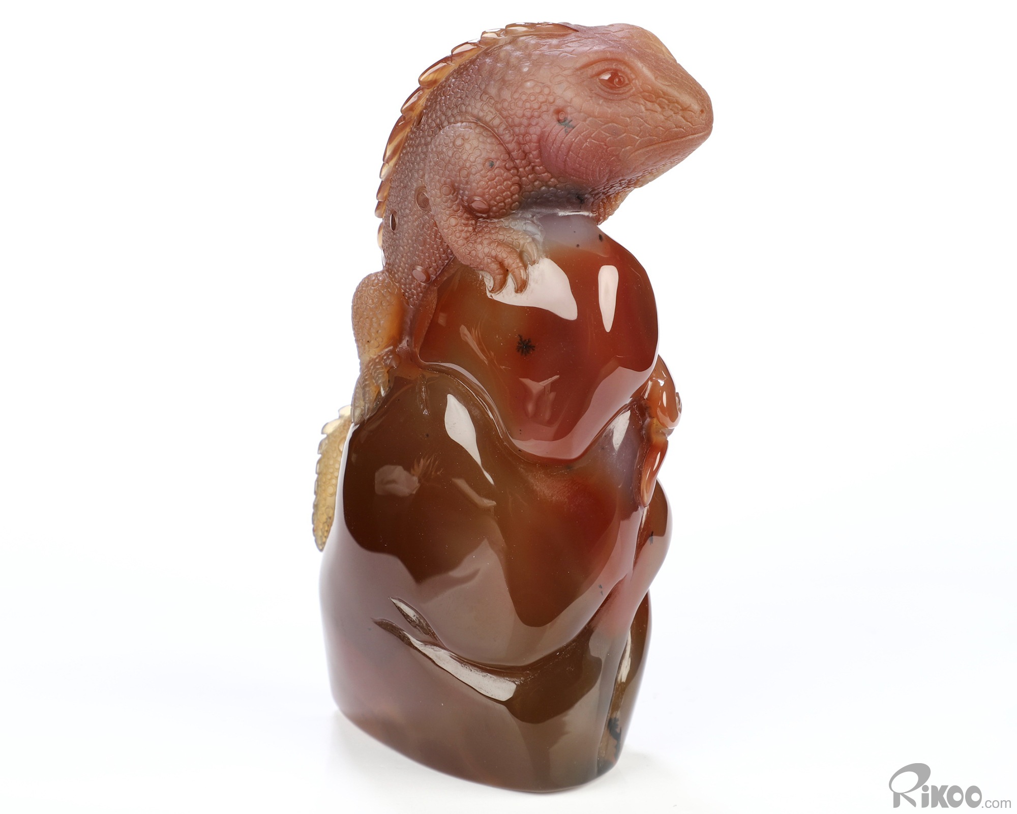 5.2" Premium Brazilian Agate Hand Carved Crystal Lizard Sculpture, Crystal Healing