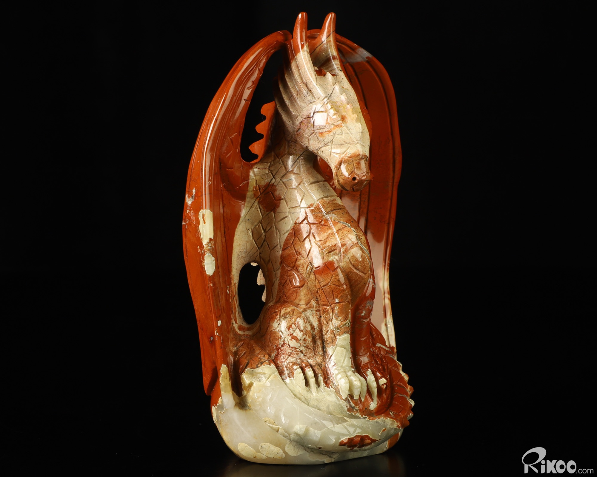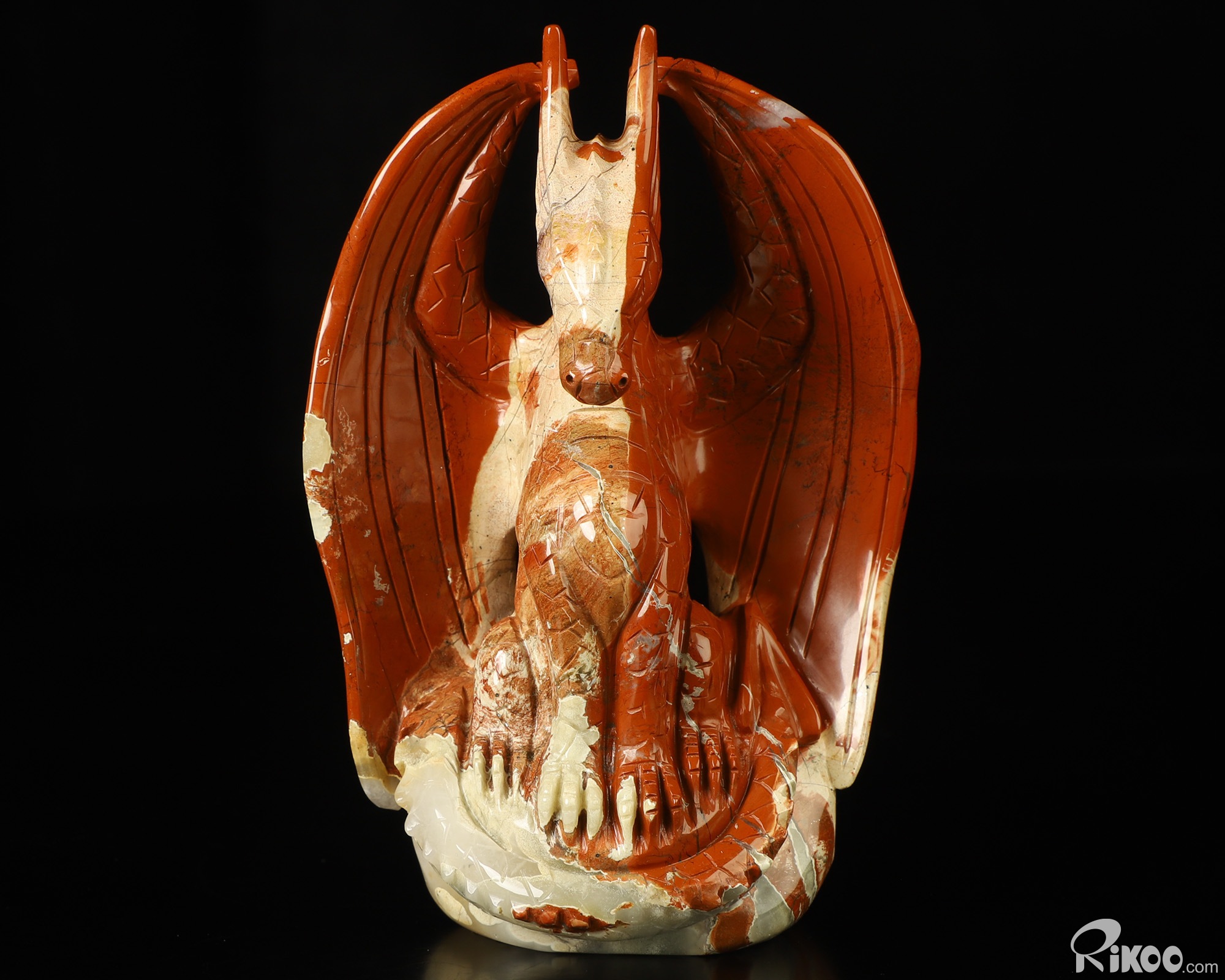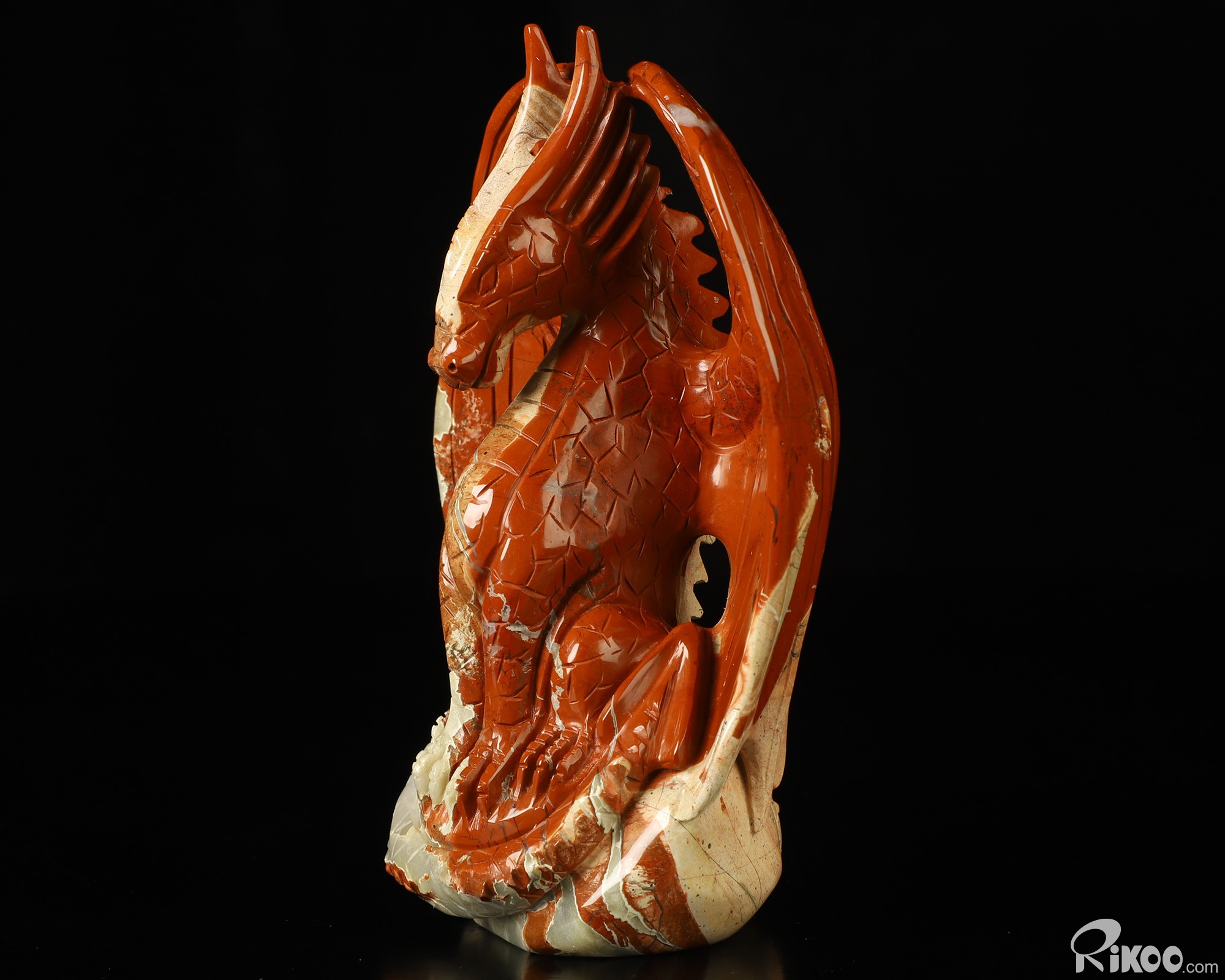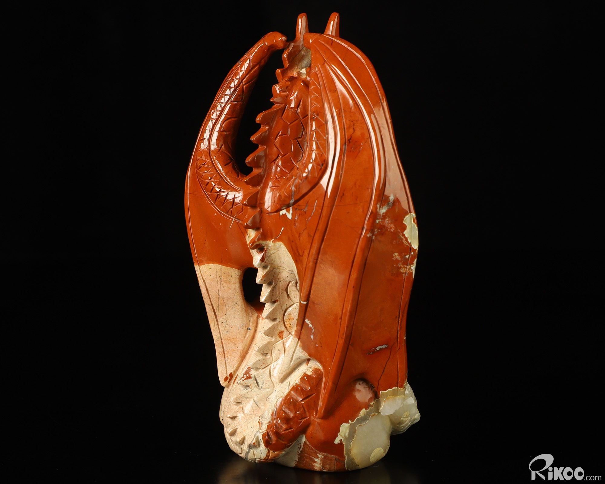 5.2" Red Jasper Hand Carved Crystal Dragon Sculpture, Crystal Healing