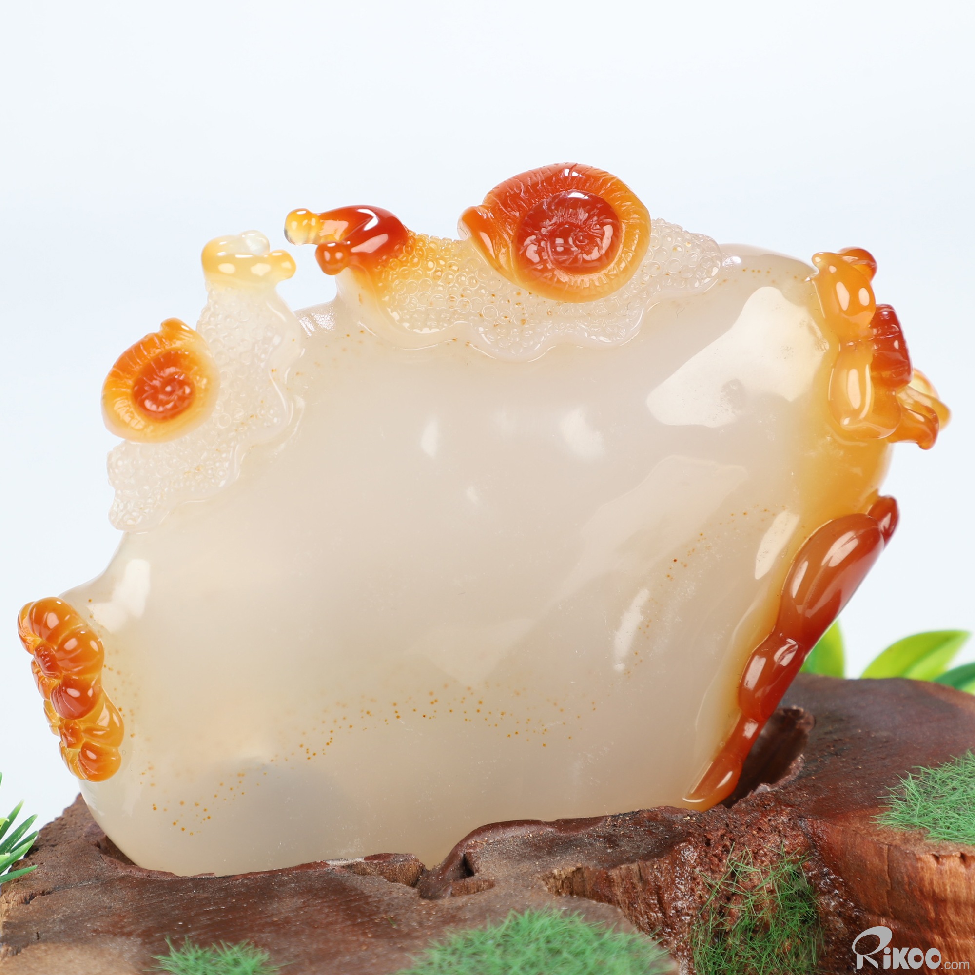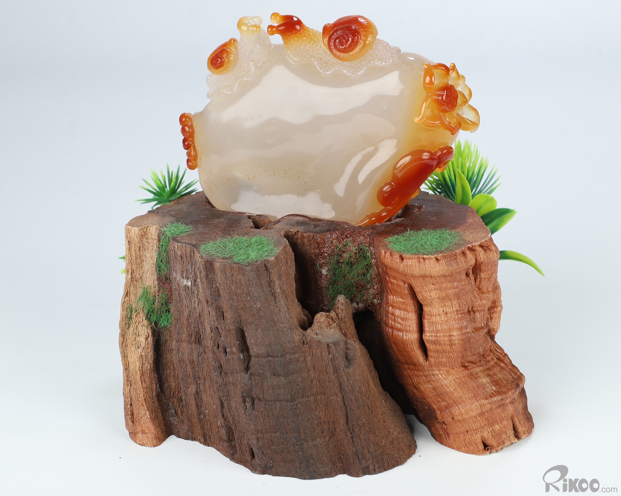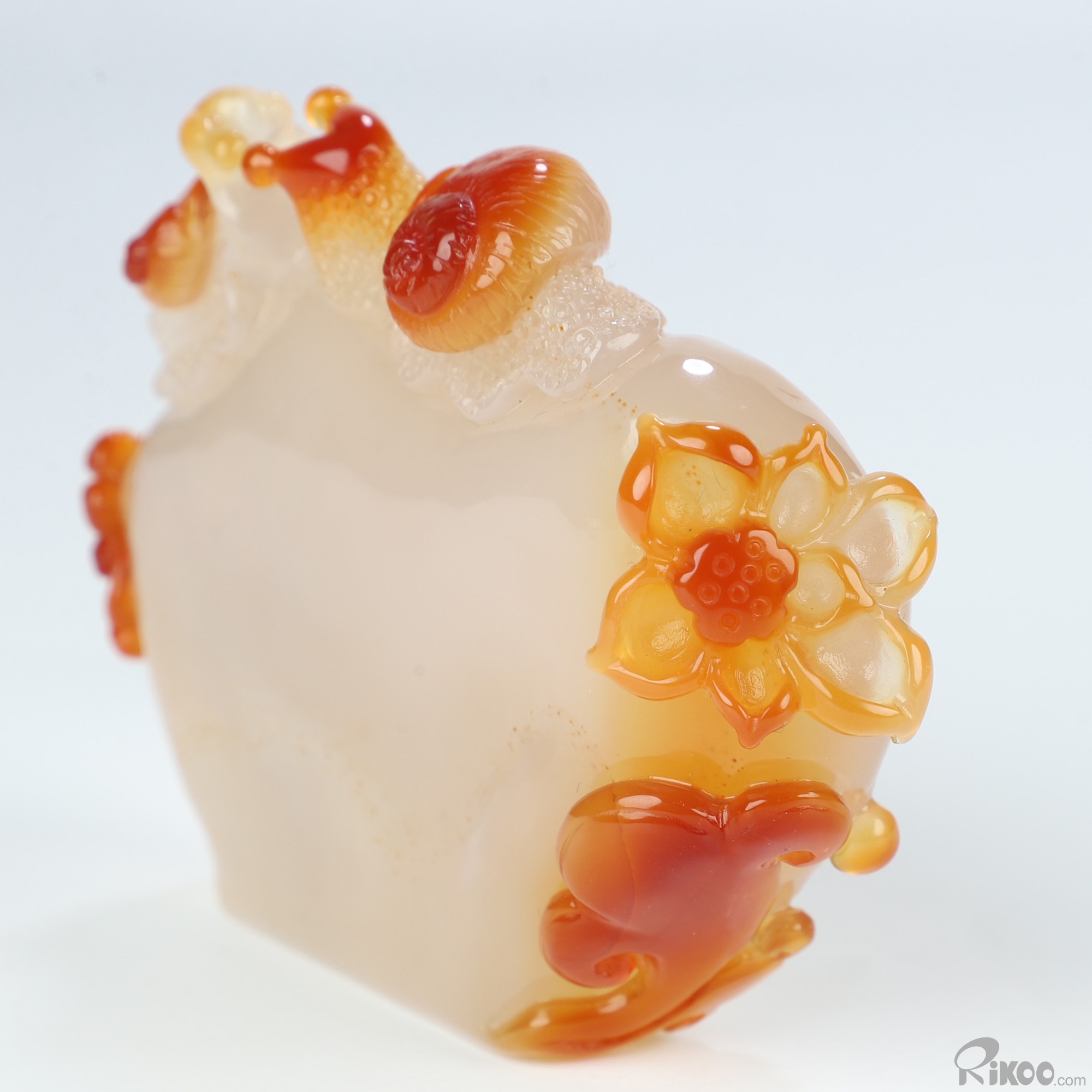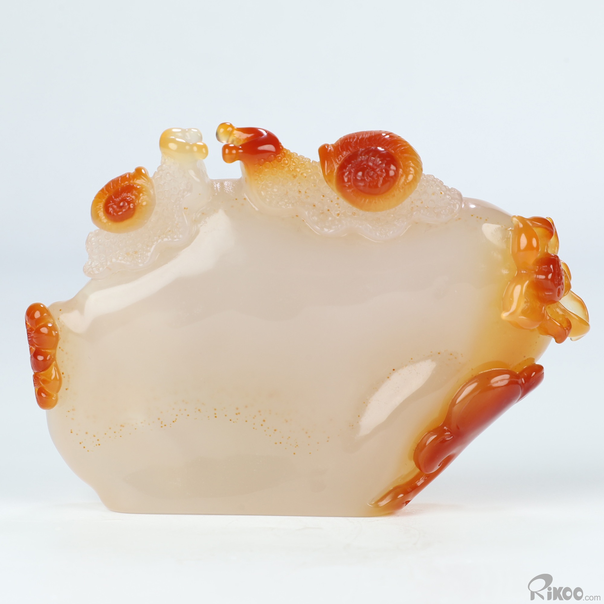 5.3" Carnelian Hand Carved Crystal Plant and Snail Sculpture, Crystal Healing