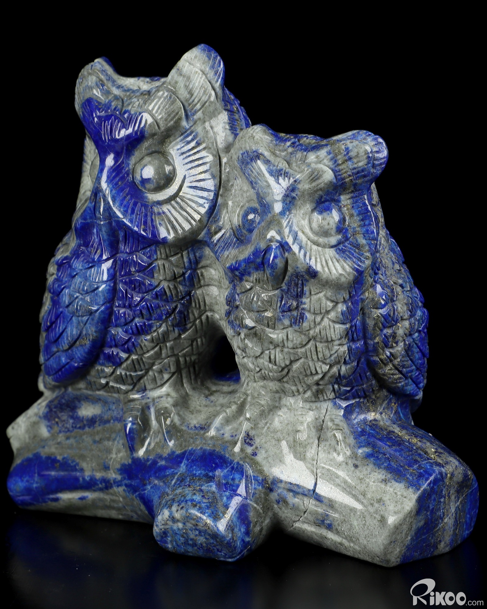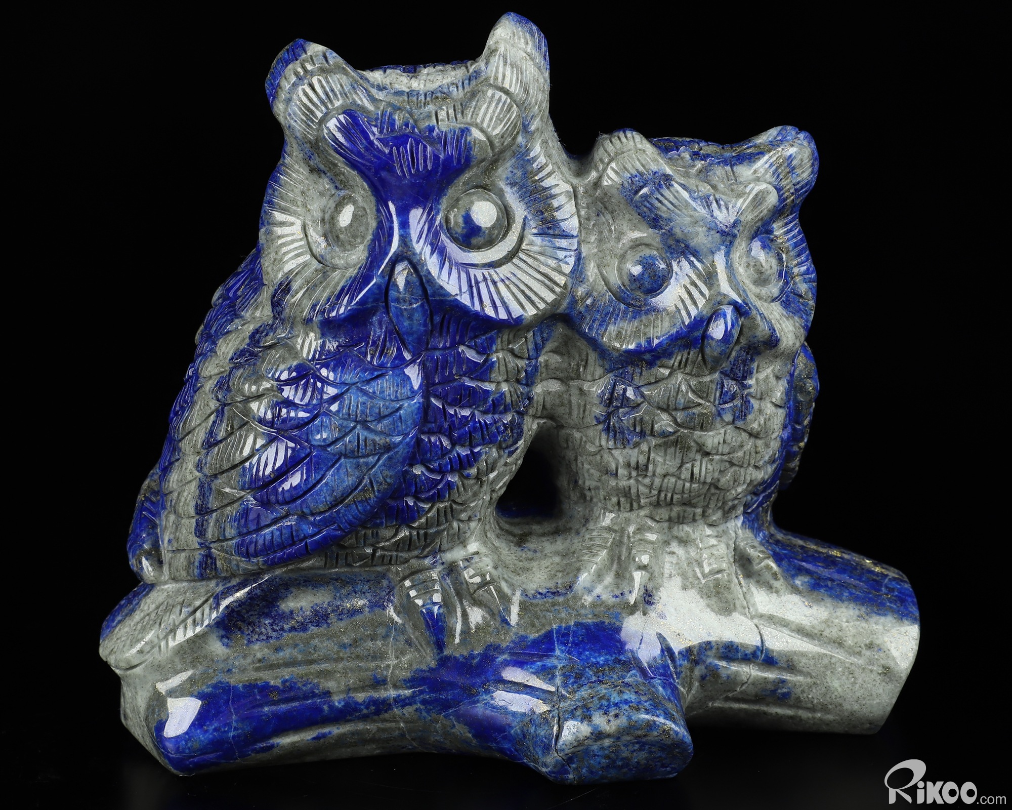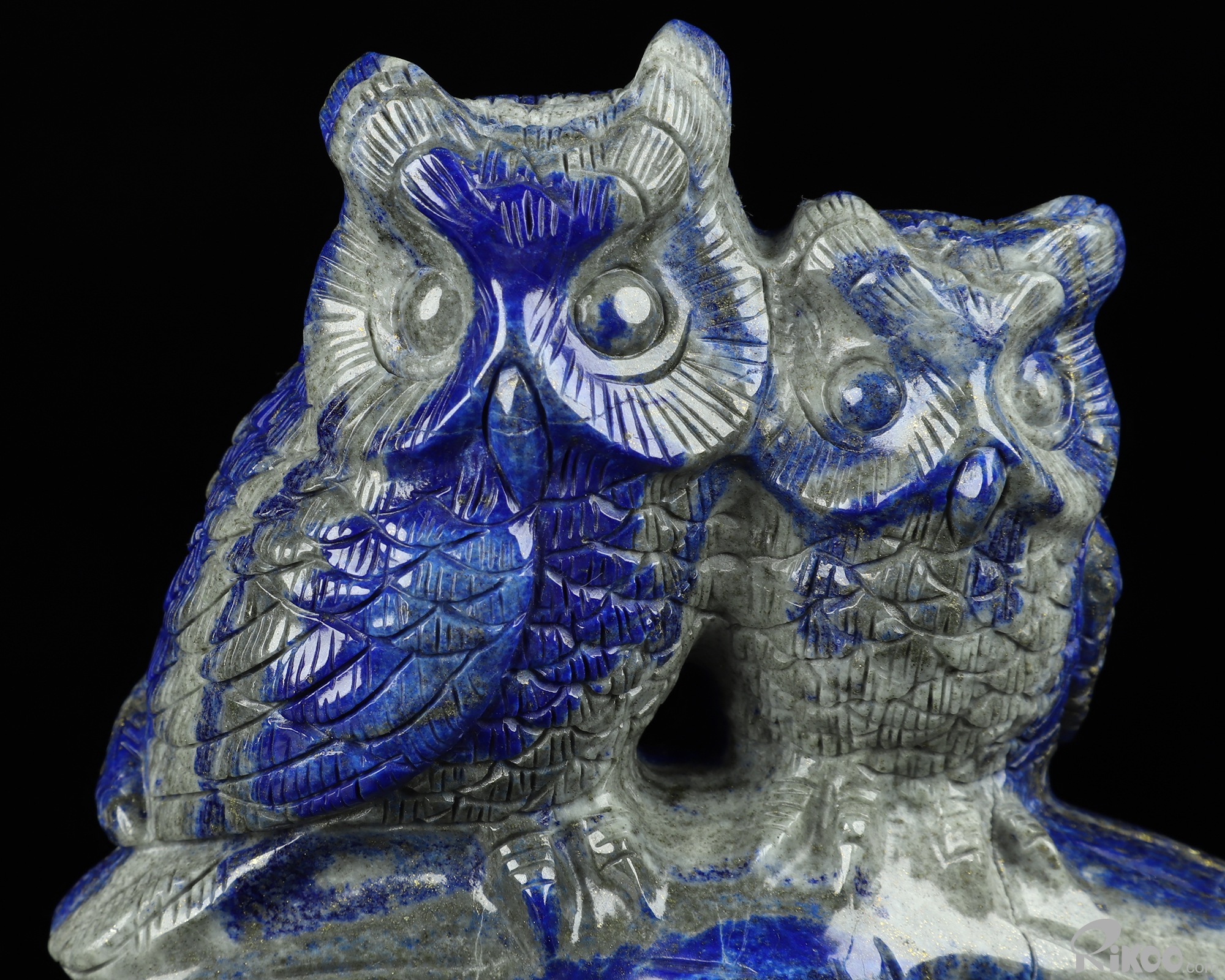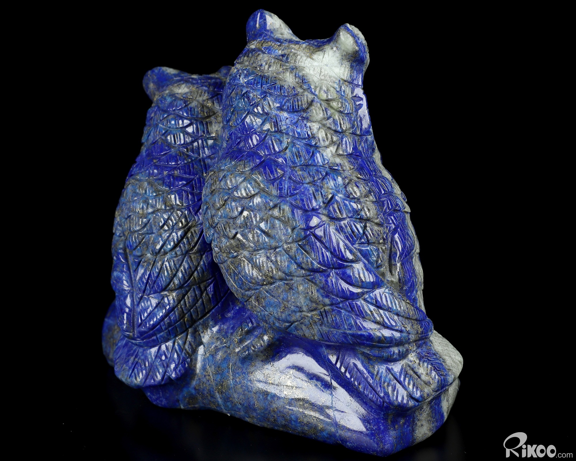 5.3" Lapis Lazuli Carved Owls Crystal Owl Sculpture, Realistic, Crystal Healing