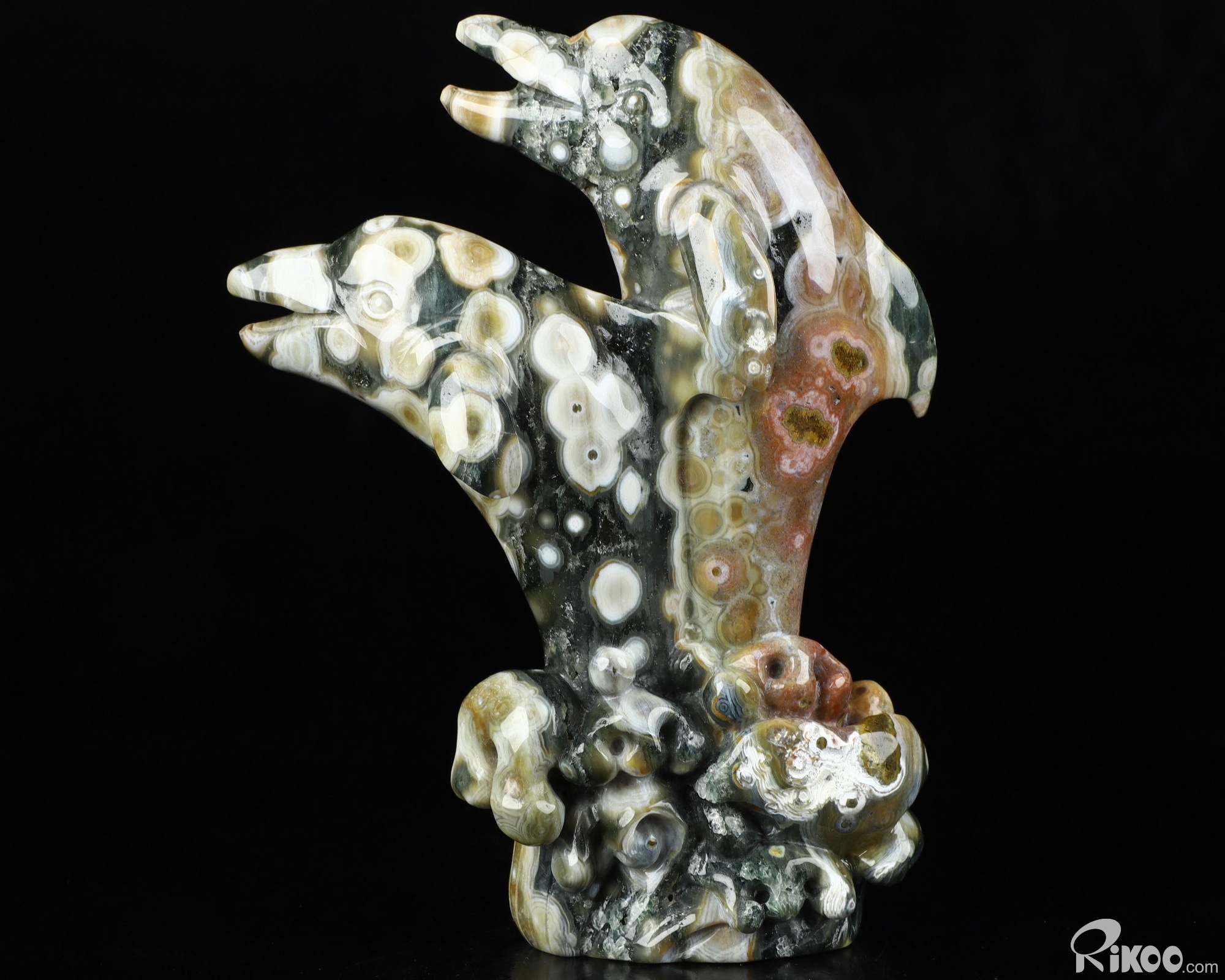 5.3" Ocean Jasper Carved Dolphins Crystal Dolphin, Realistic, Crystal Healing