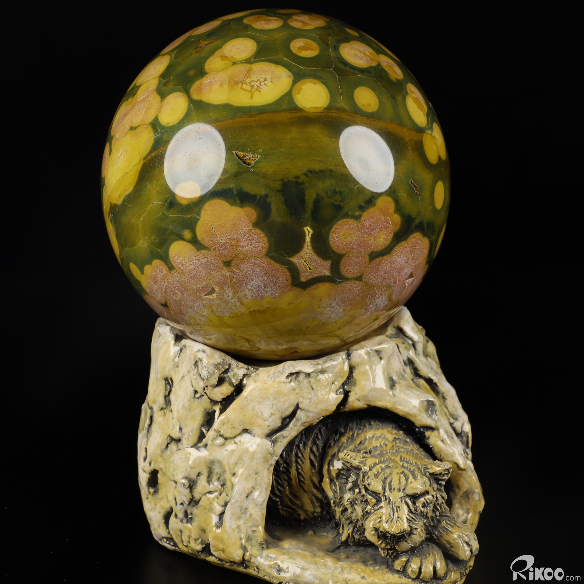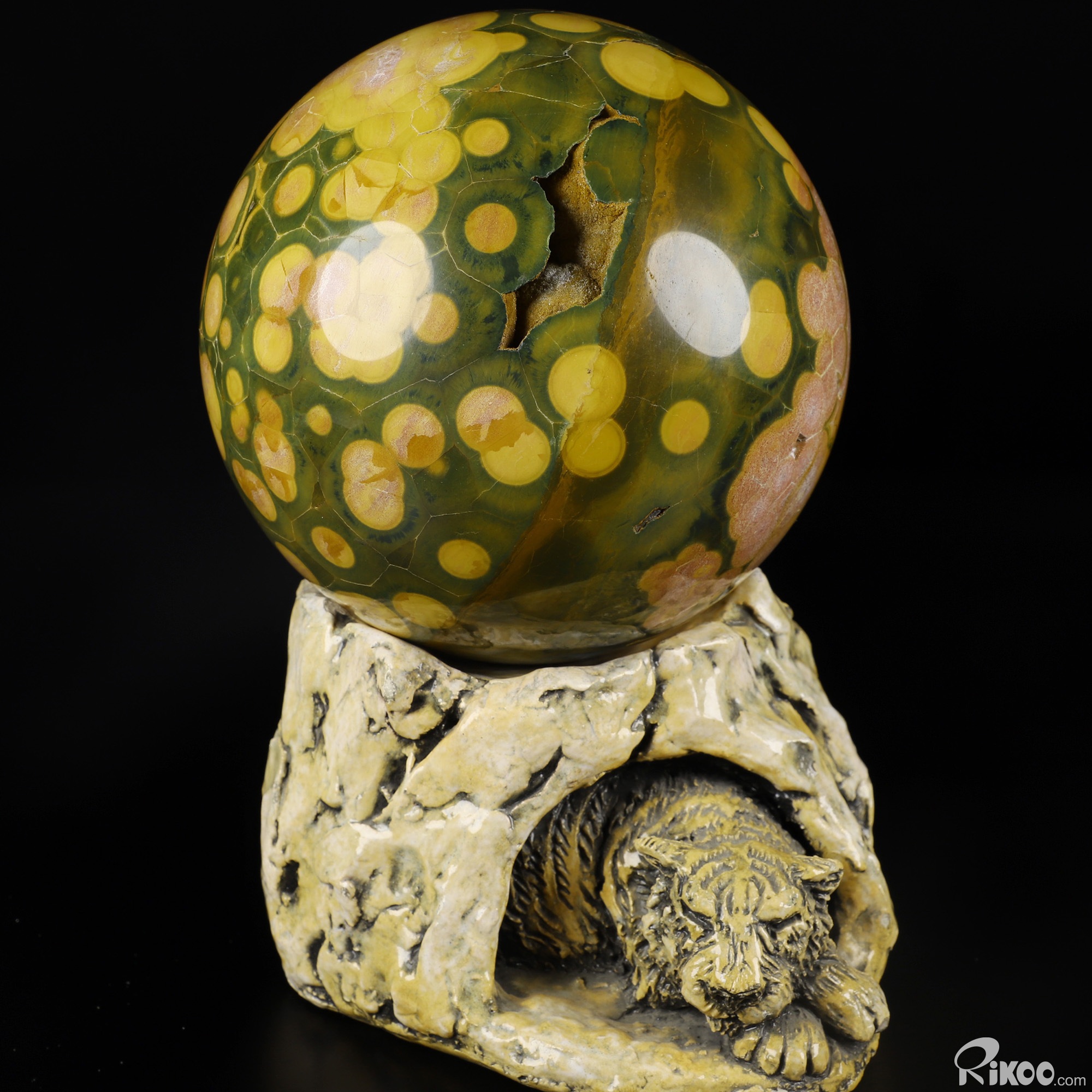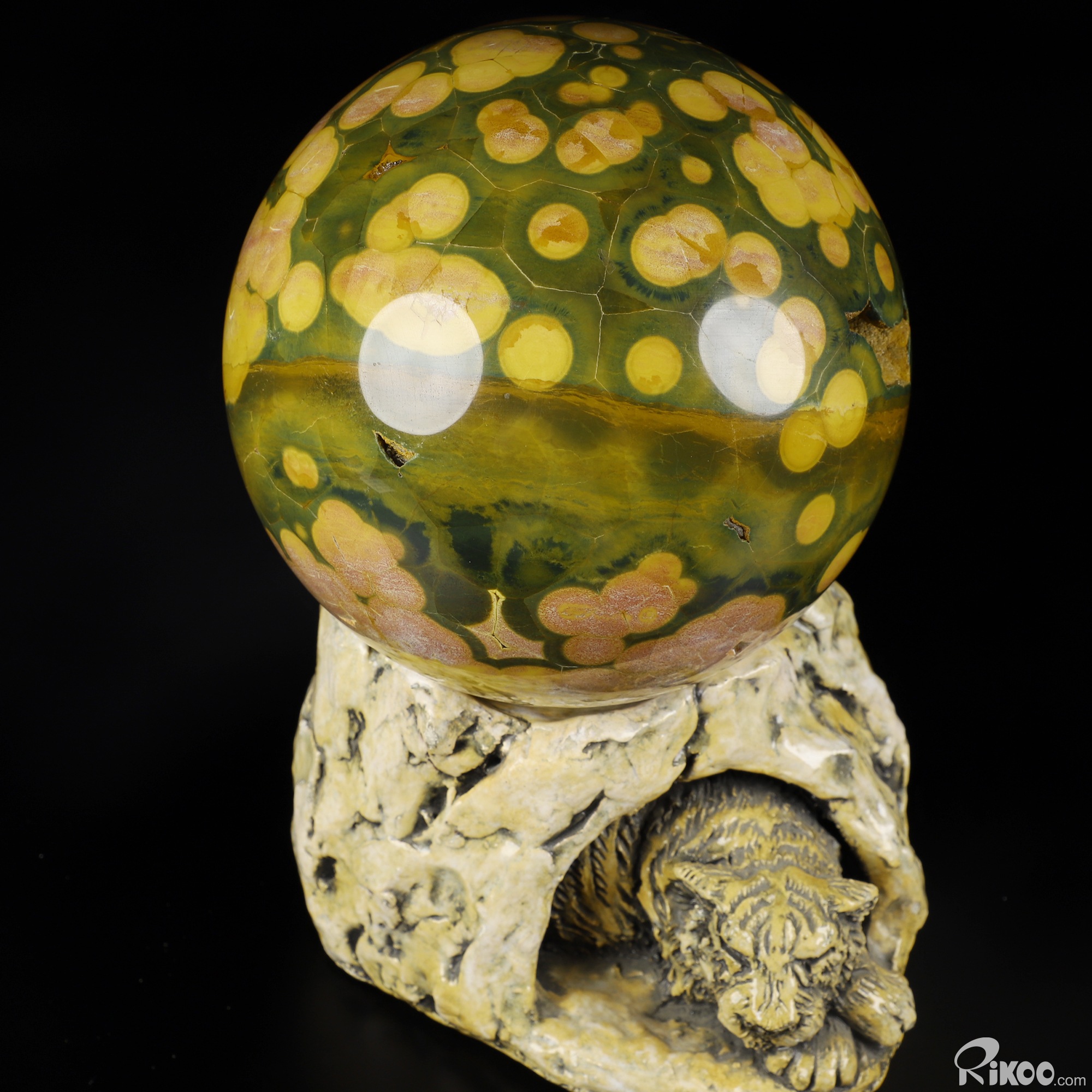 5.3" Ocean Jasper Hand Carved Crystal Ball/Sphere, Crystal Healing