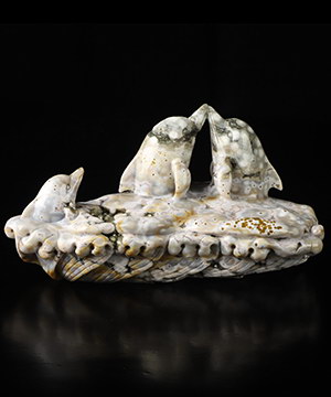 You are looking at a Ocean Jasper sculpture. The sculpture is 5.3 inches long.