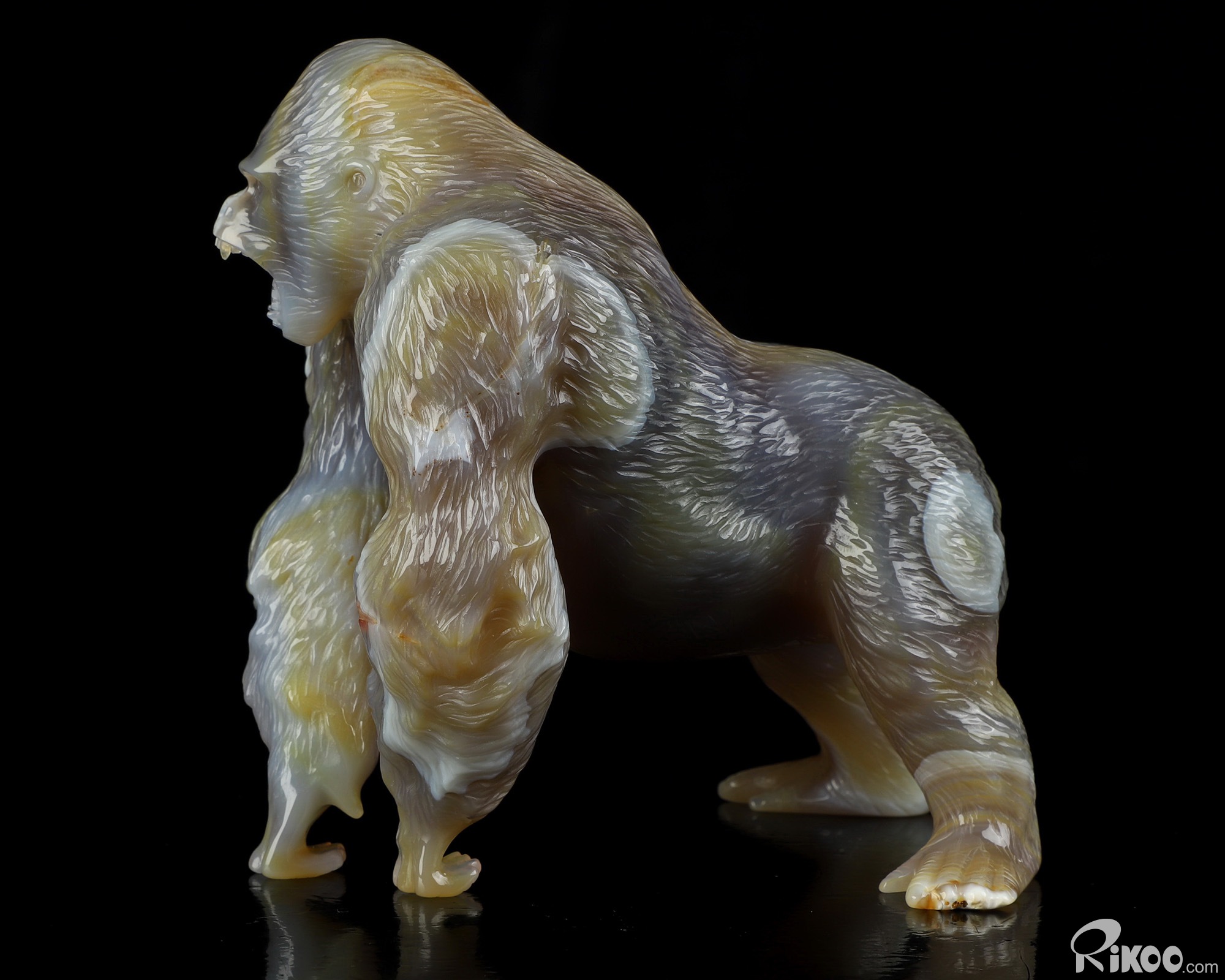 5.3" Premium Brazilian Agate Hand Carved Crystal Gorilla Sculpture, Crystal Healing