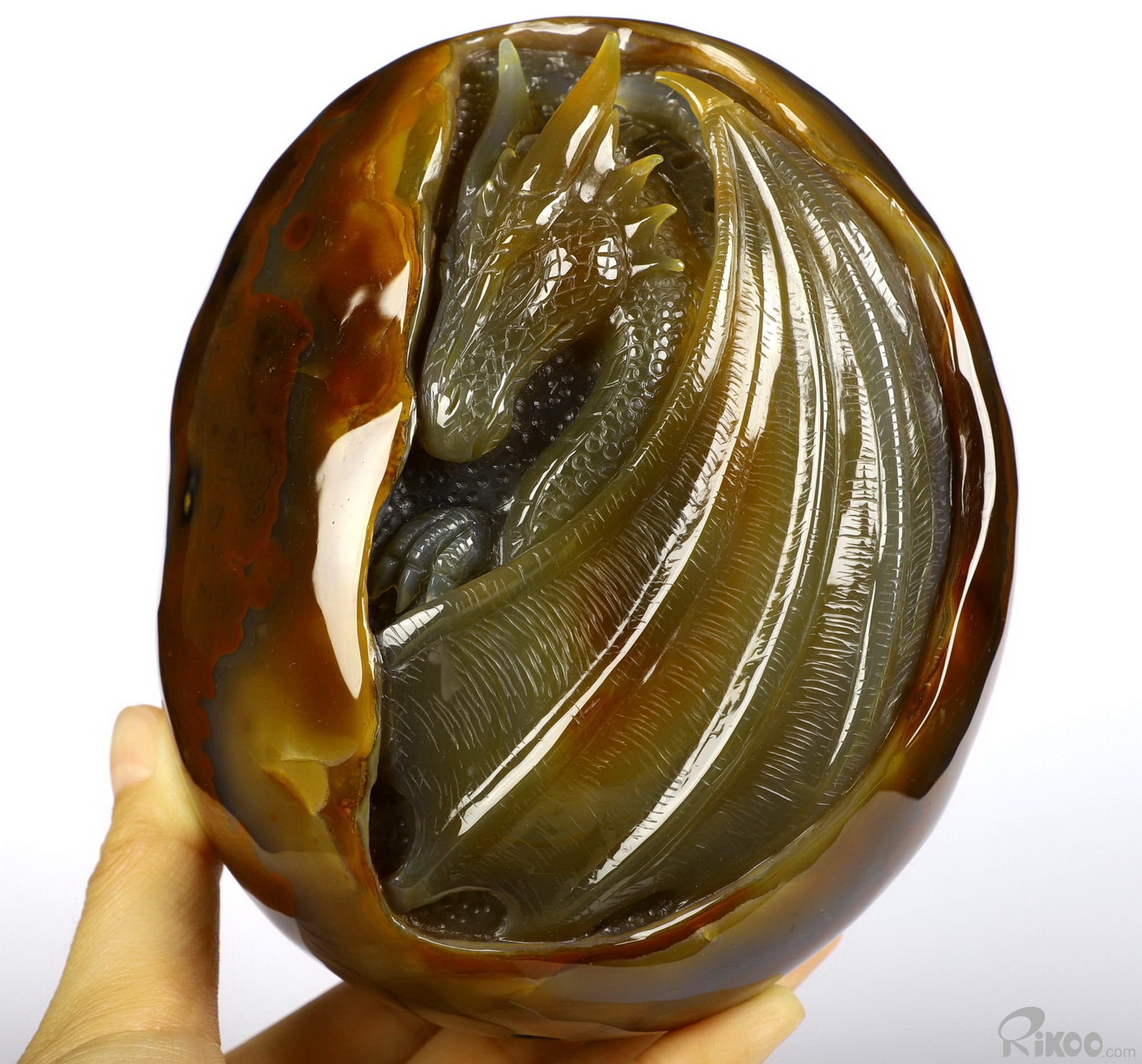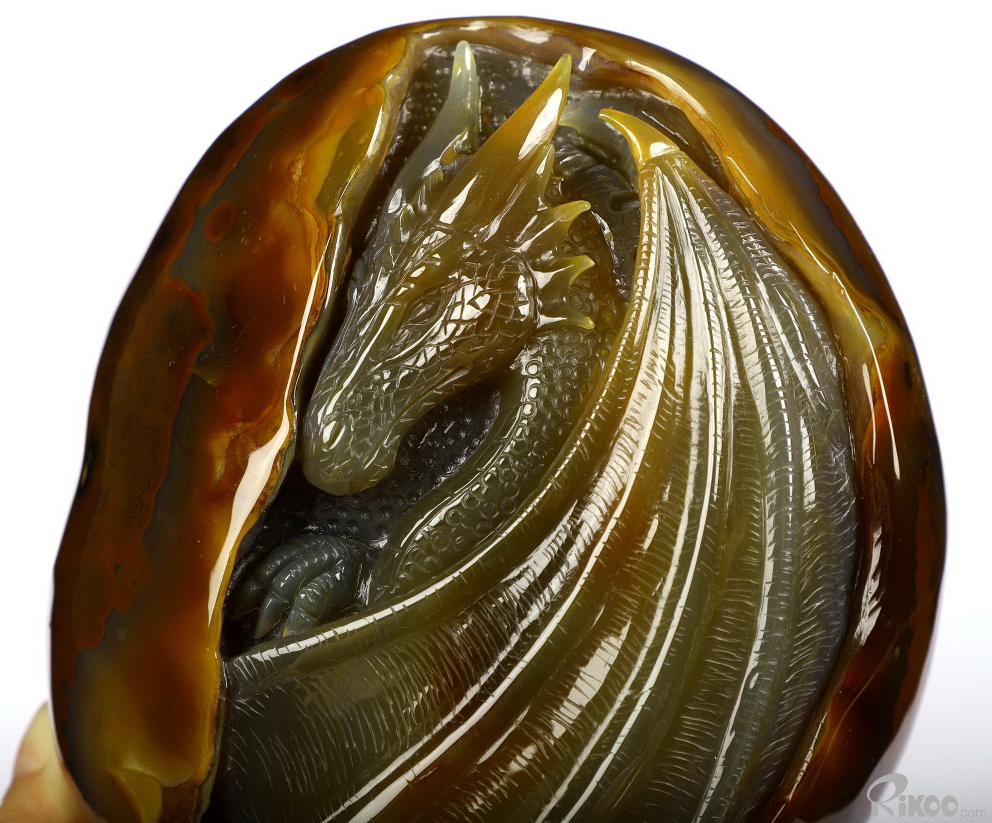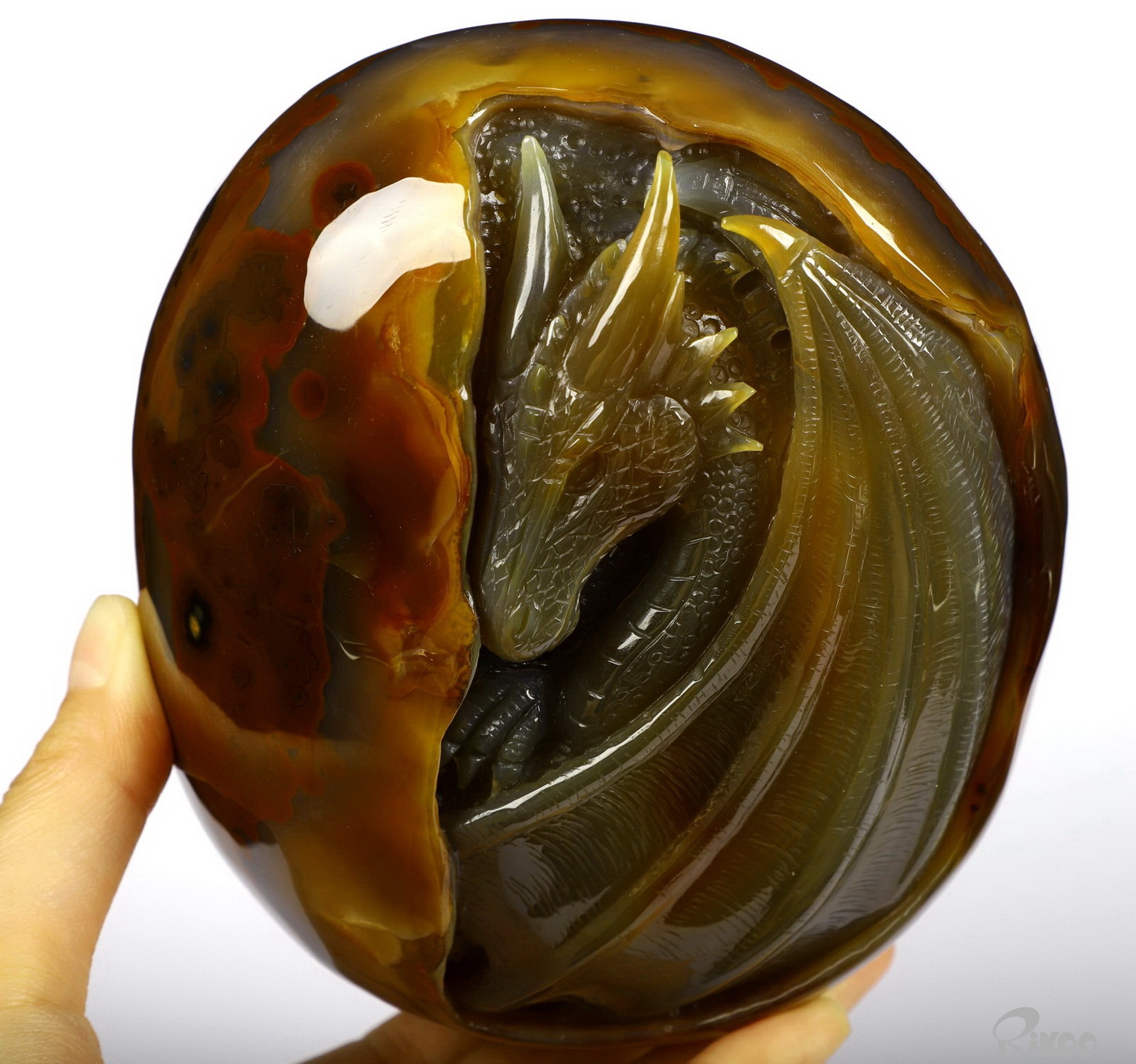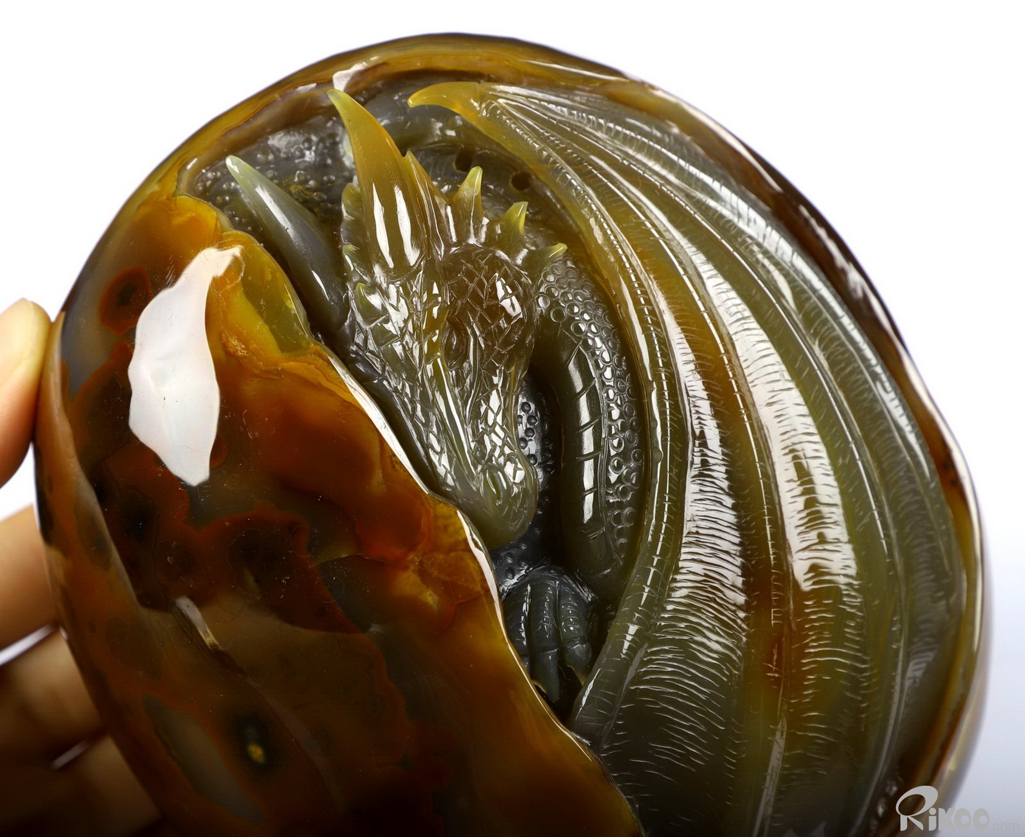 AMAZING 5.4" Agate Carved Crystal Dragon Sculpture, Crystal Healing