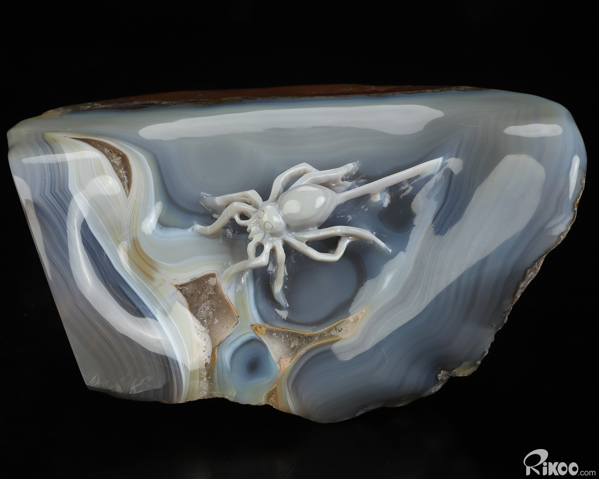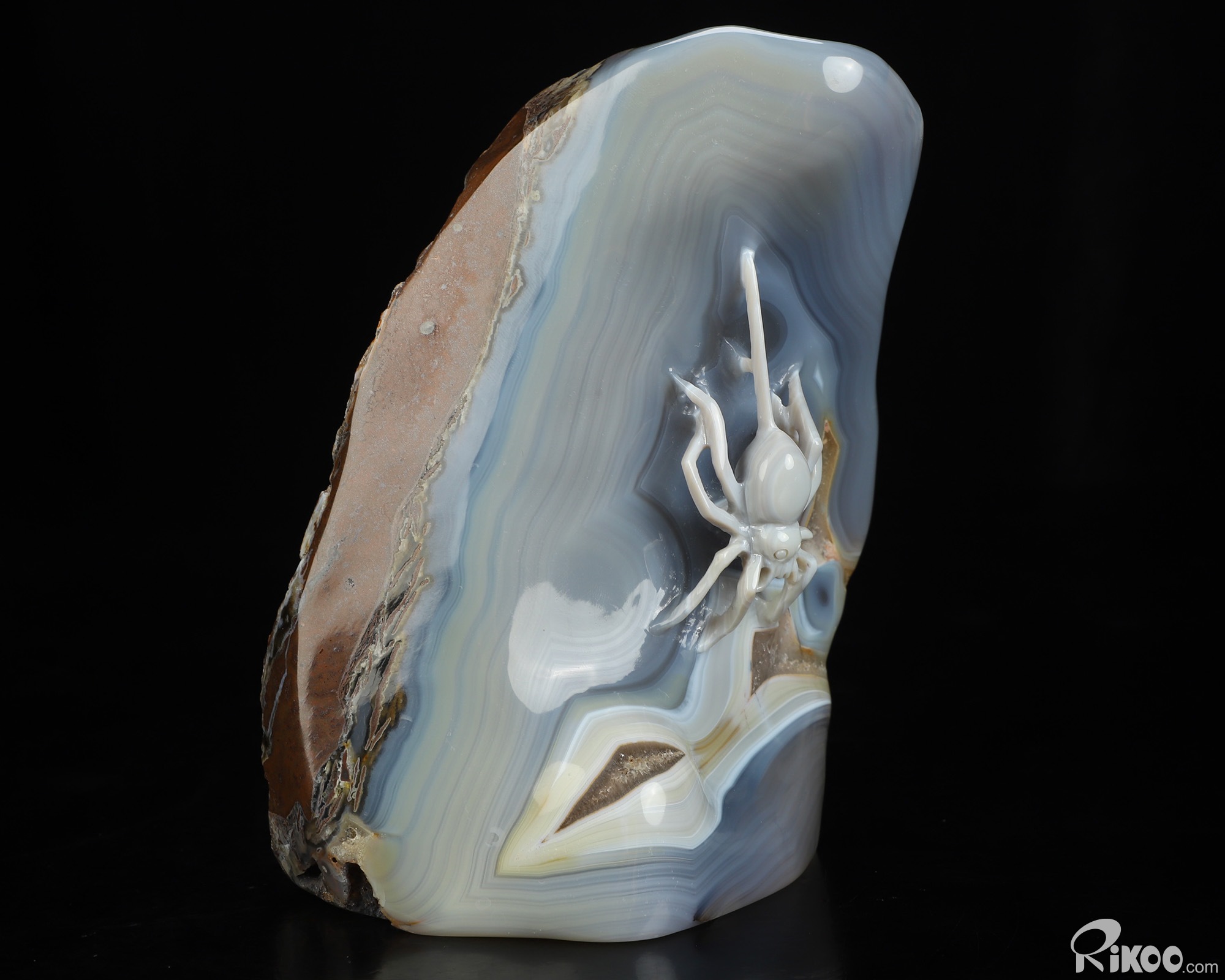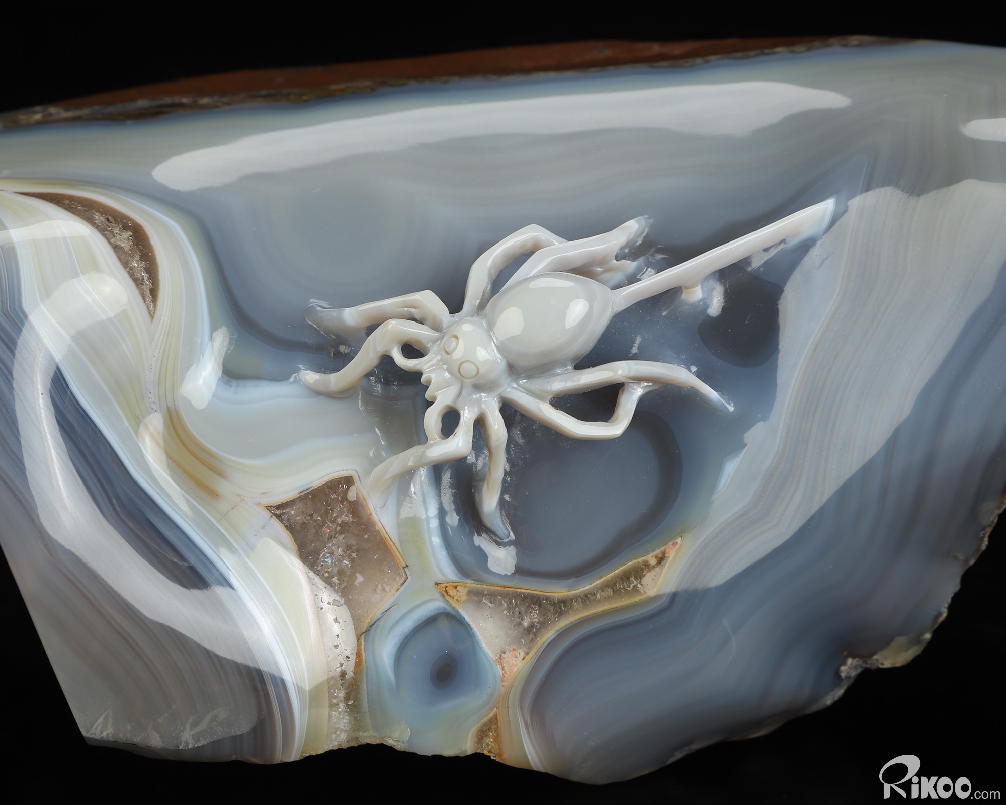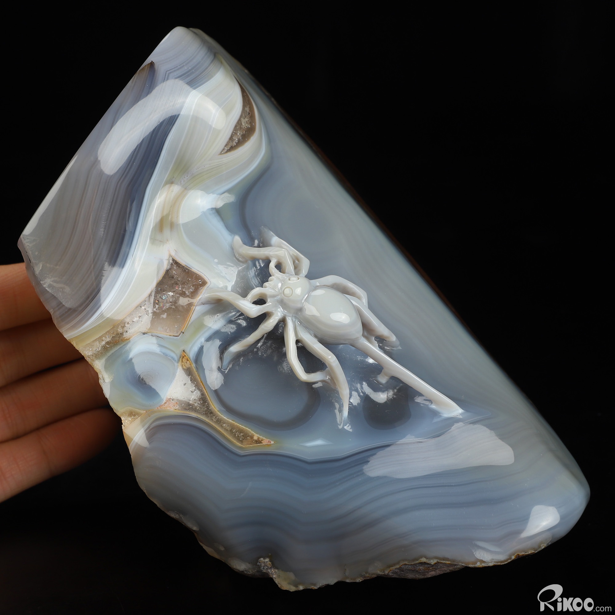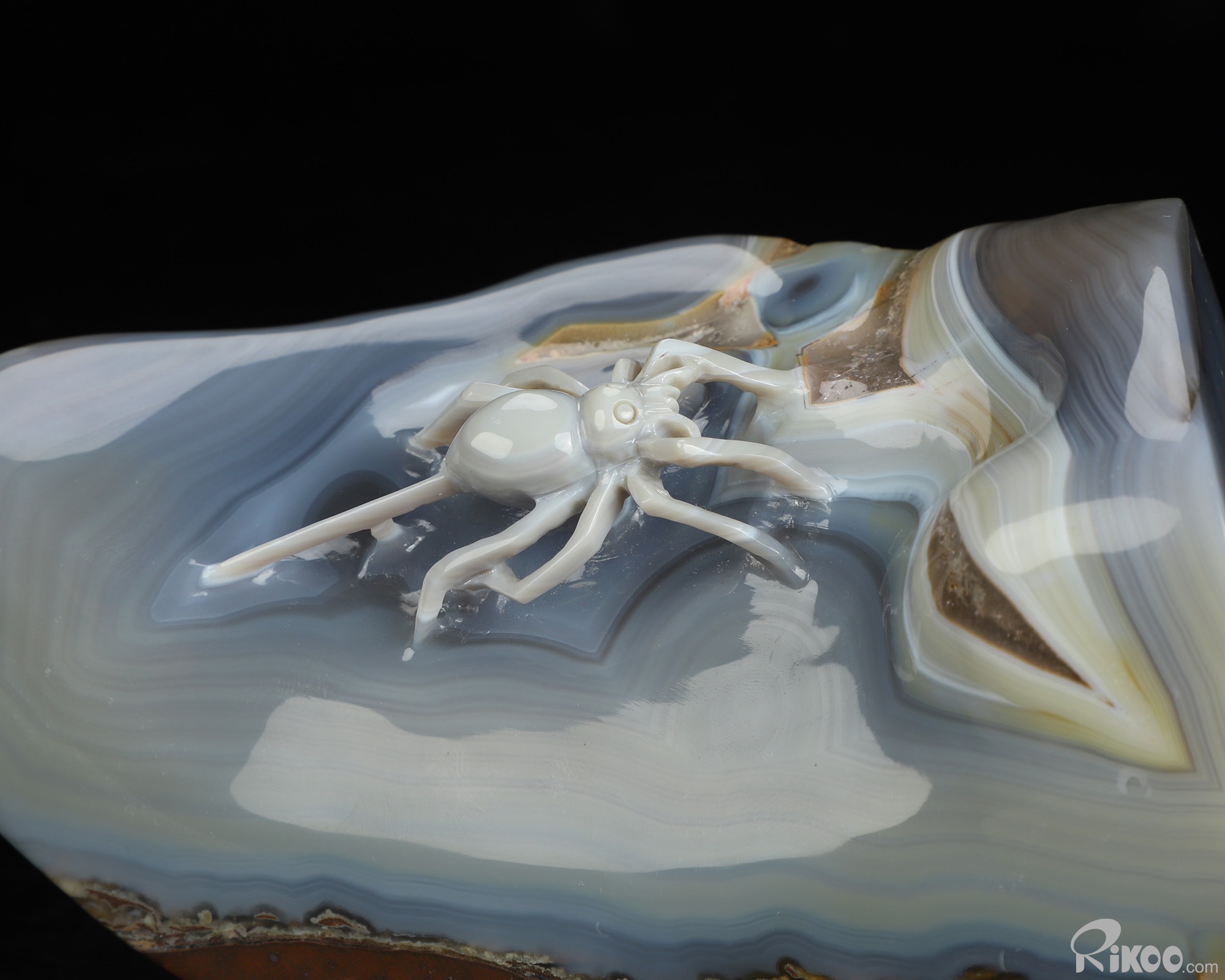 5.4" Banded Agate Hand Carved Crystal Spider Sculpture, Crystal Healing