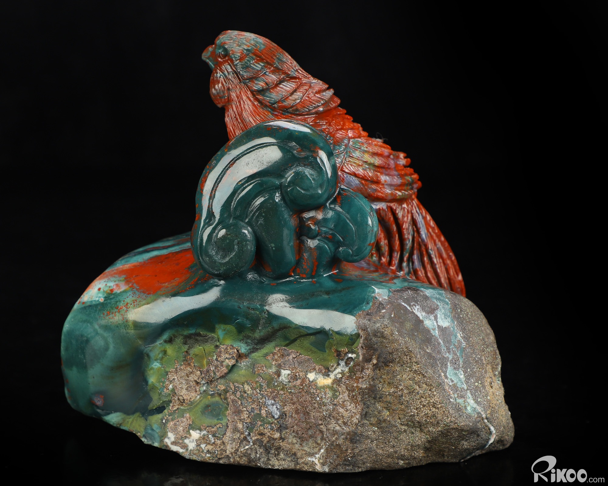 5.4" Bloodstone Hand Carved Crystal Birds Sculpture, Crystal Healing
