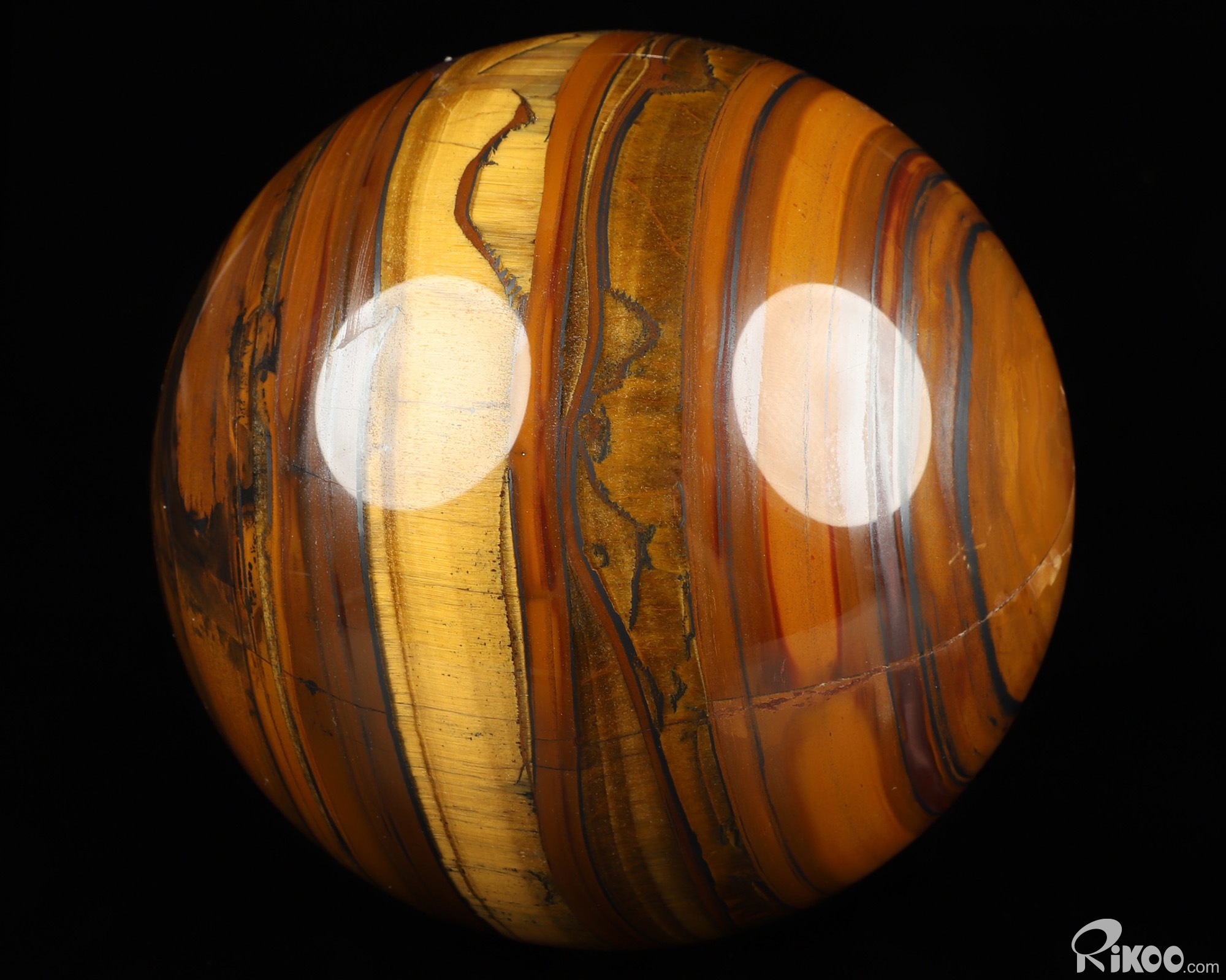 You are looking at a Tiger Iron Eye ball. The ball is 5.4 inches long from front to back.