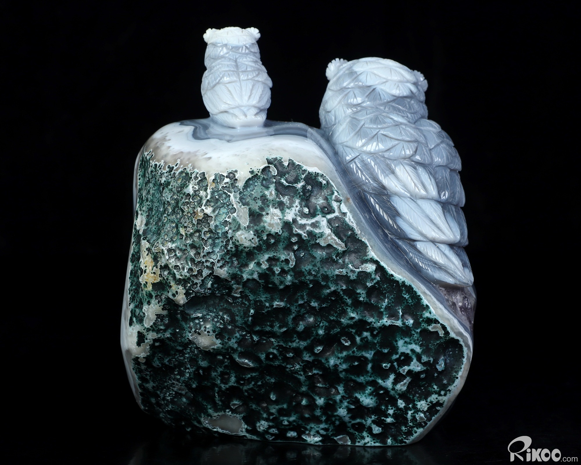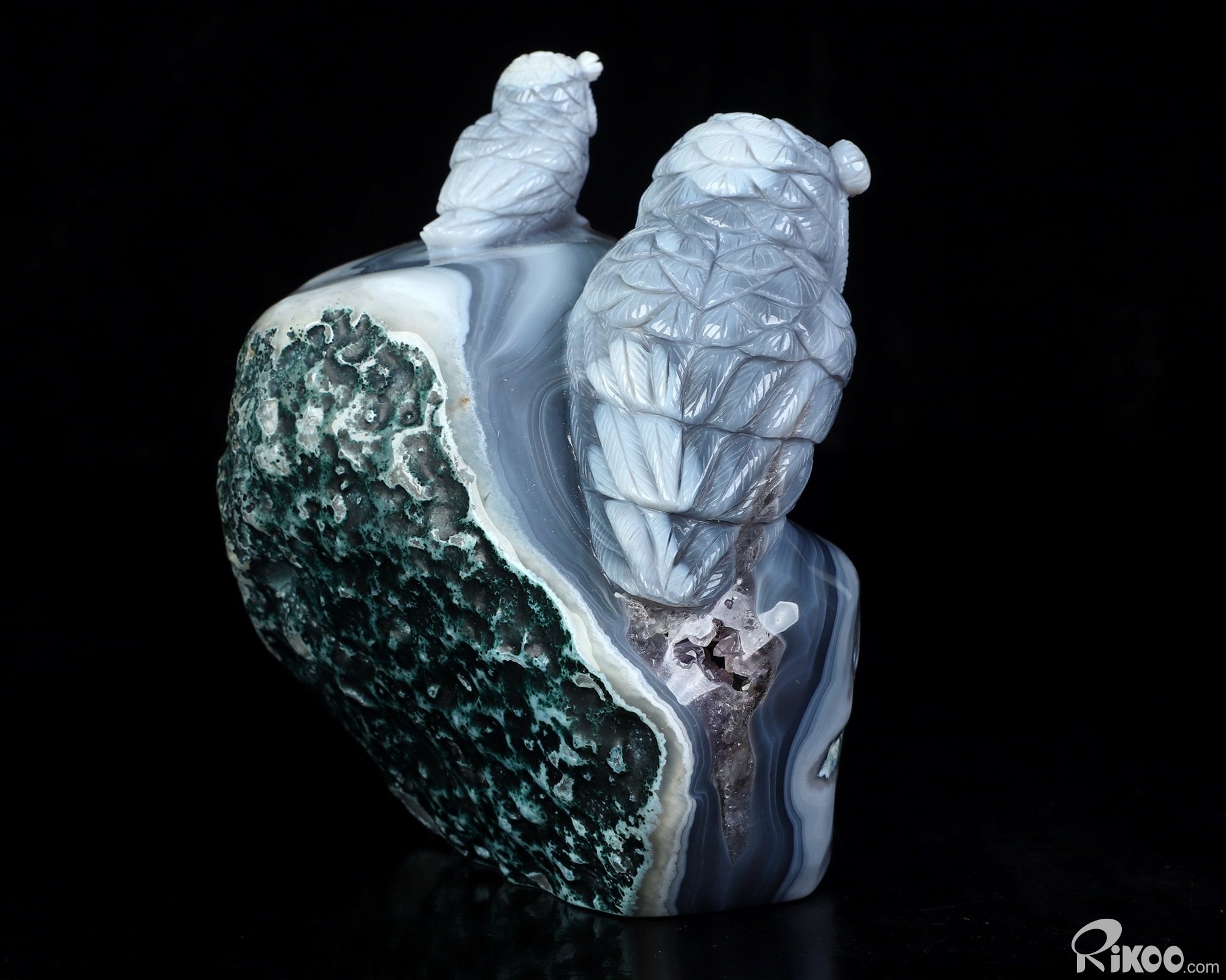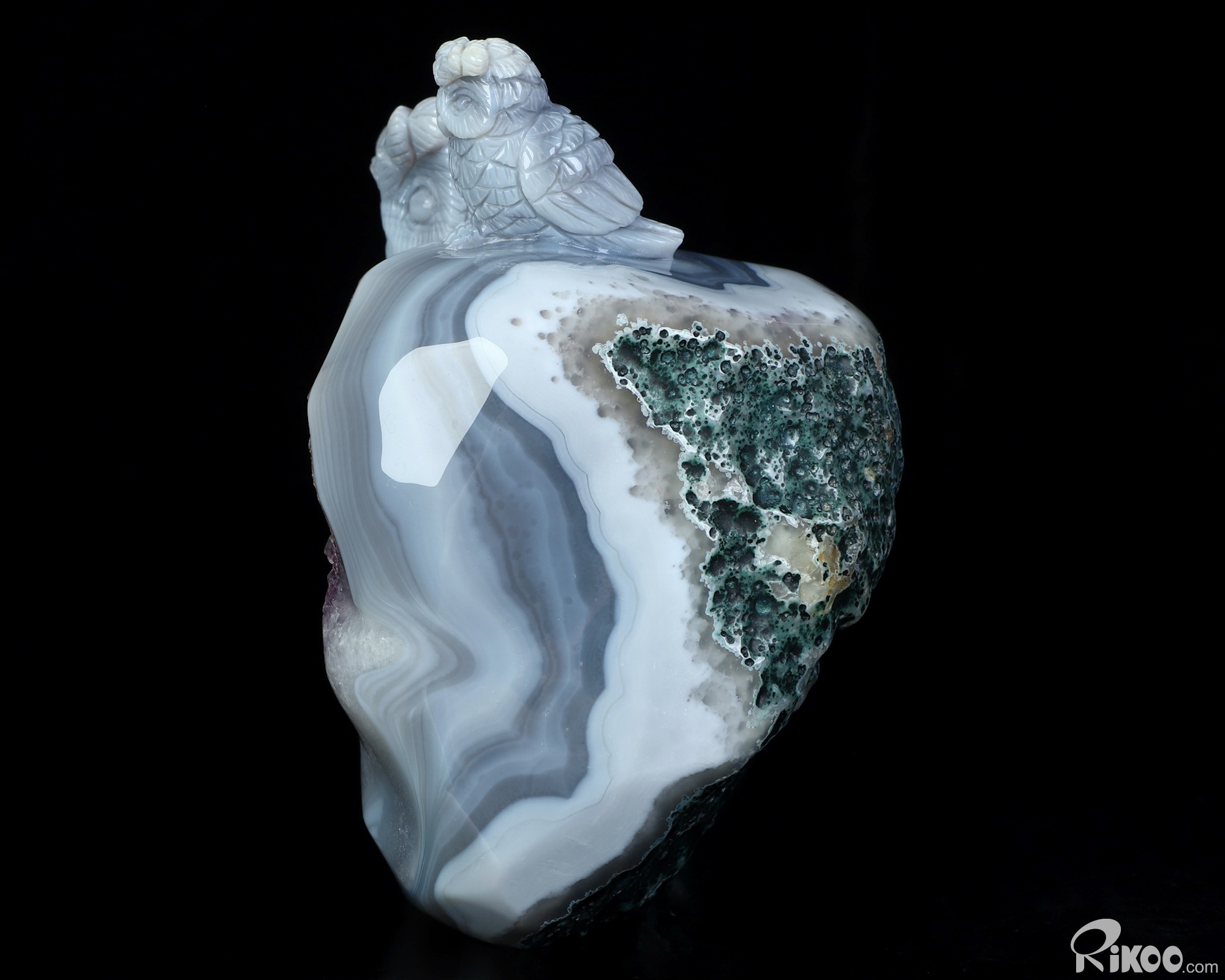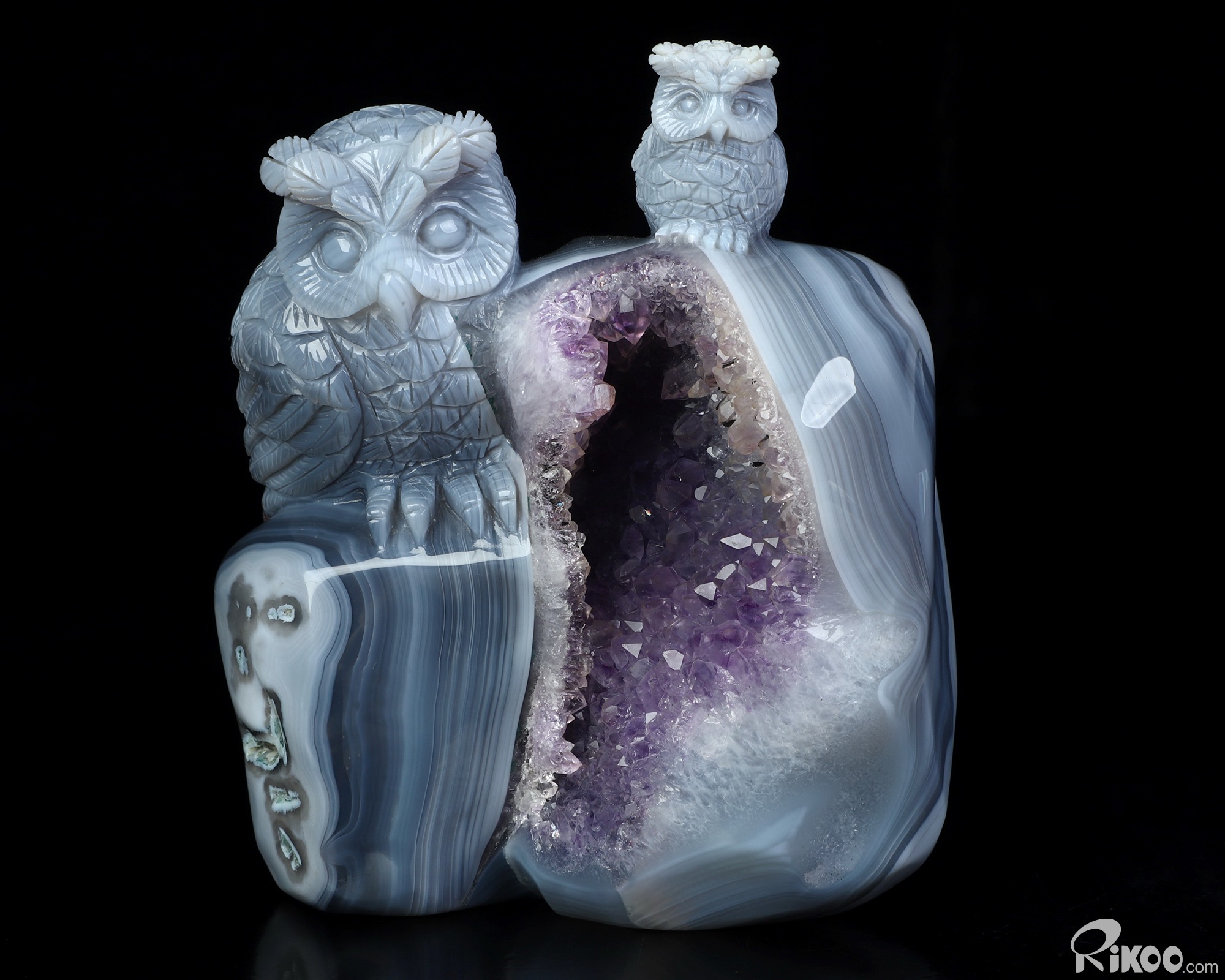 5.5" Agate Amethyst Geode Hand Carved Crystal Owl Sculpture, Crystal Healing