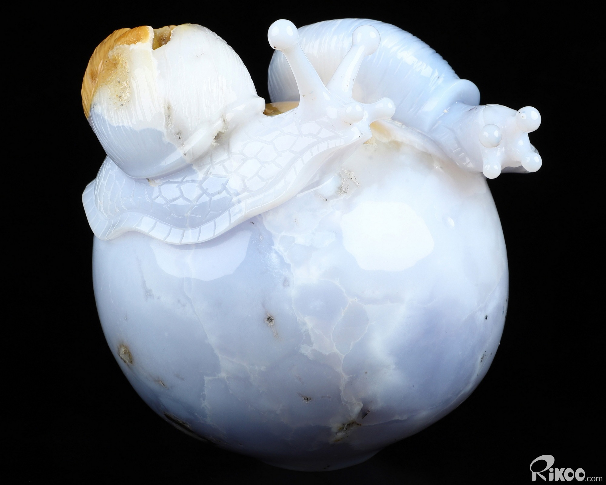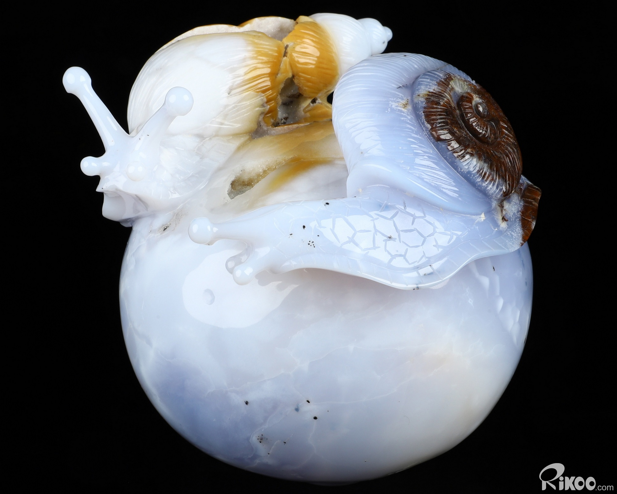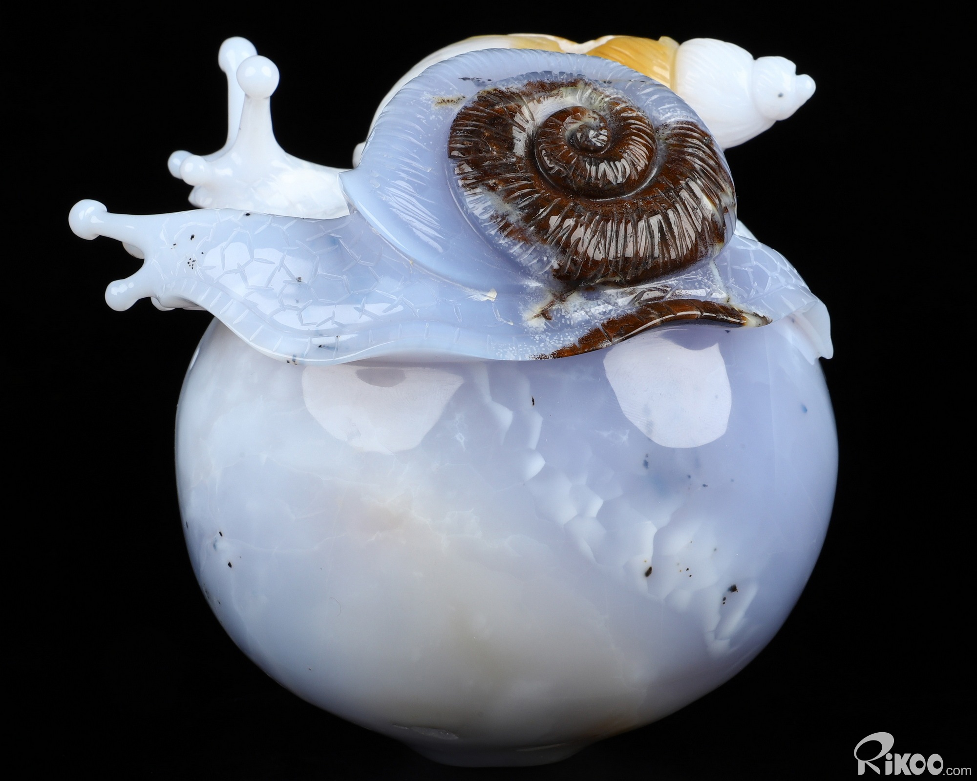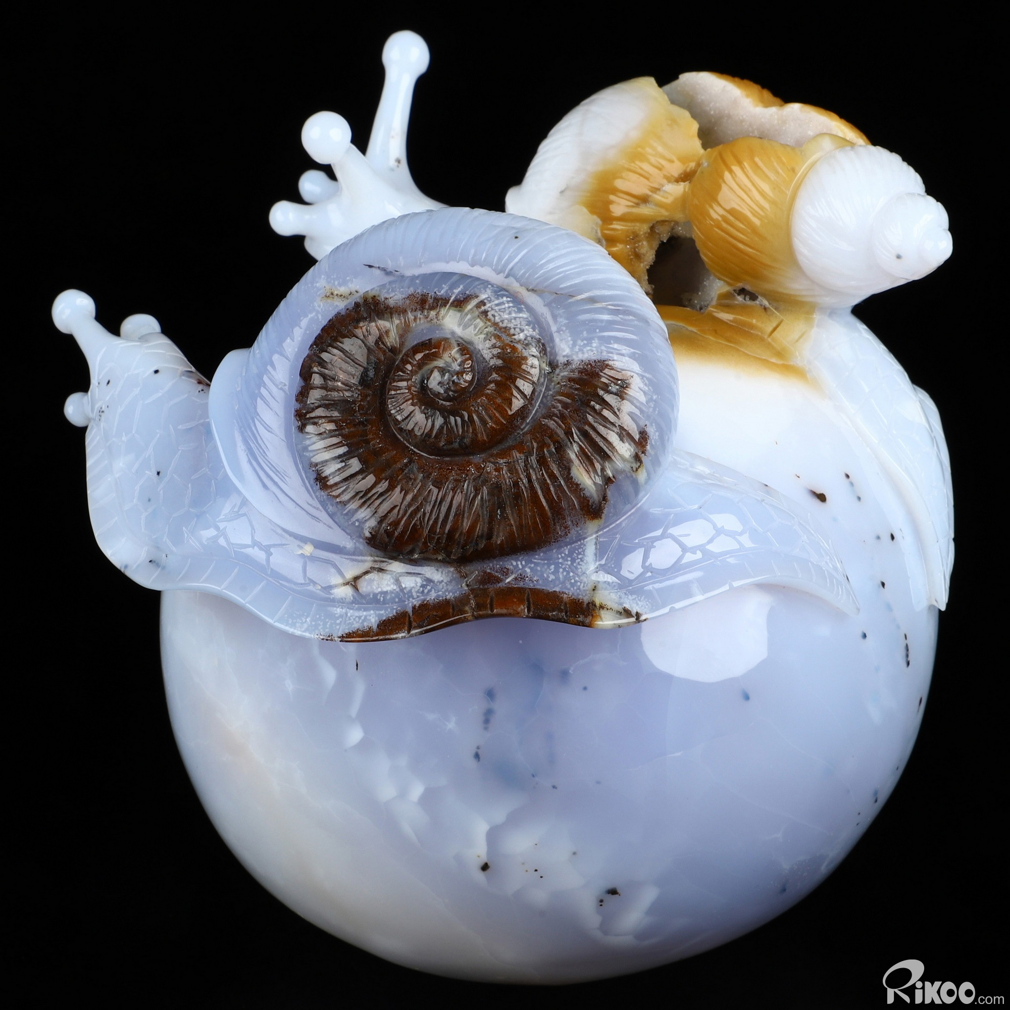 5.5" Blue Chalcedony Hand Carved Crystal Snails Sculpture, Crystal Healing