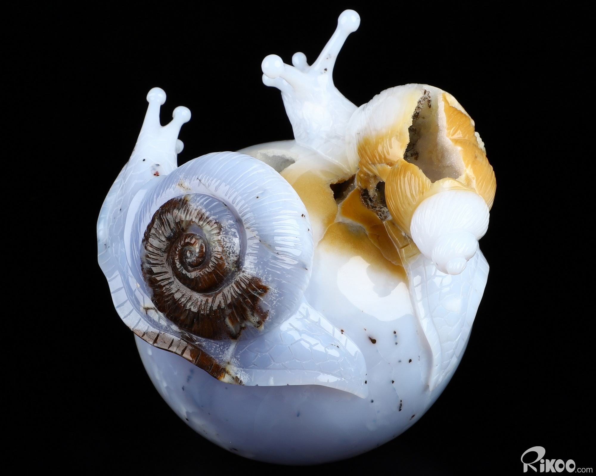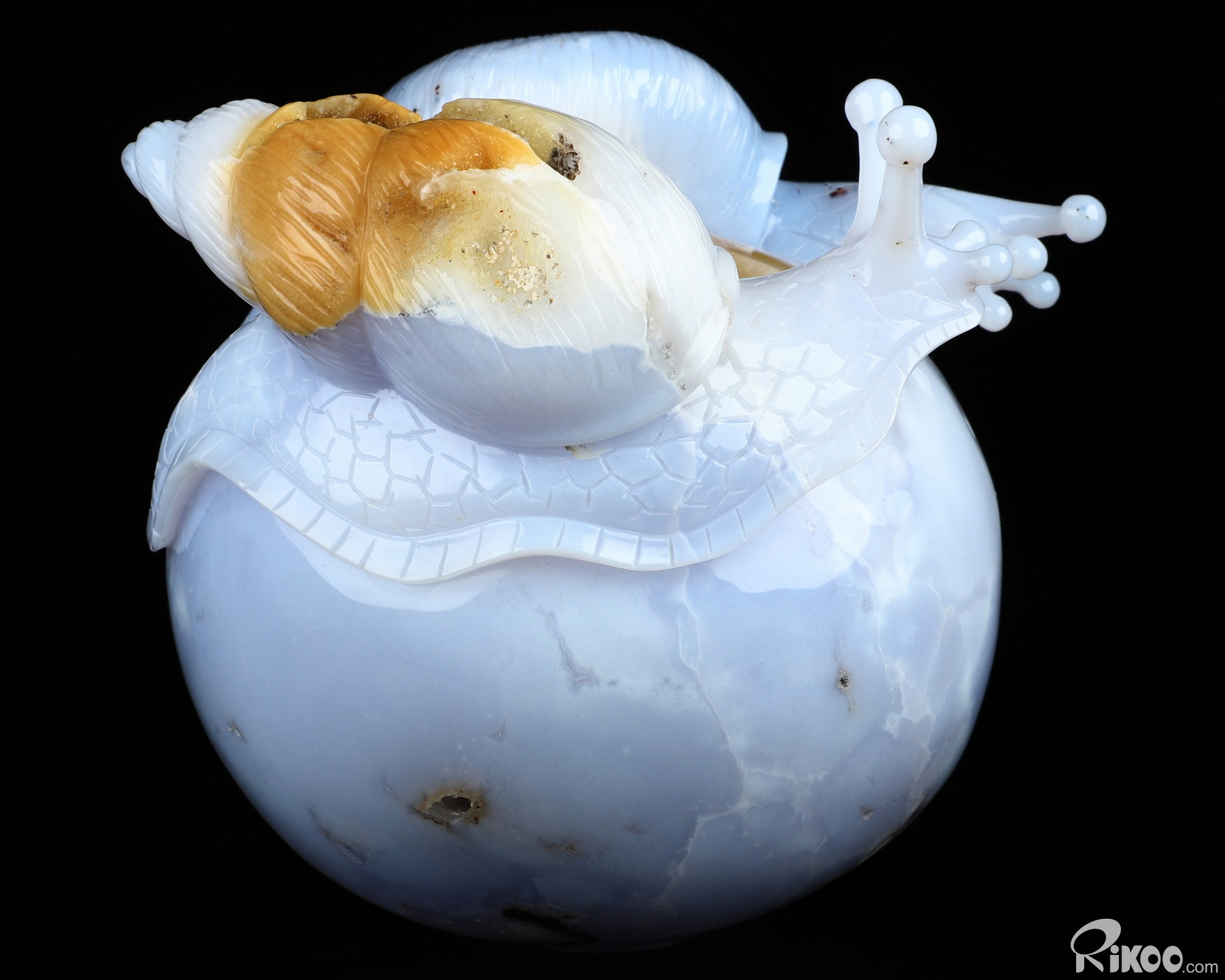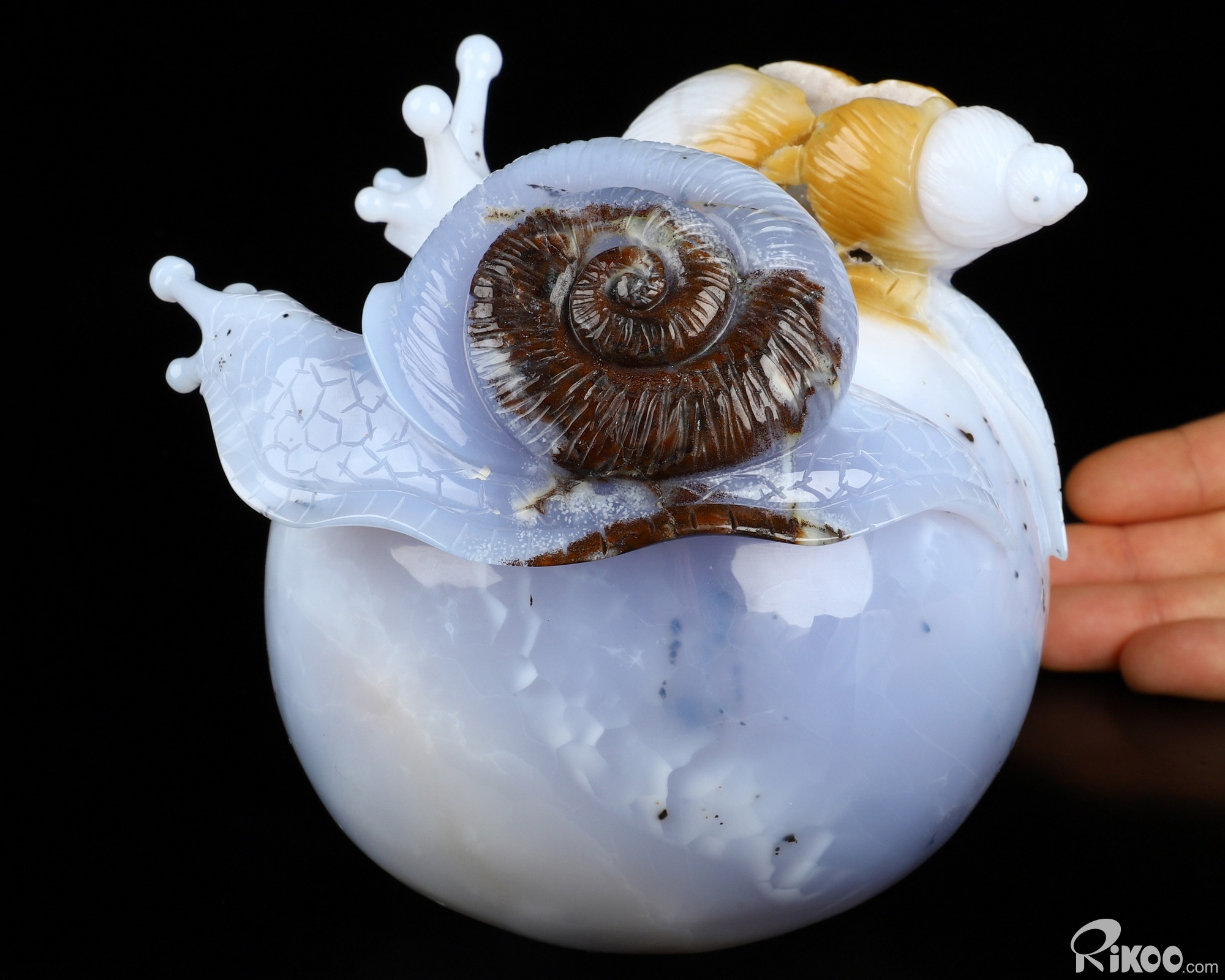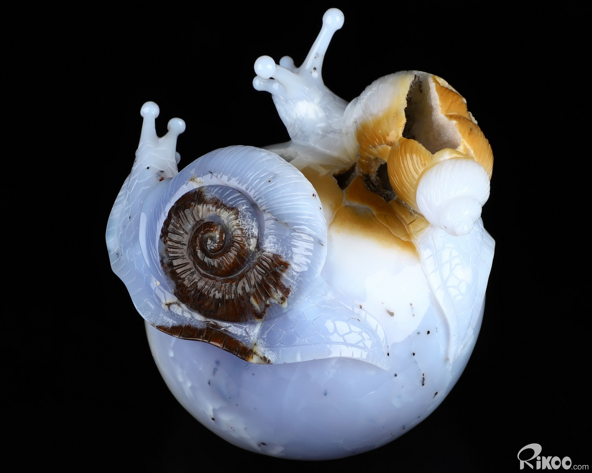 5.5" Blue Chalcedony Hand Carved Crystal Snails Sculpture, Crystal Healing