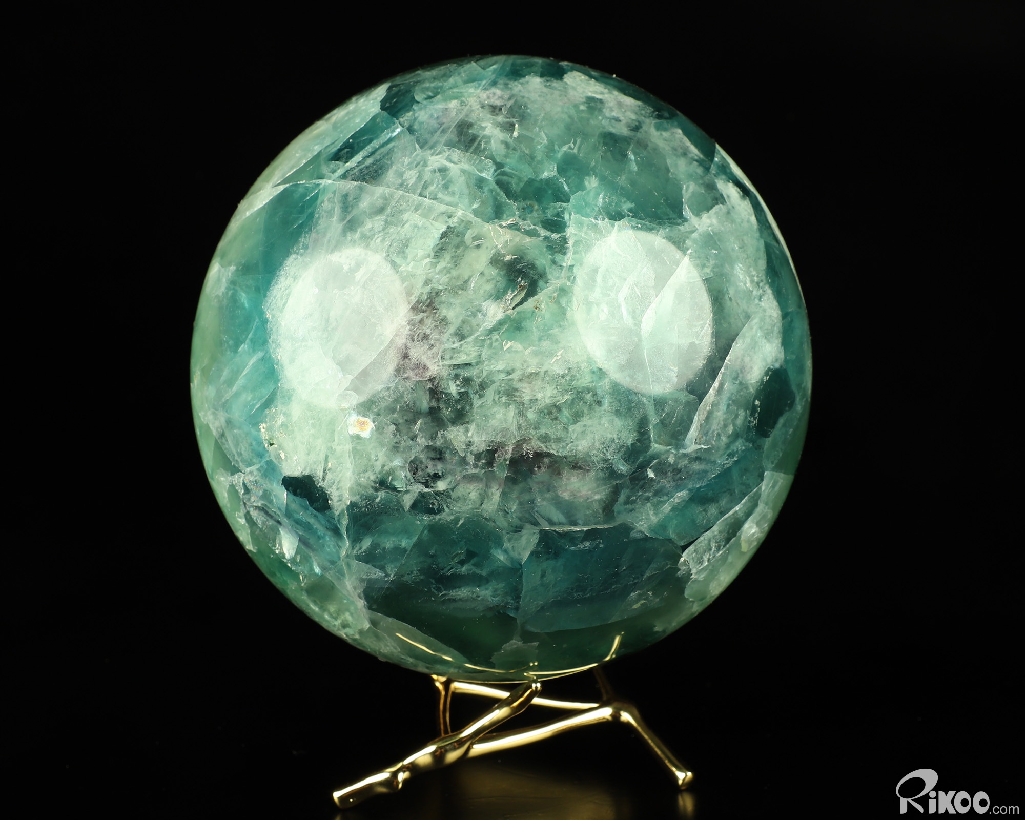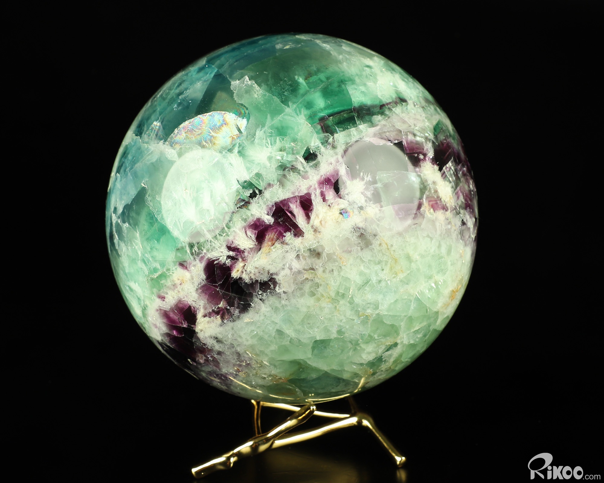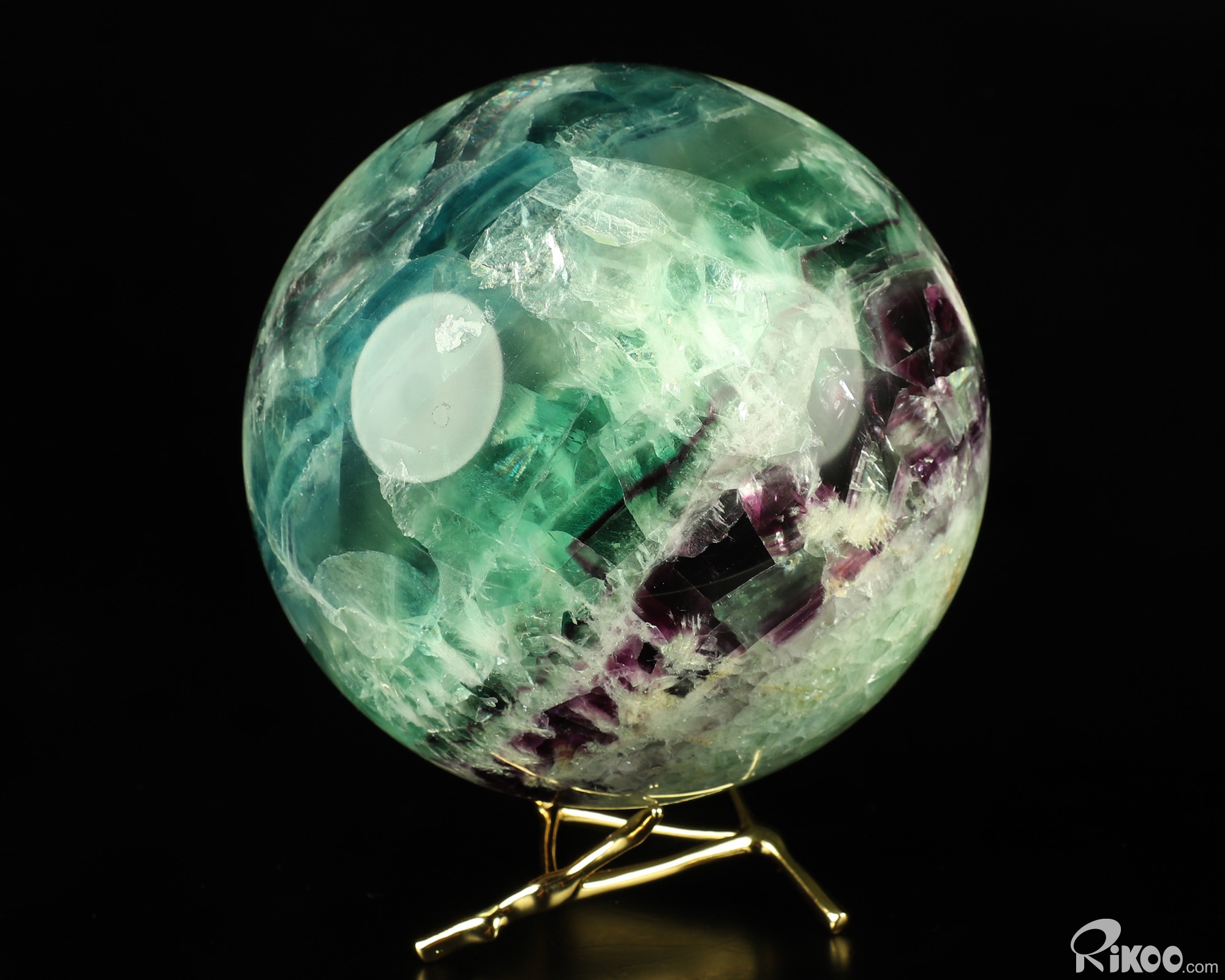 You are looking at a Fluorite ball. The ball is 5.5 inches long from front to back.