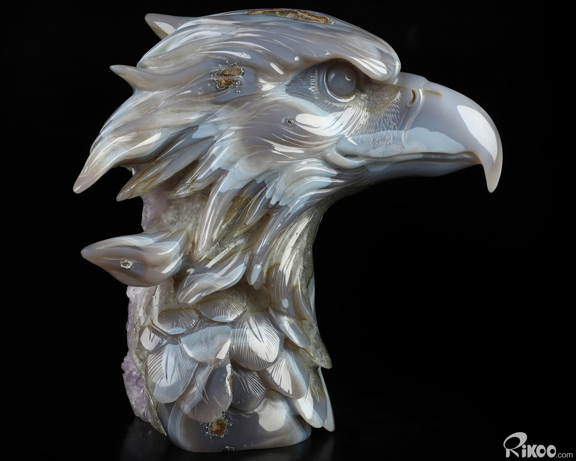 5.6" Agate Amethyst Geode Carved Eagle Sculpture,Crystal Healing