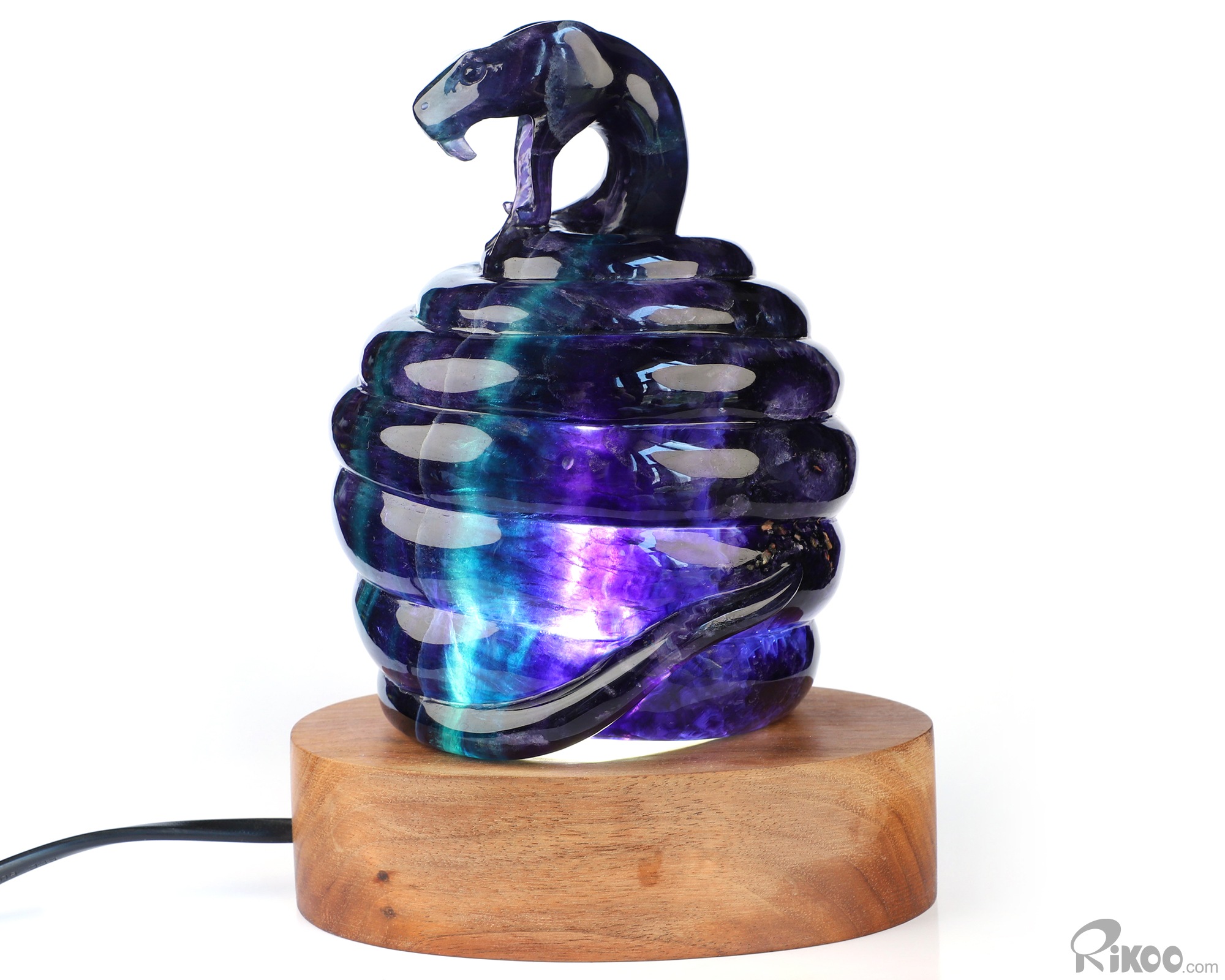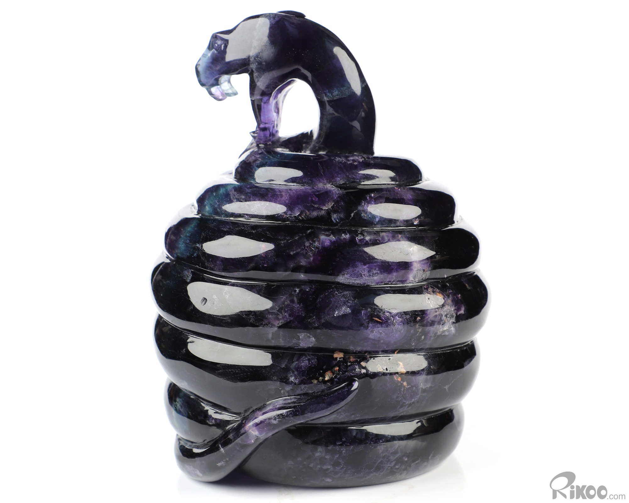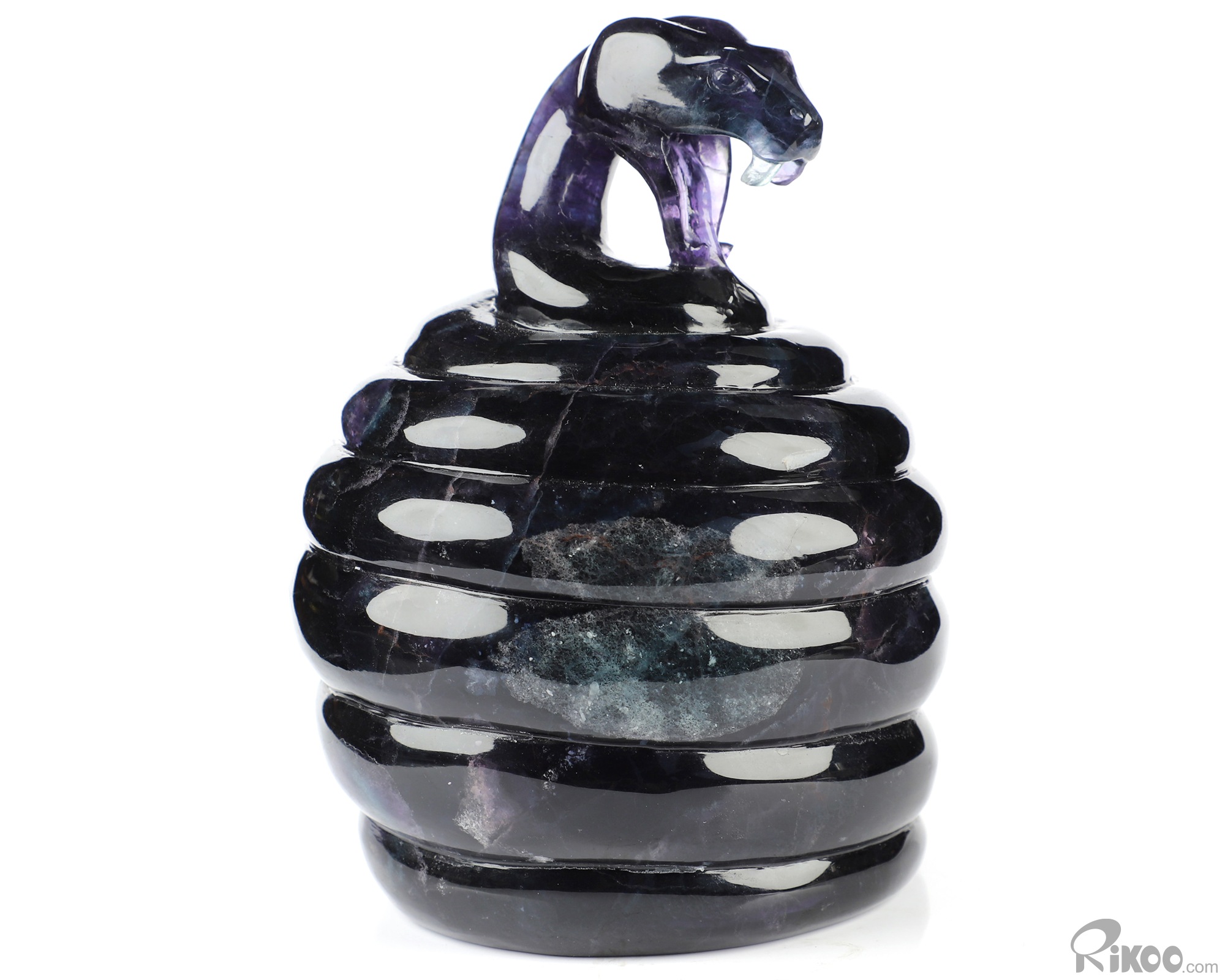 5.6" Fluorite Hand Carved Crystal Snake Sculpture, Crystal Healing