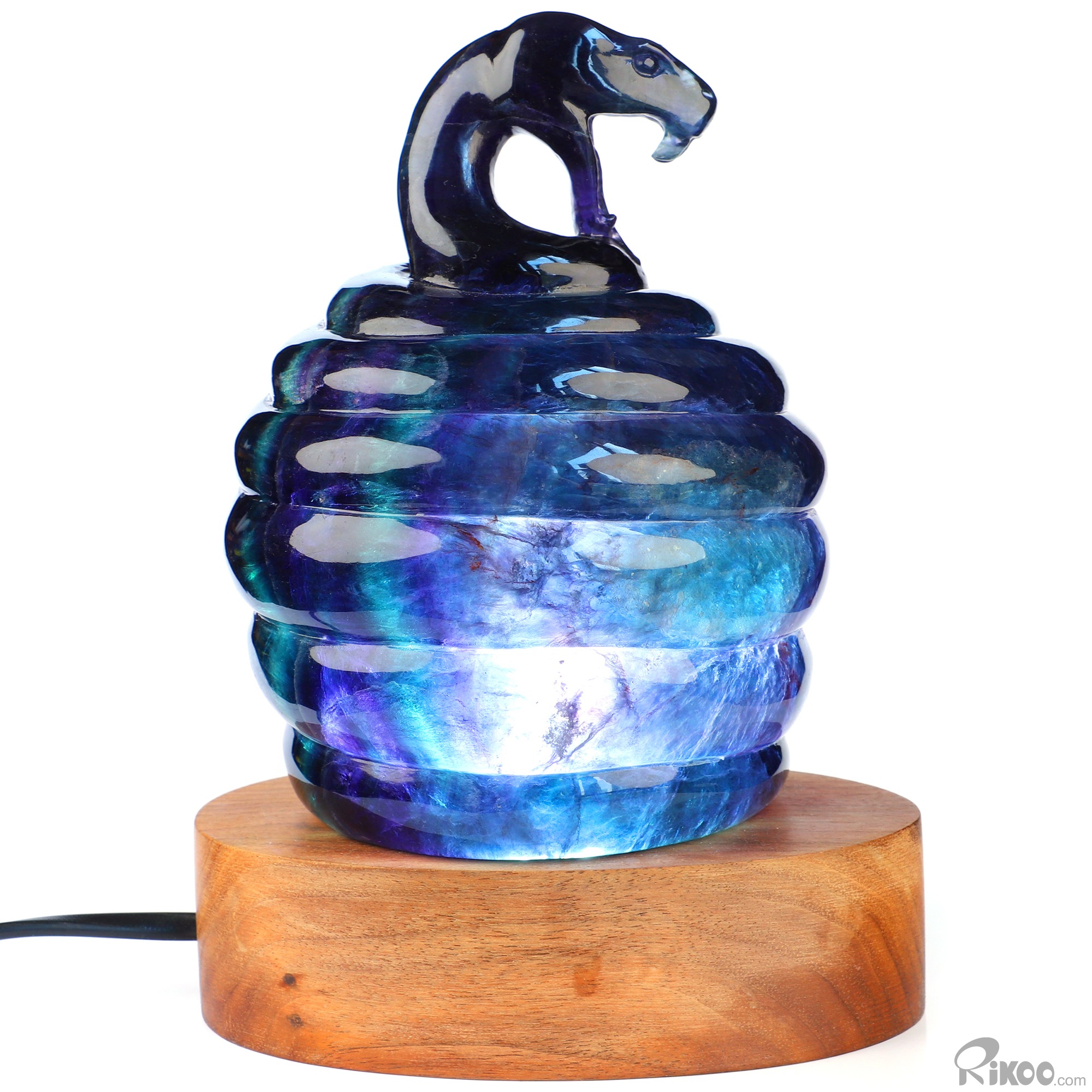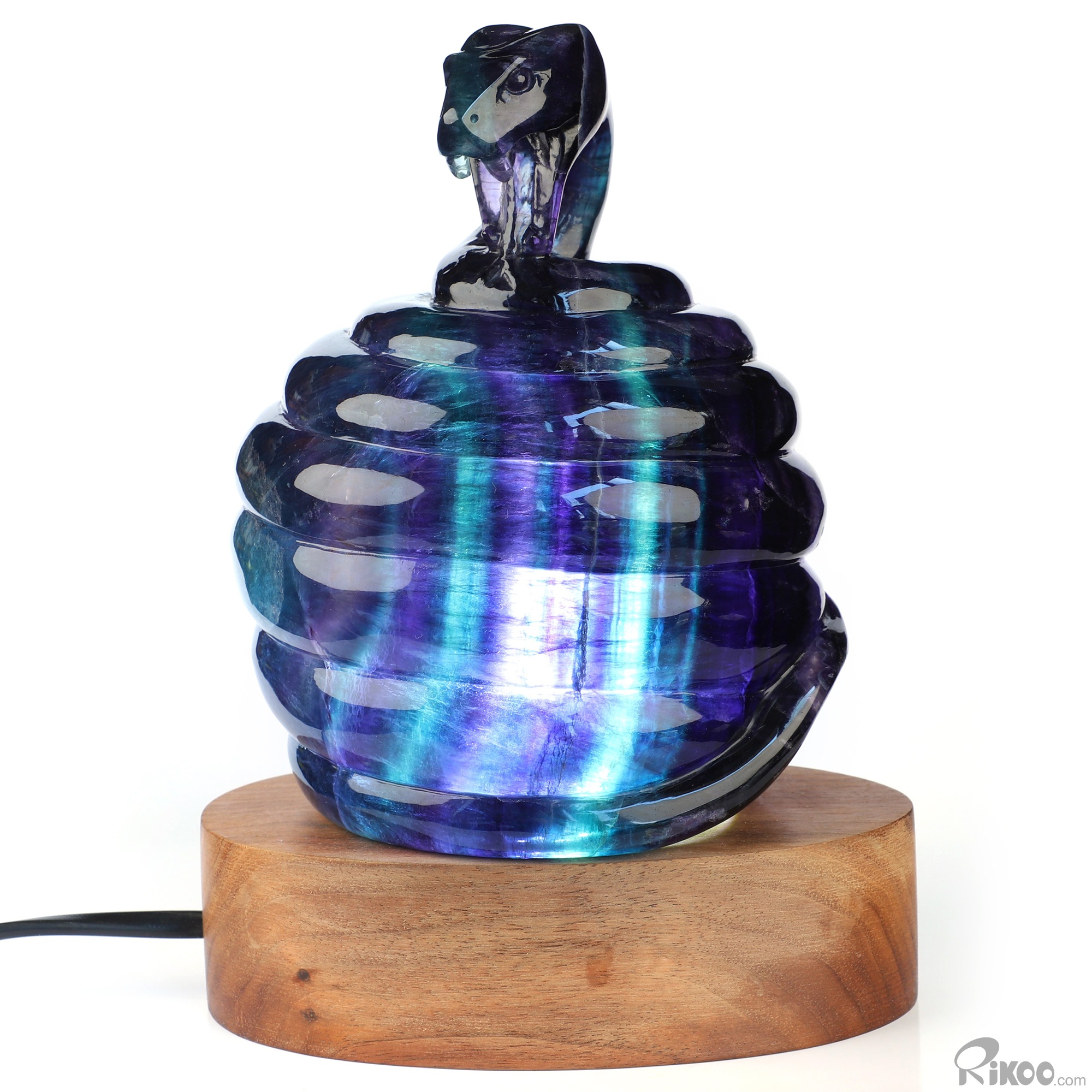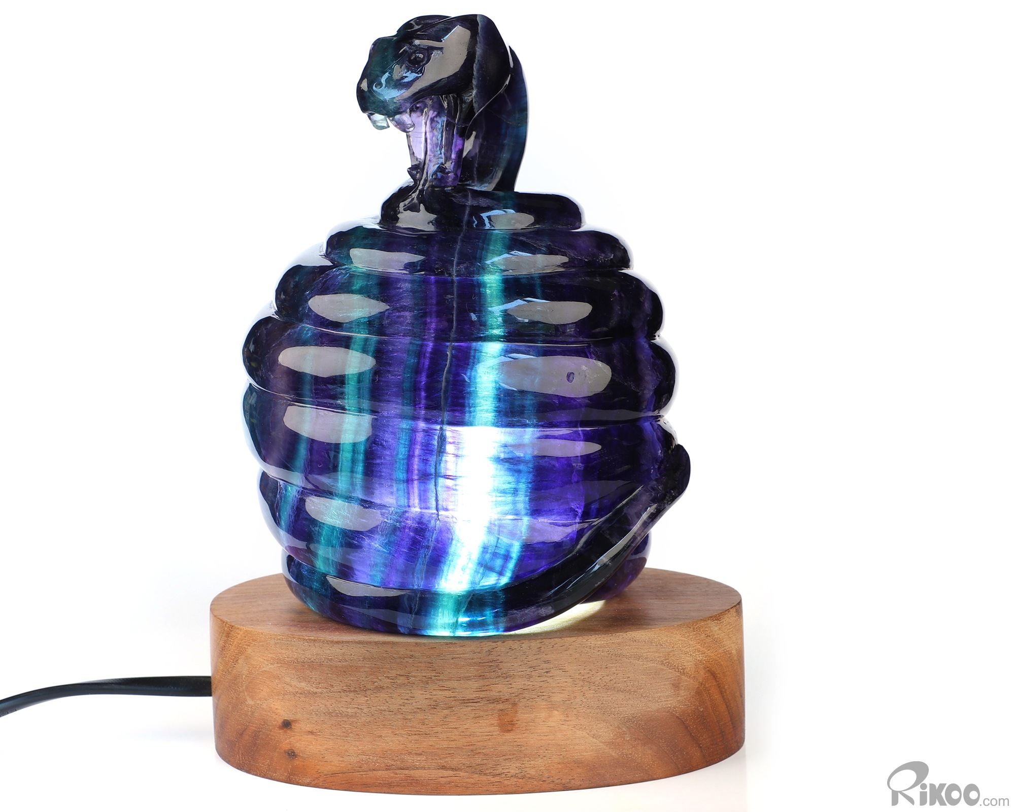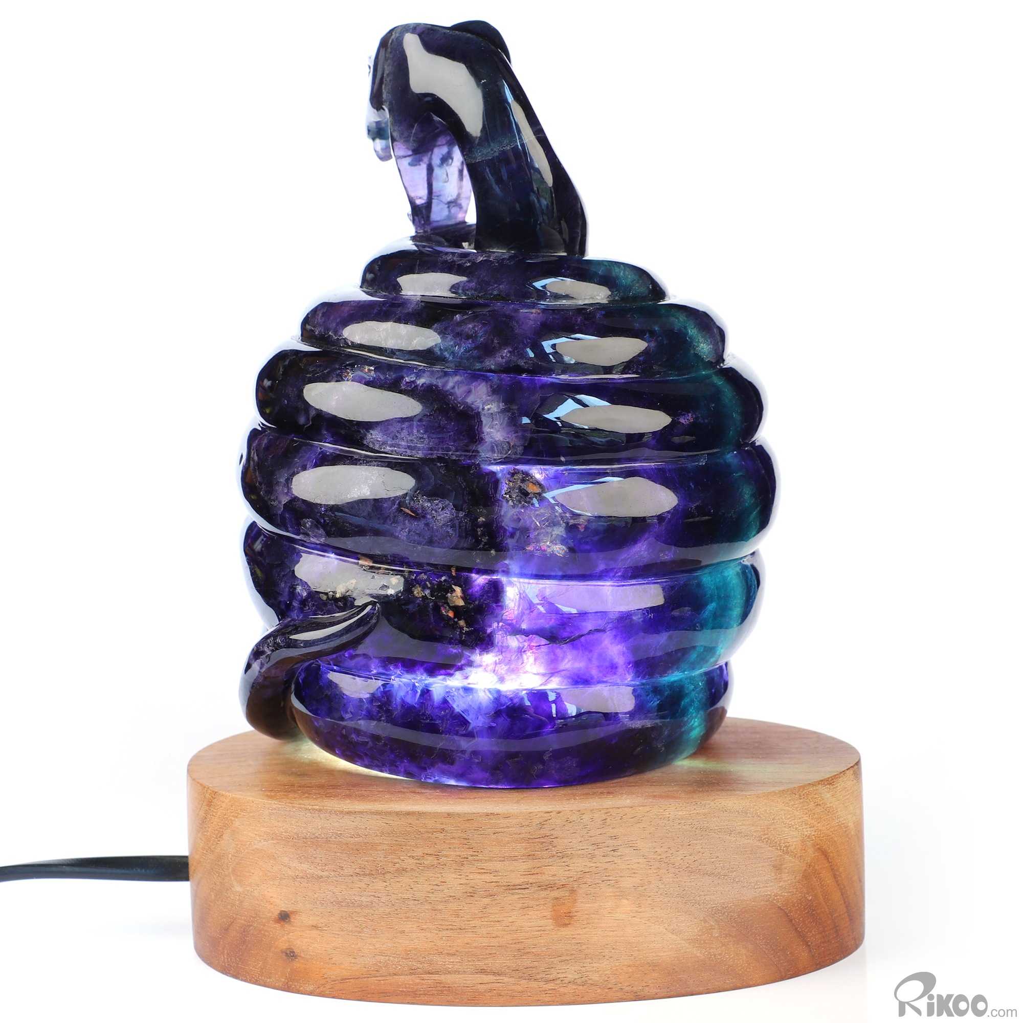 5.6" Fluorite Hand Carved Crystal Snake Sculpture, Crystal Healing
