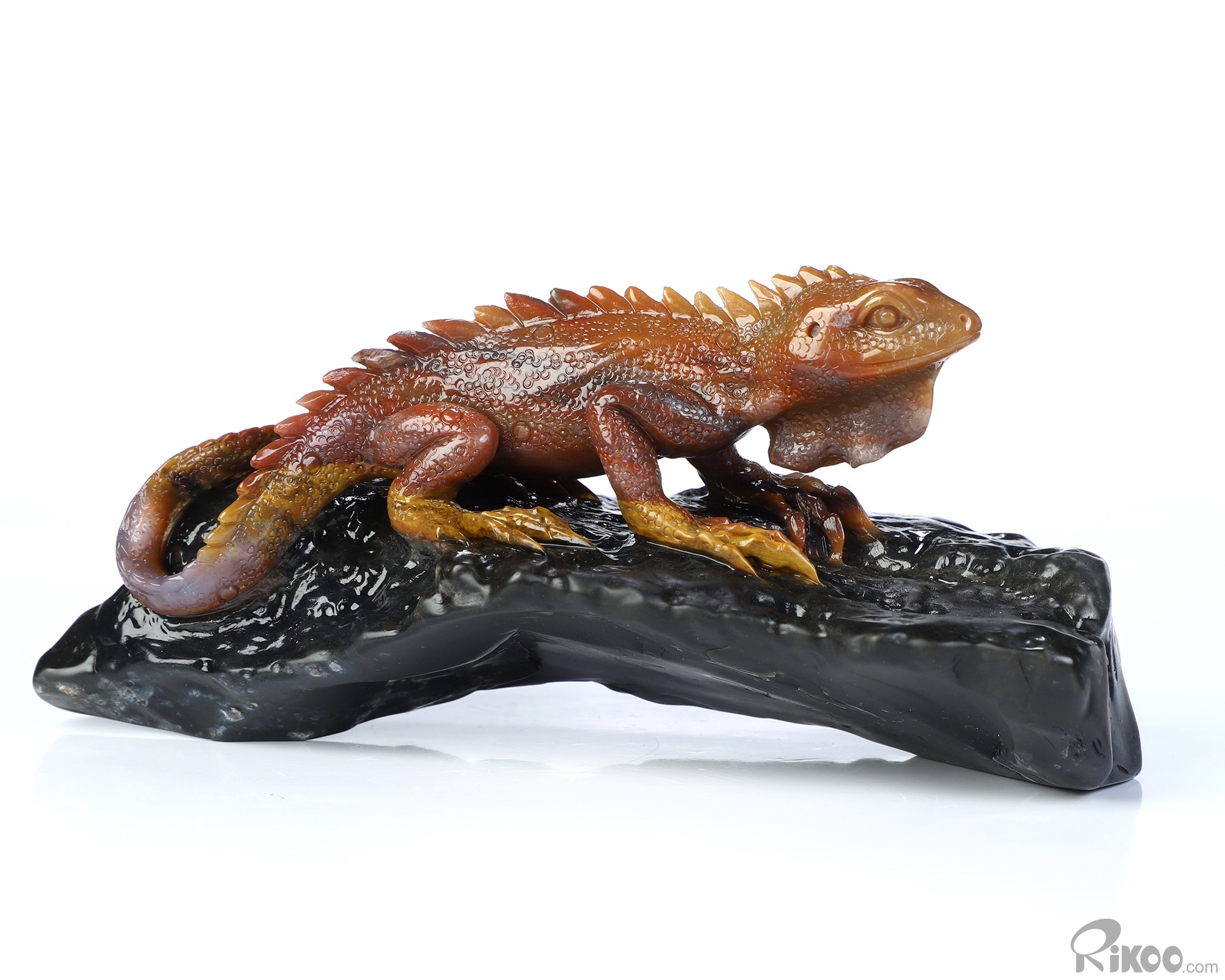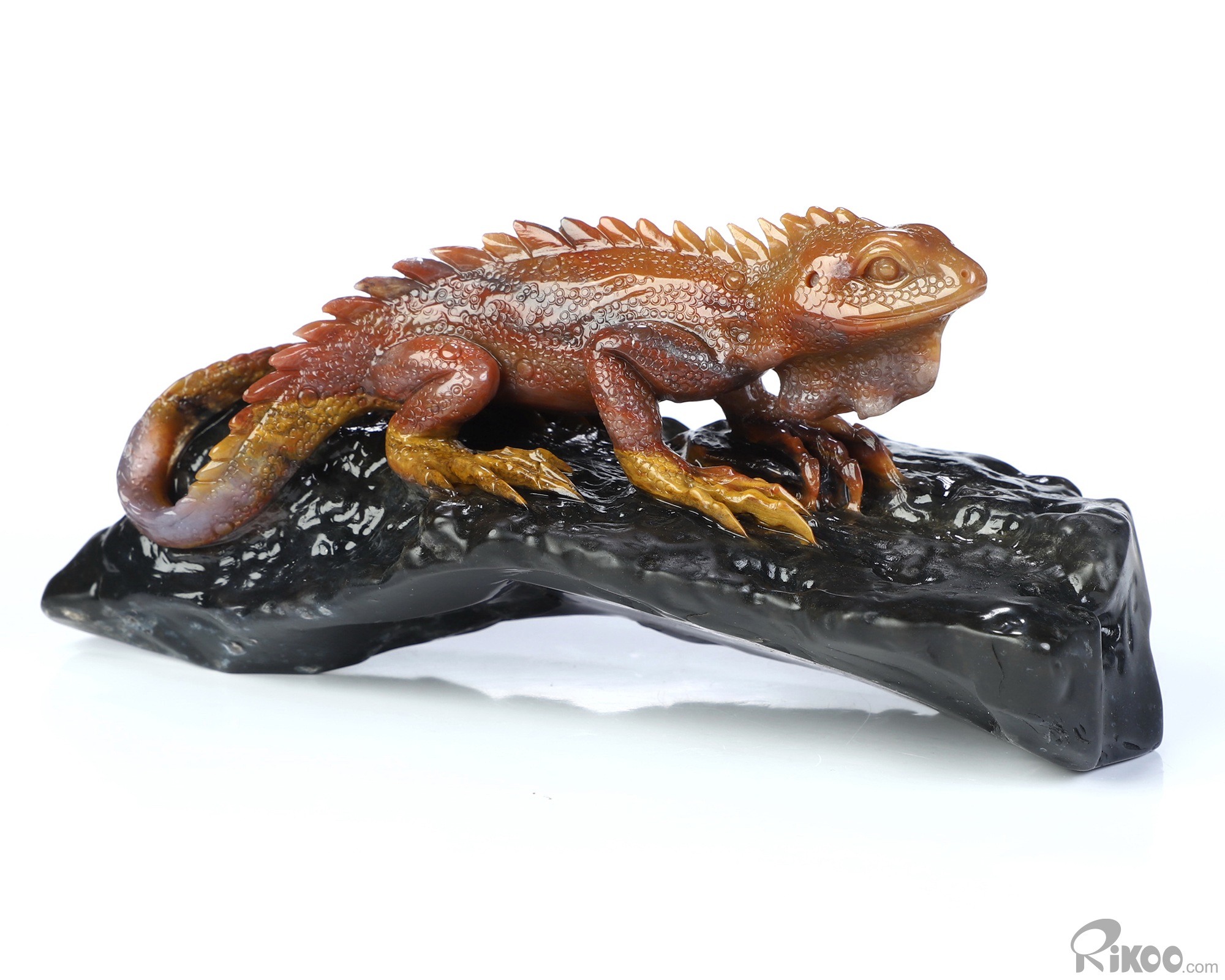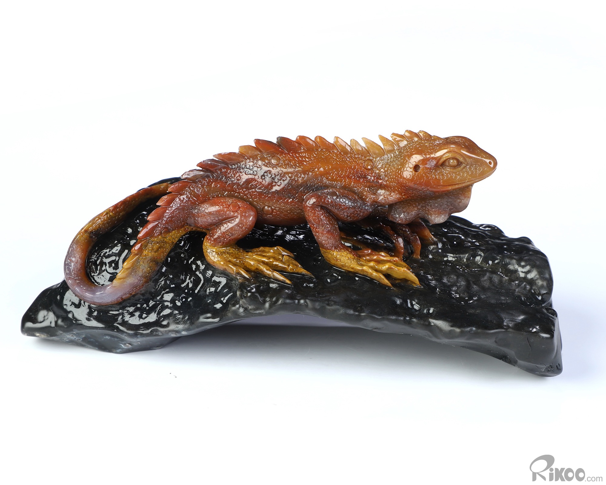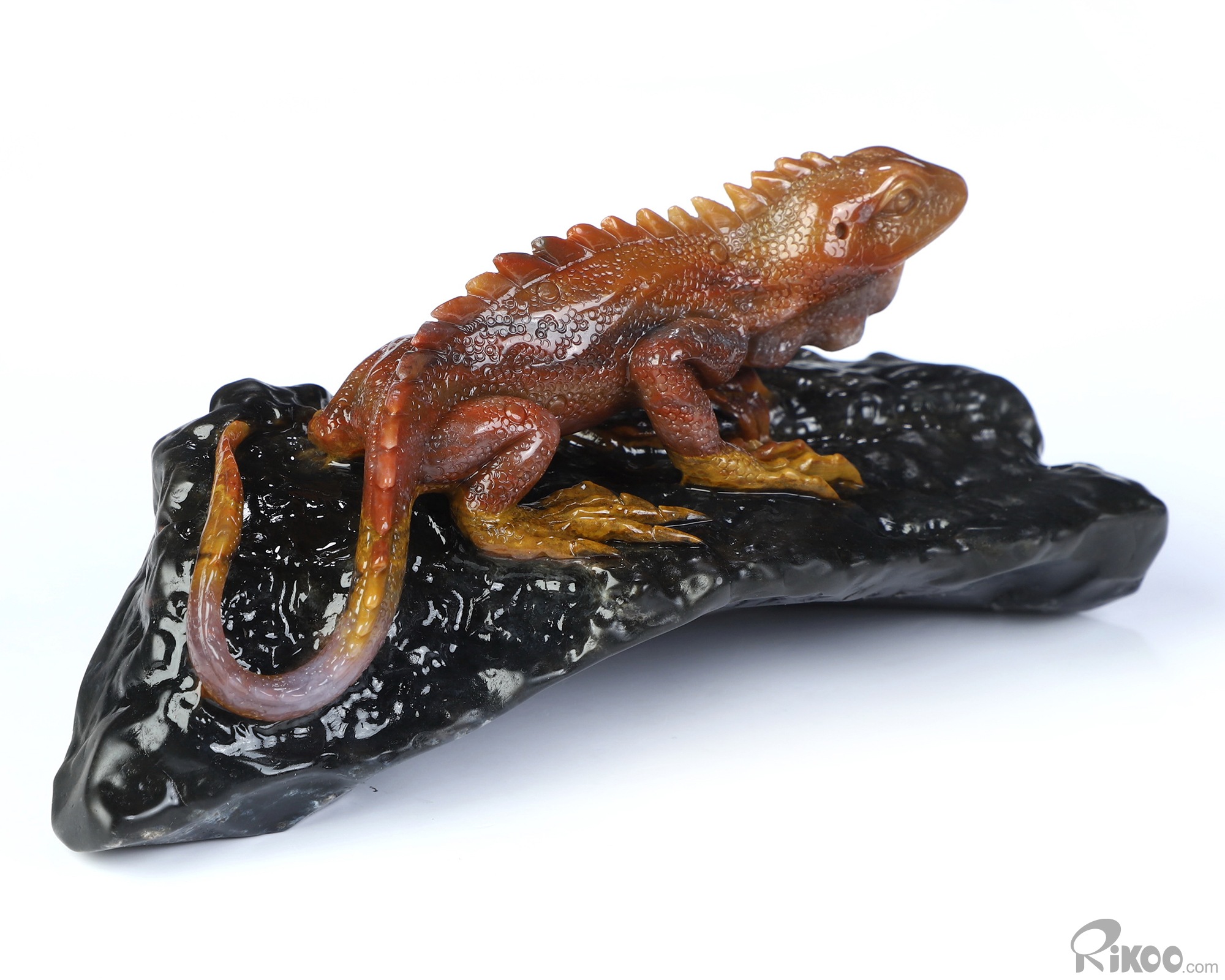 5.6" Indian Agate Hand Carved Crystal Lizard Sculpture, Crystal Healing