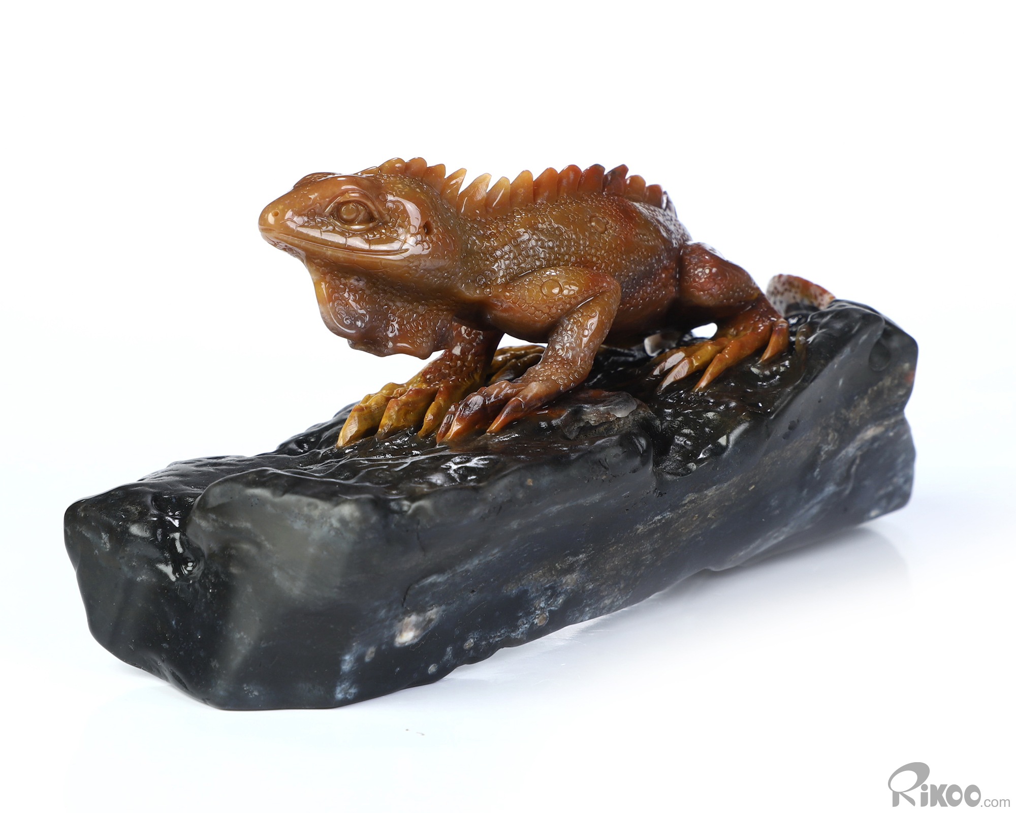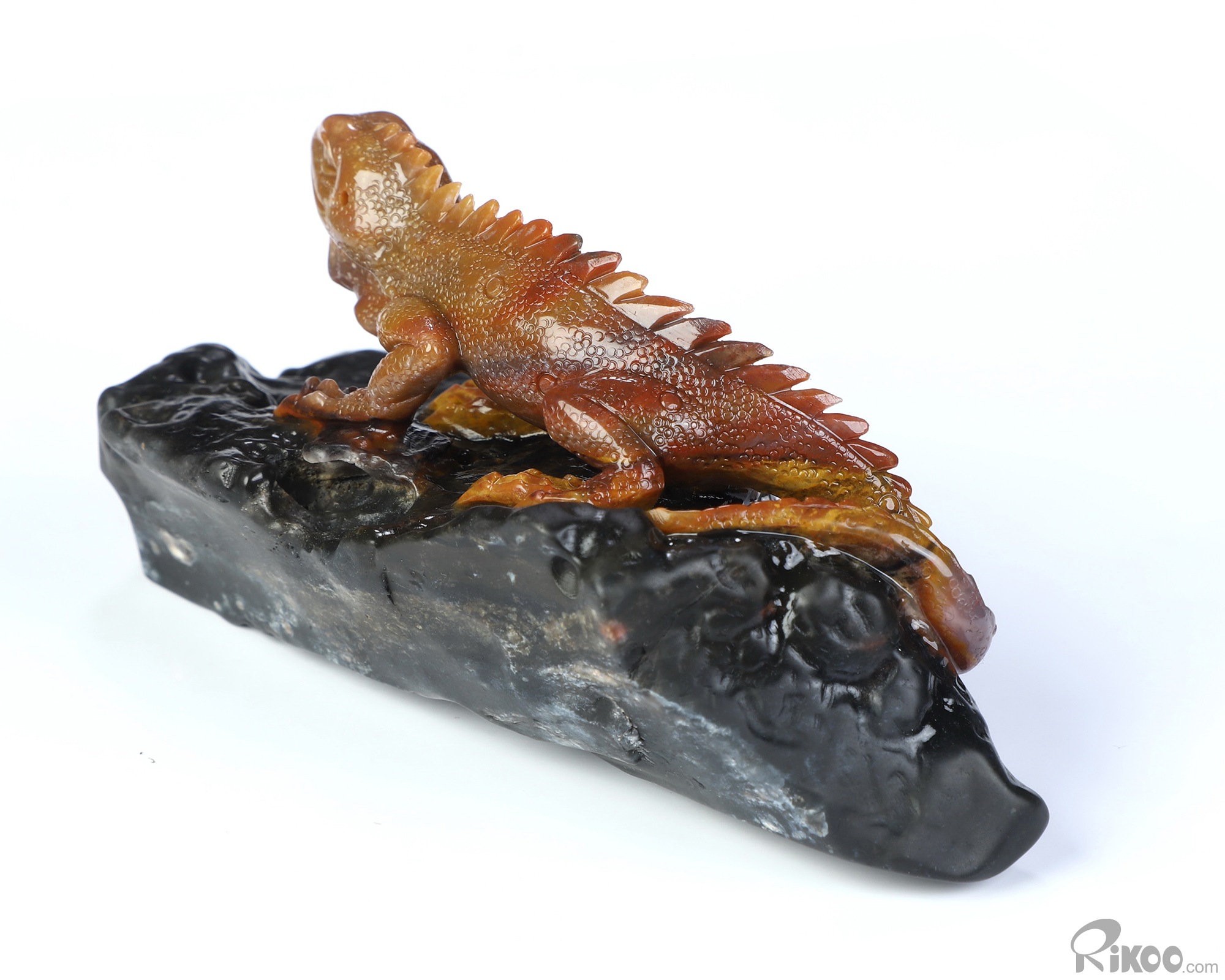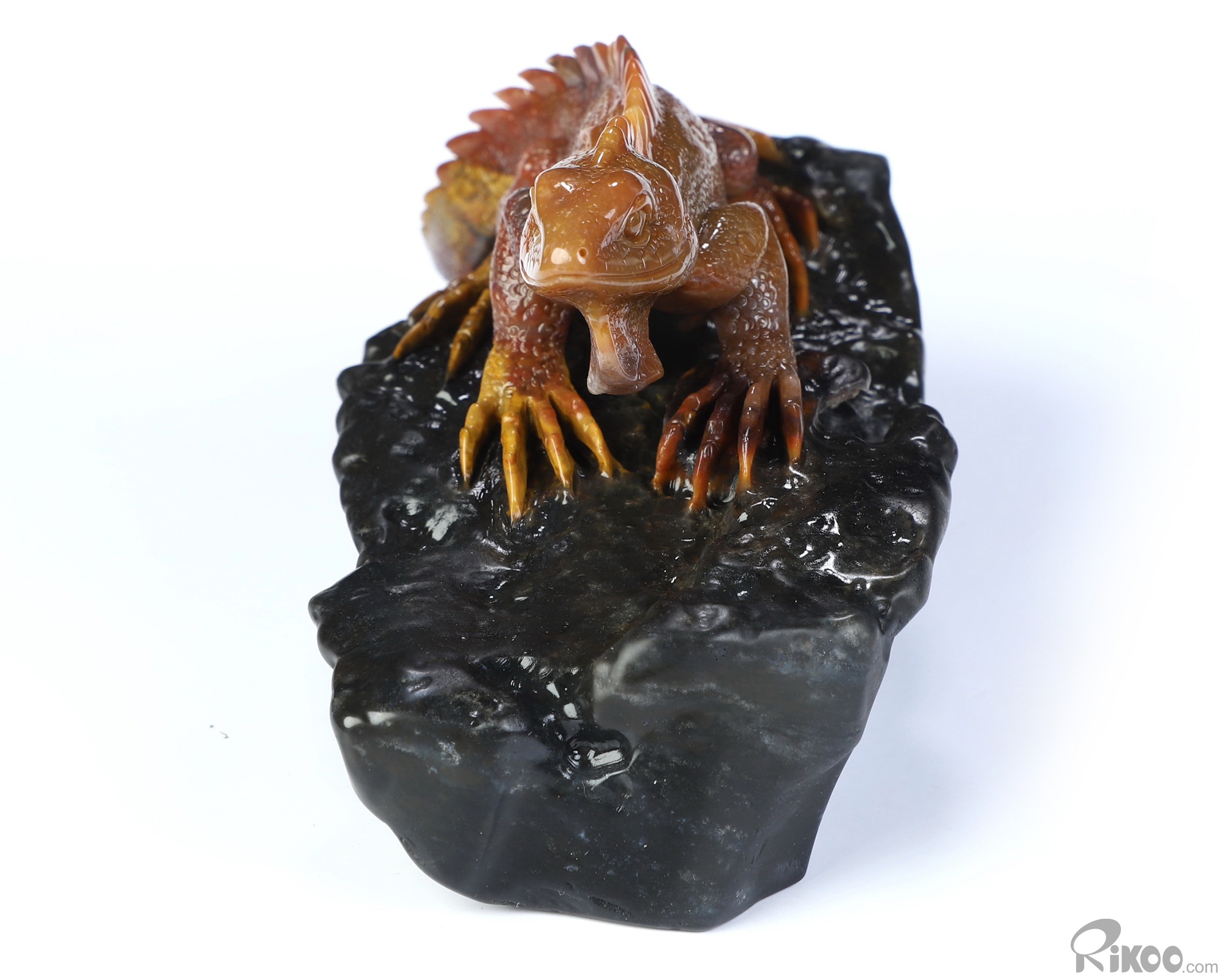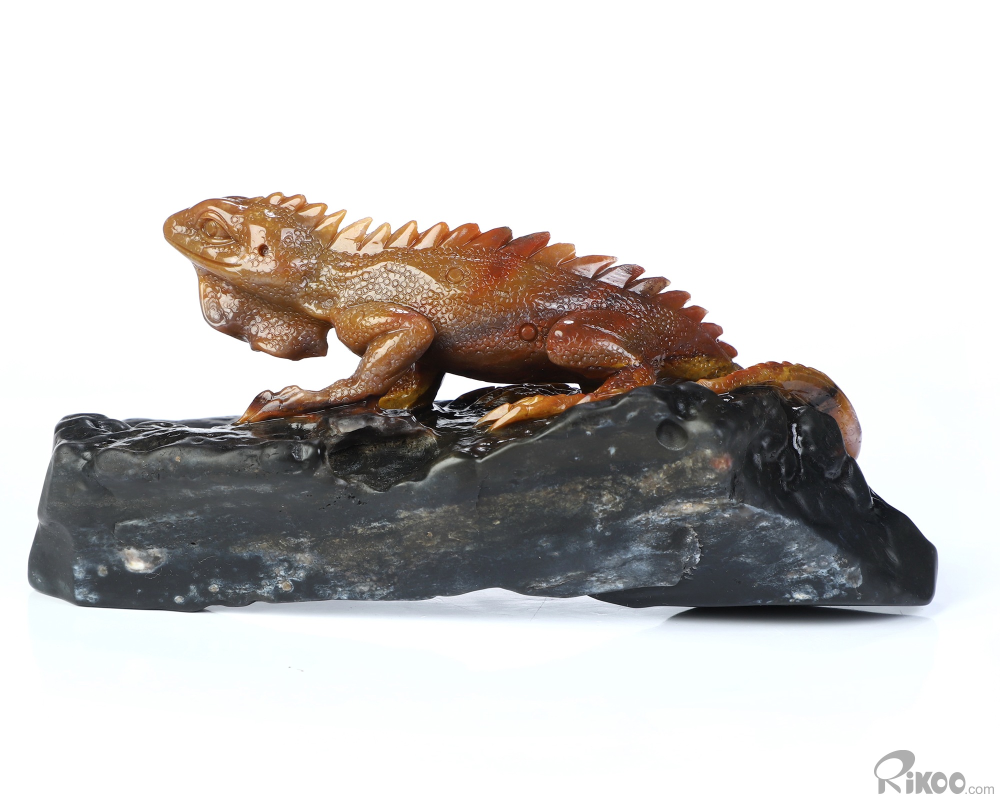 5.6" Indian Agate Hand Carved Crystal Lizard Sculpture, Crystal Healing