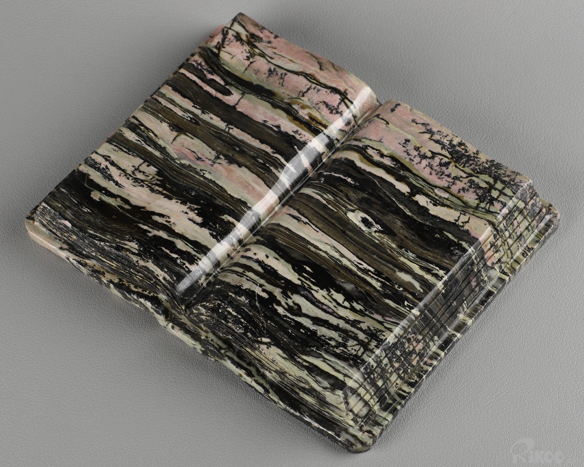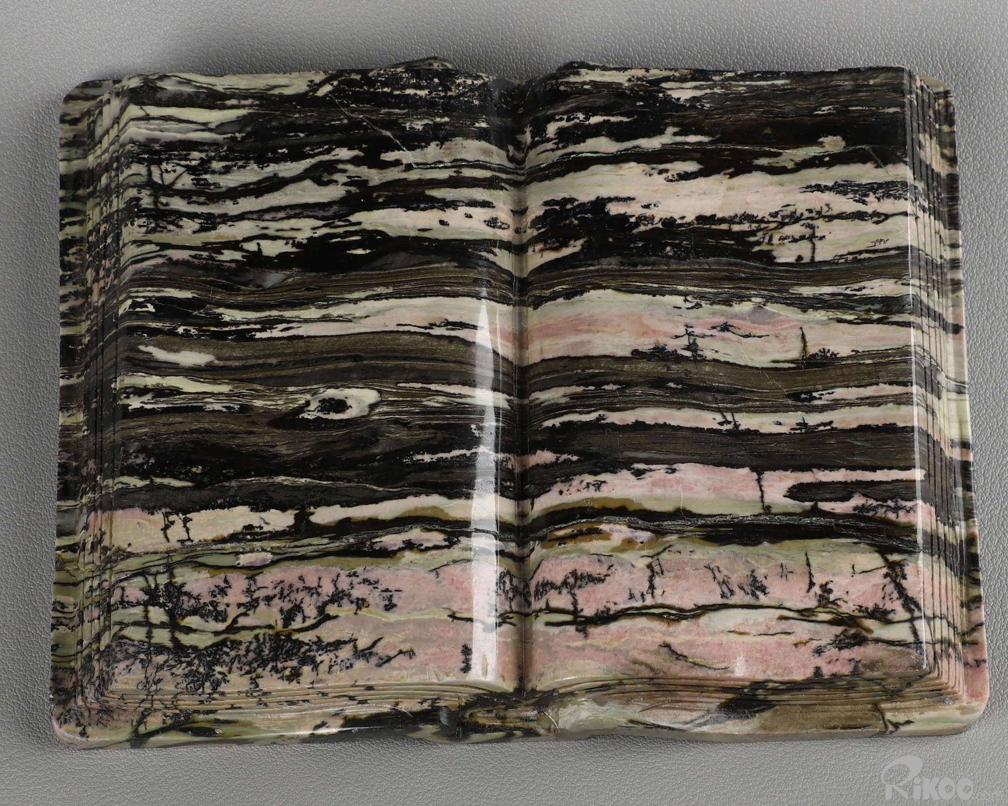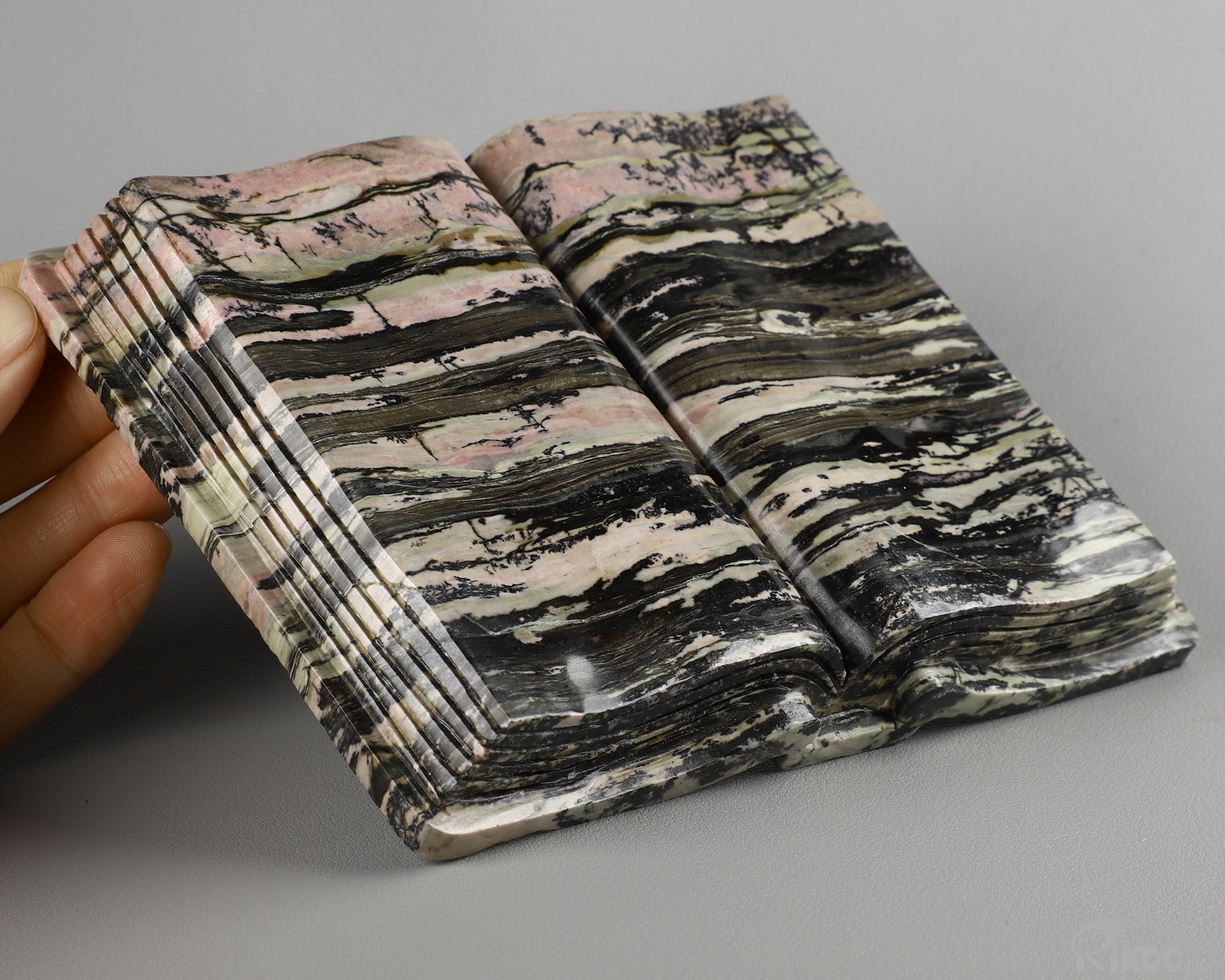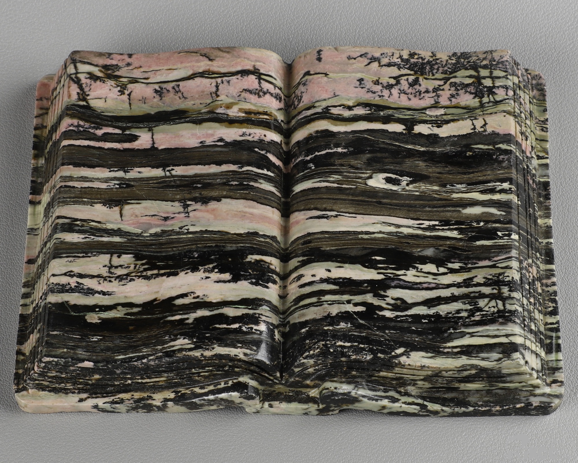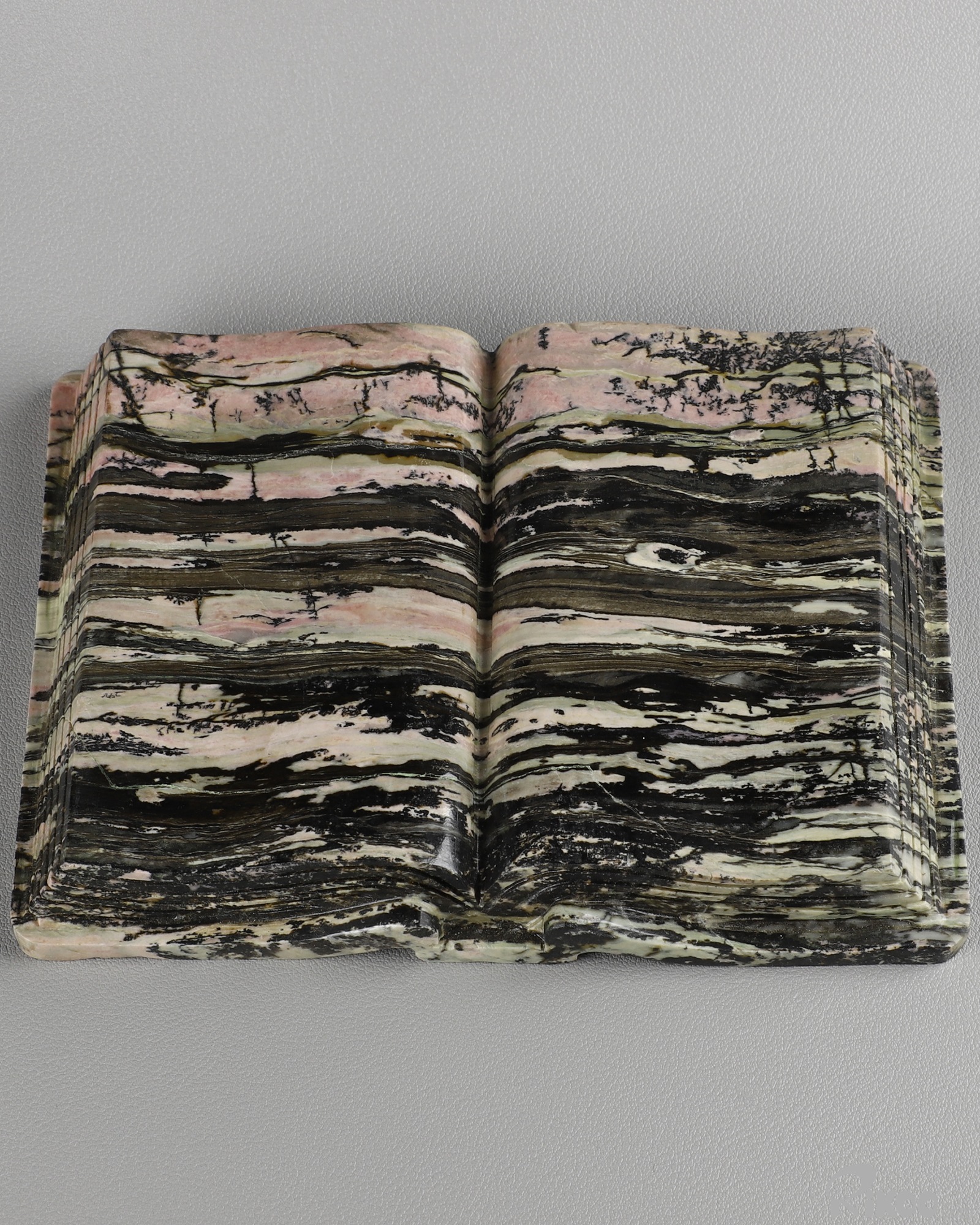 5.6" Pink & Black Rhodonite Carved Gem Book Crystal Book, Realistic, Crystal Healing