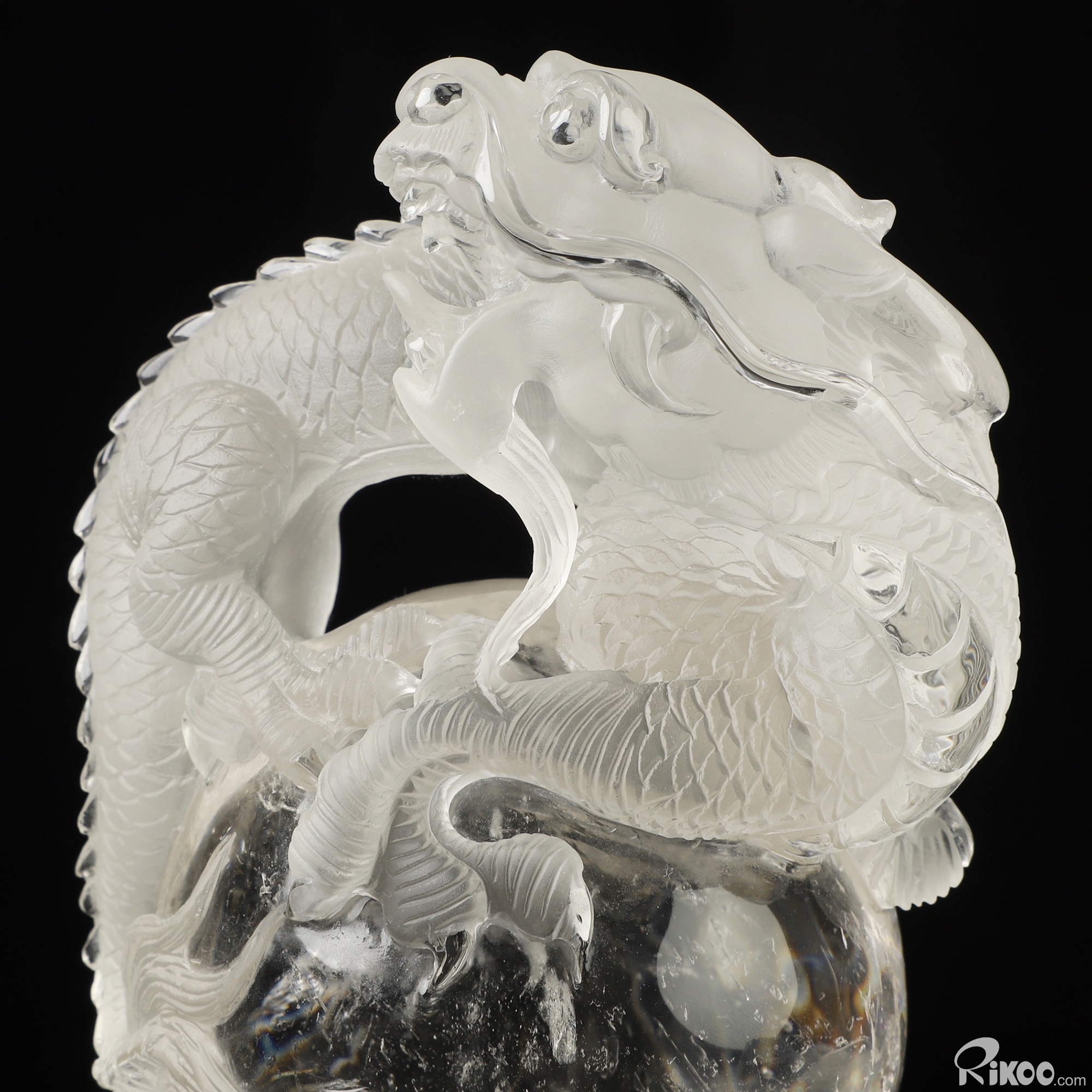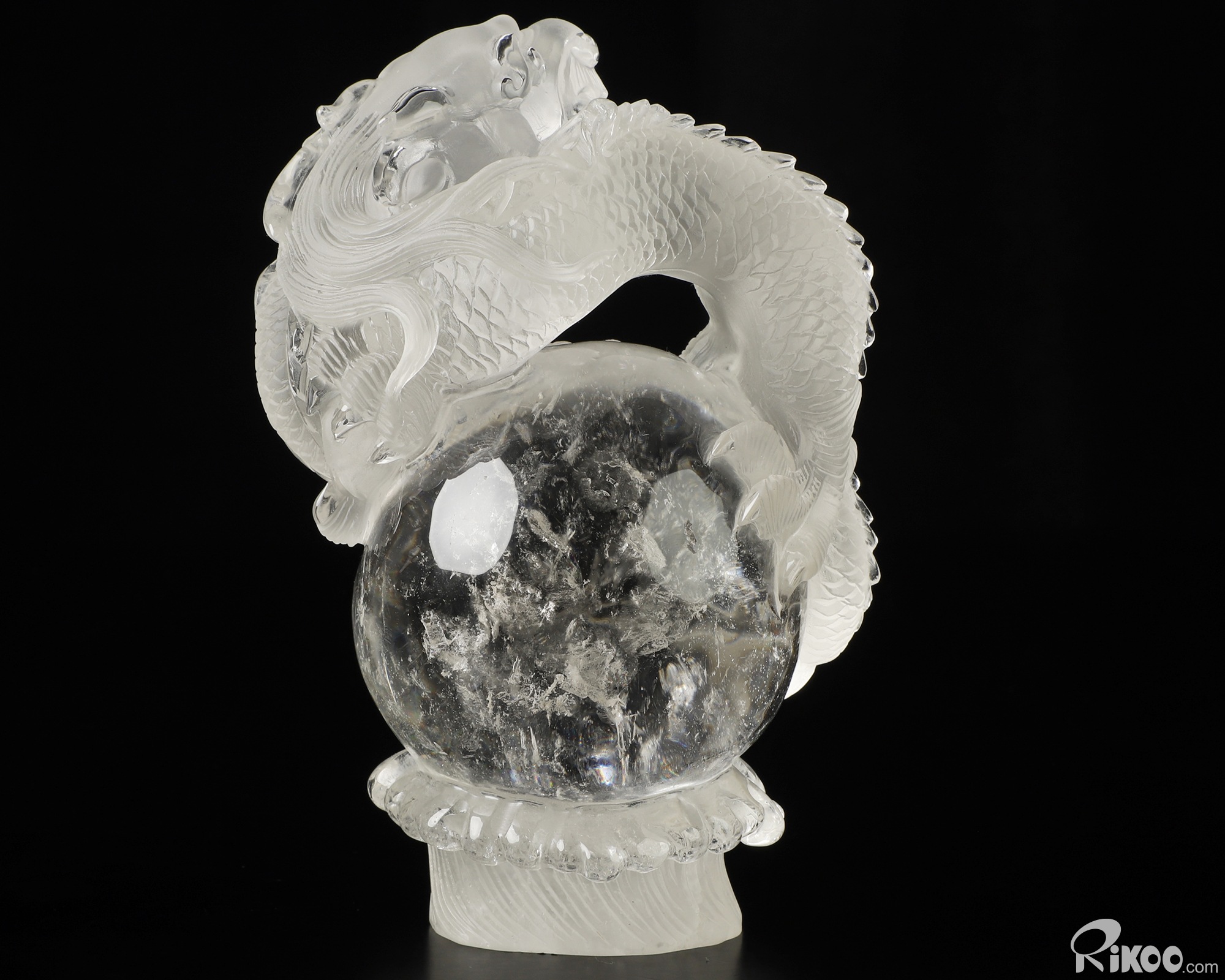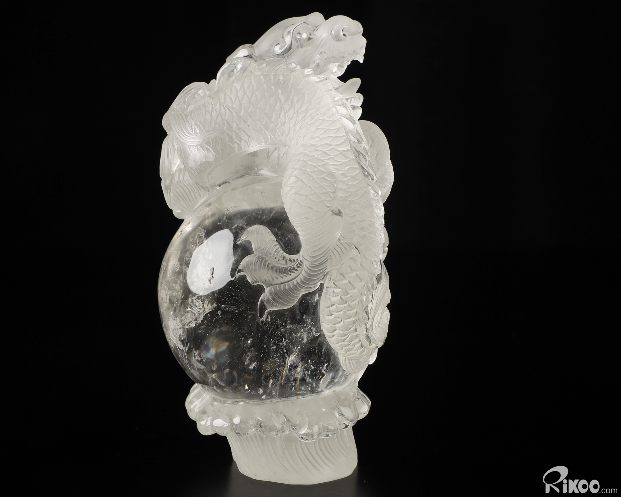 5.6" Quartz Rock Crystal Hand Carved Crystal Dragon Sculpture, Crystal Healing