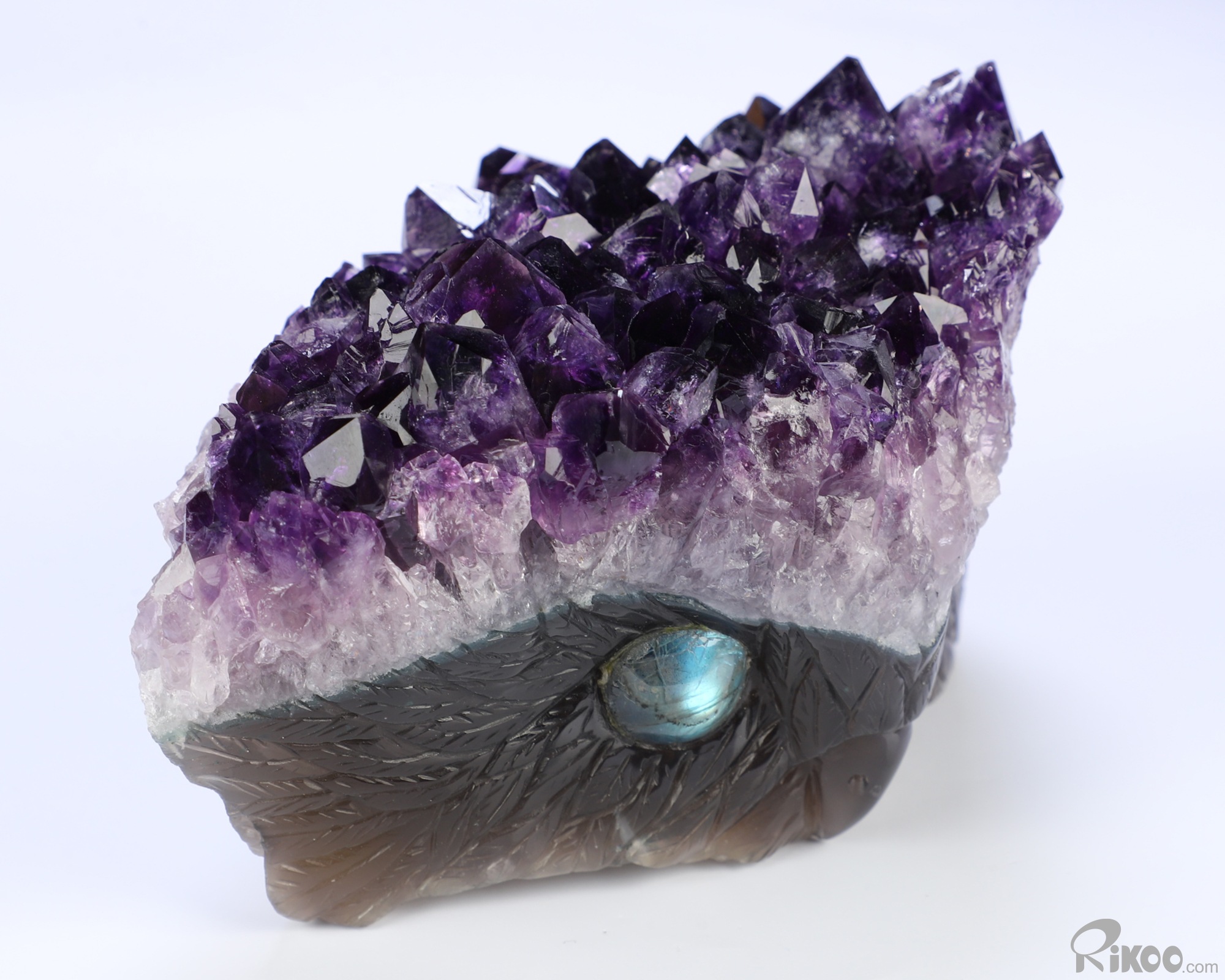 You are looking at an Agate Amethyst Druse sculpture. The sculpture is 5.7 inches long.