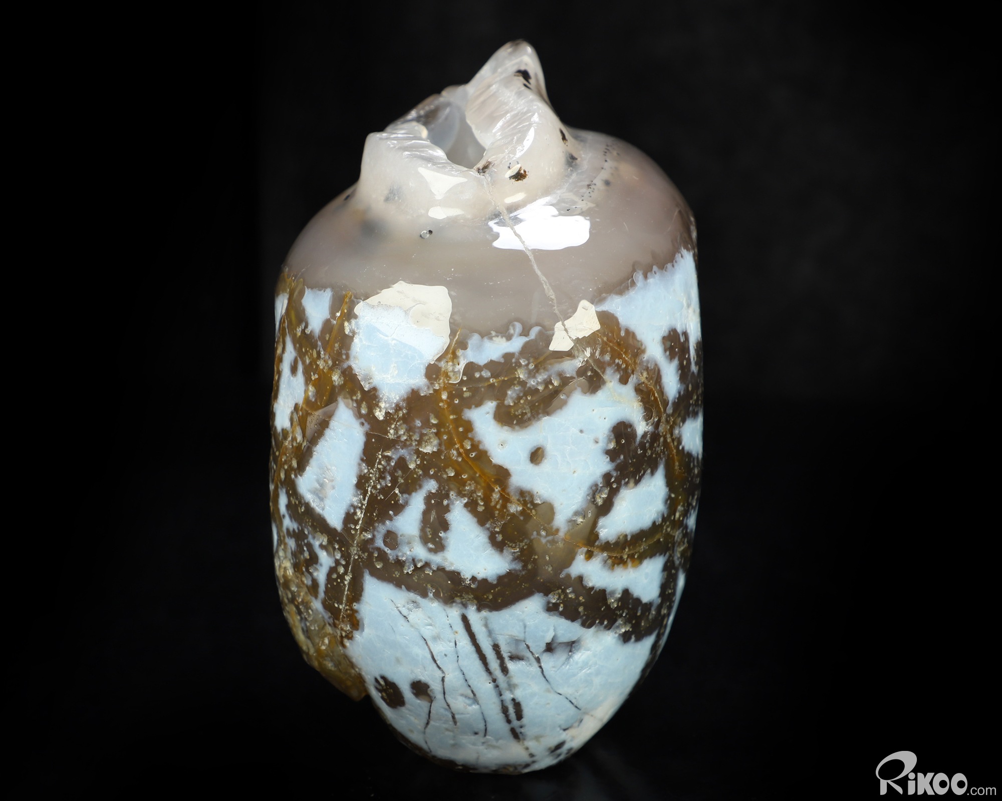 5.7" Agate Geode Hand Carved Crystal Vase Sculpture, Crystal Healing