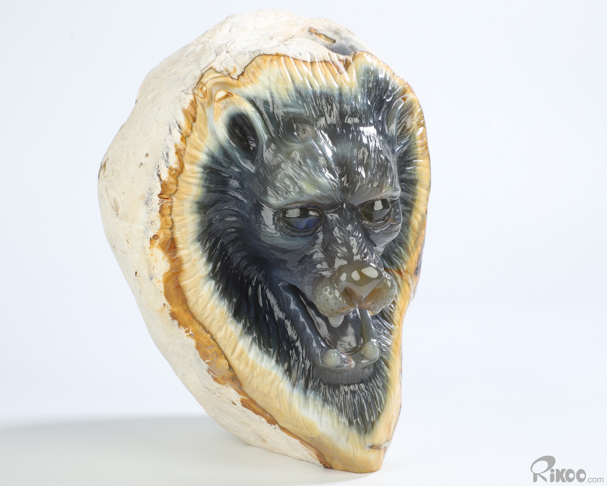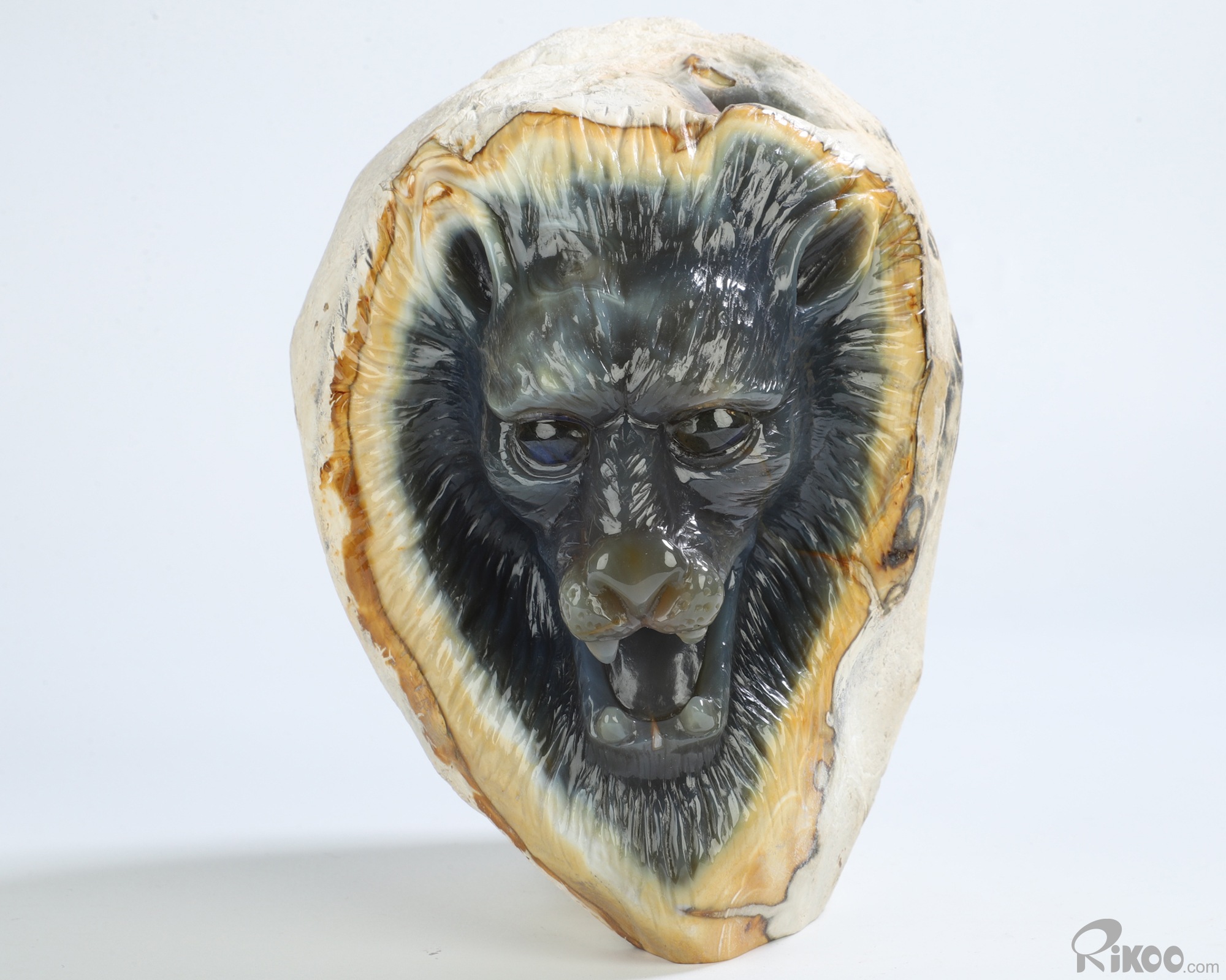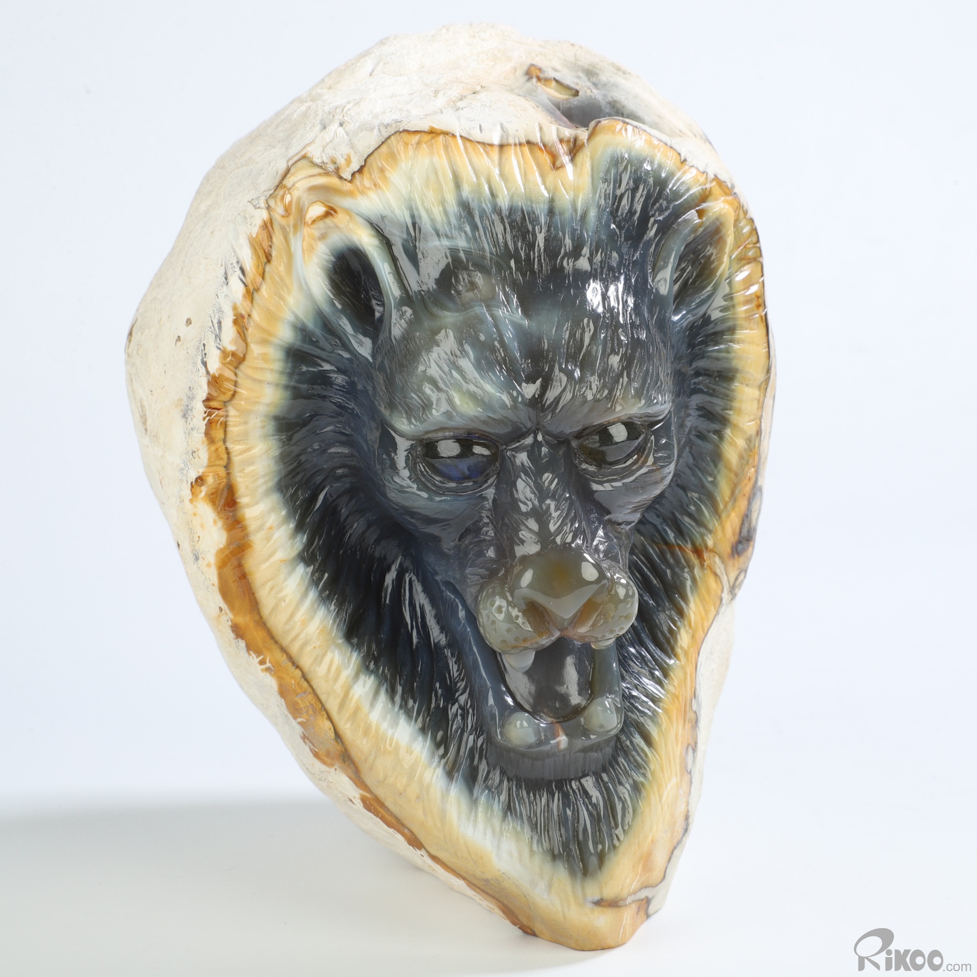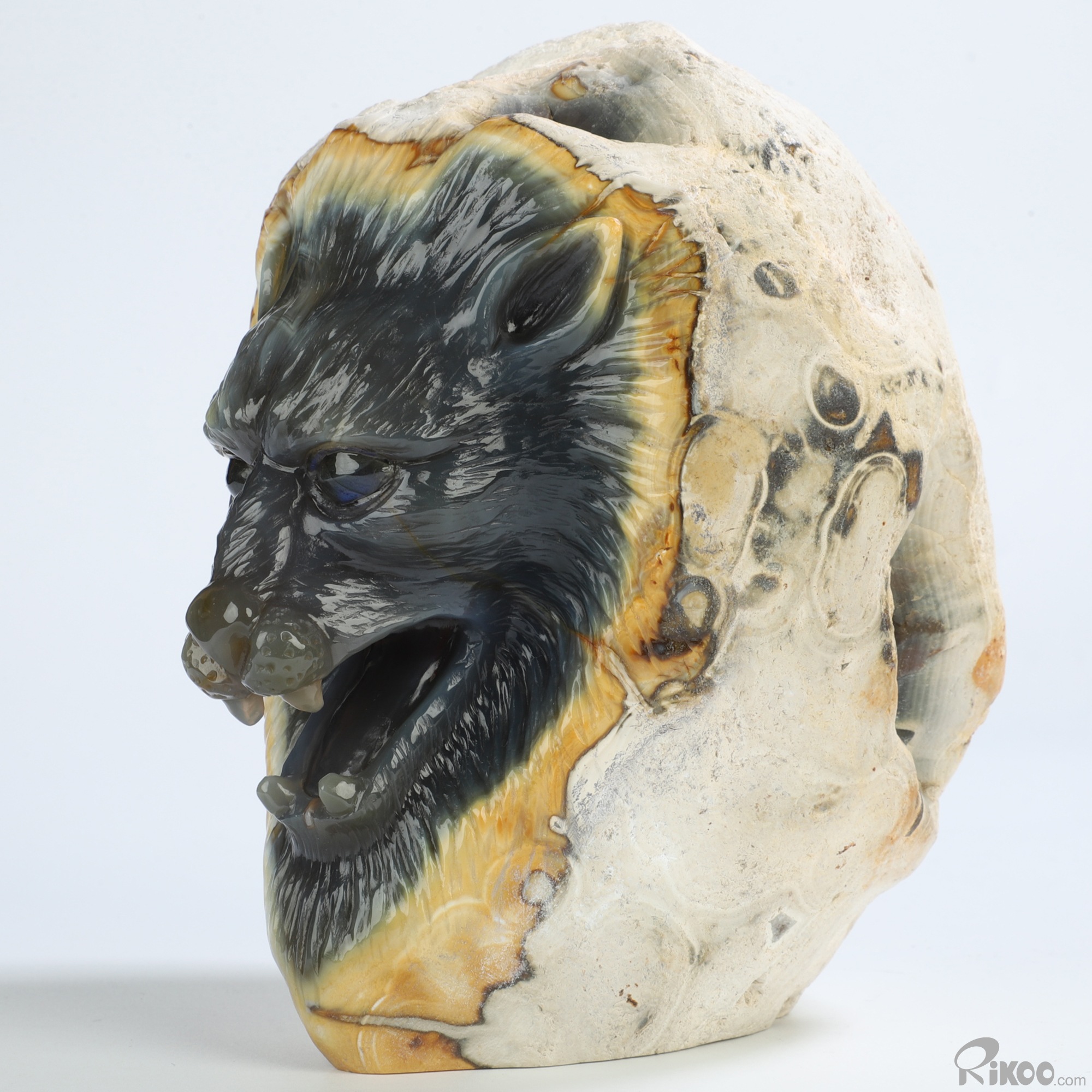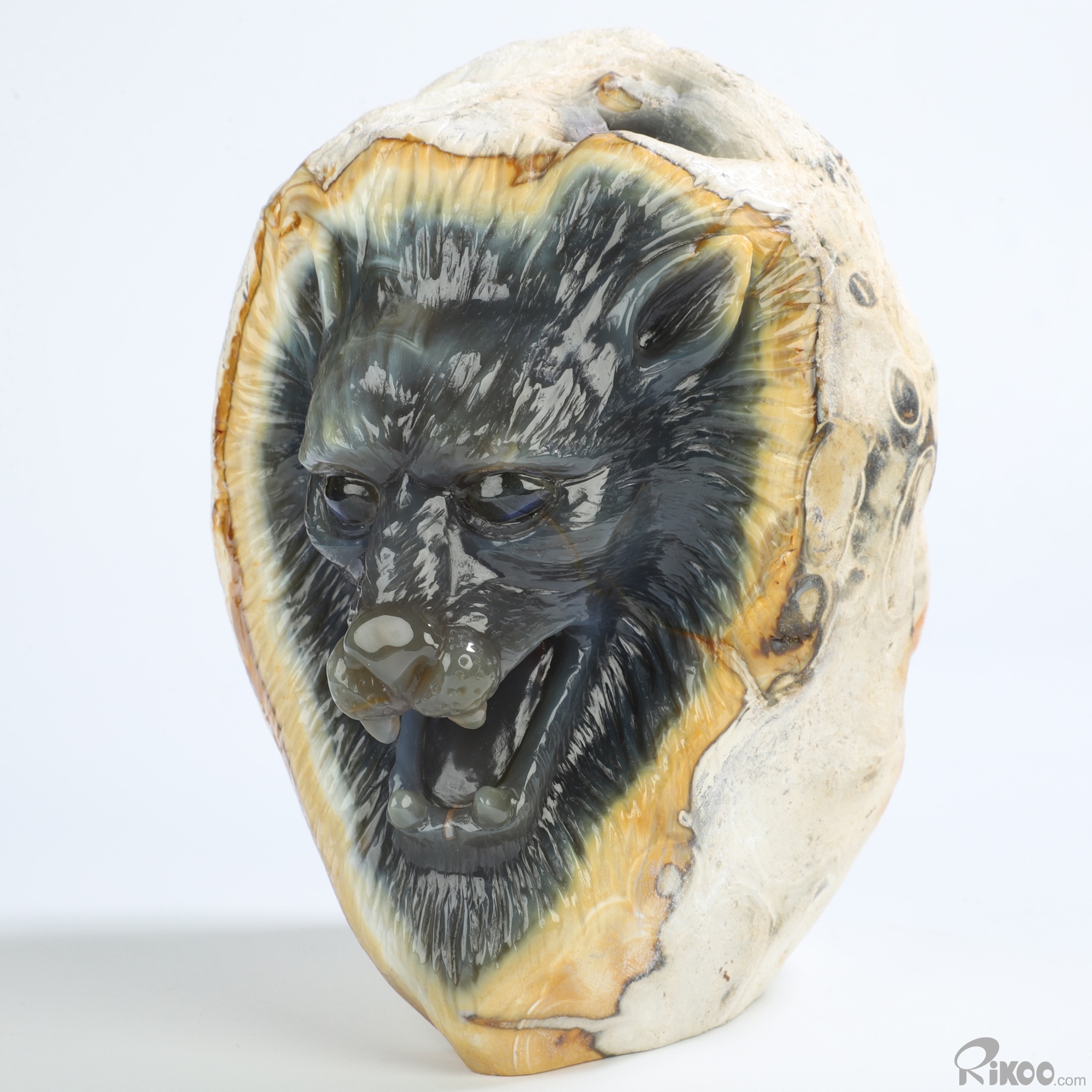 5.7" Agate Hand Carved Crystal Animal & Labradorite eyes Sculpture, Crystal Healing